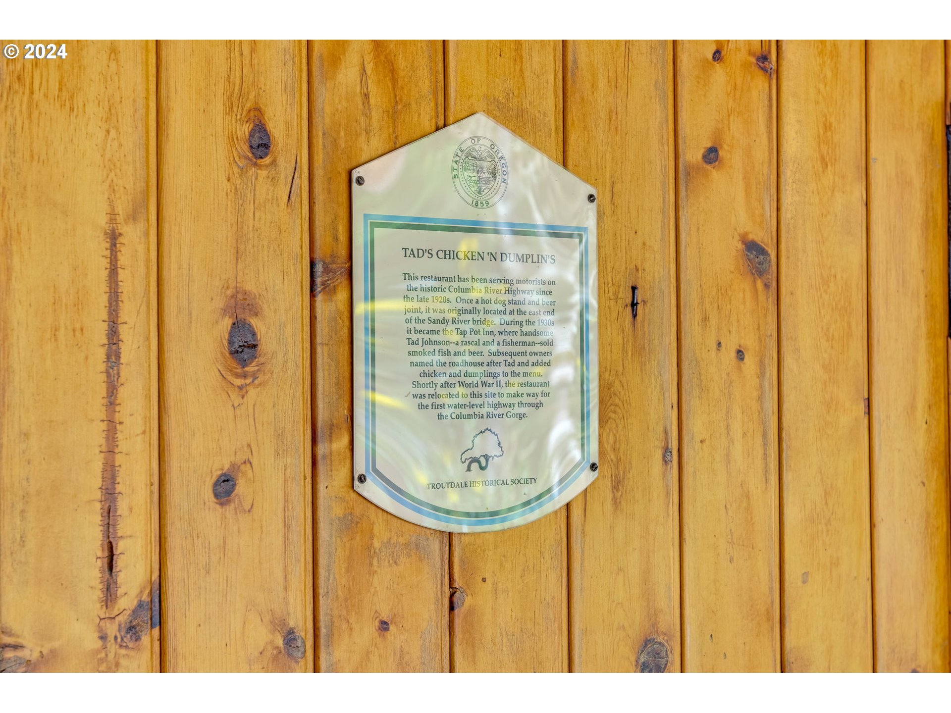 (503) 893-8874The famous former Tad's Chicken ?N Dumplins restaurant is located on the banks of the Sandy River. The restaurant is closed, but everything is there down to the silverware and recipes. The interior of this property is beautiful with all it's wood and history since the 1920's. Two bars, several dining rooms, huge kitchen and walk-in cooler. Insanely gorgeous views of the river.