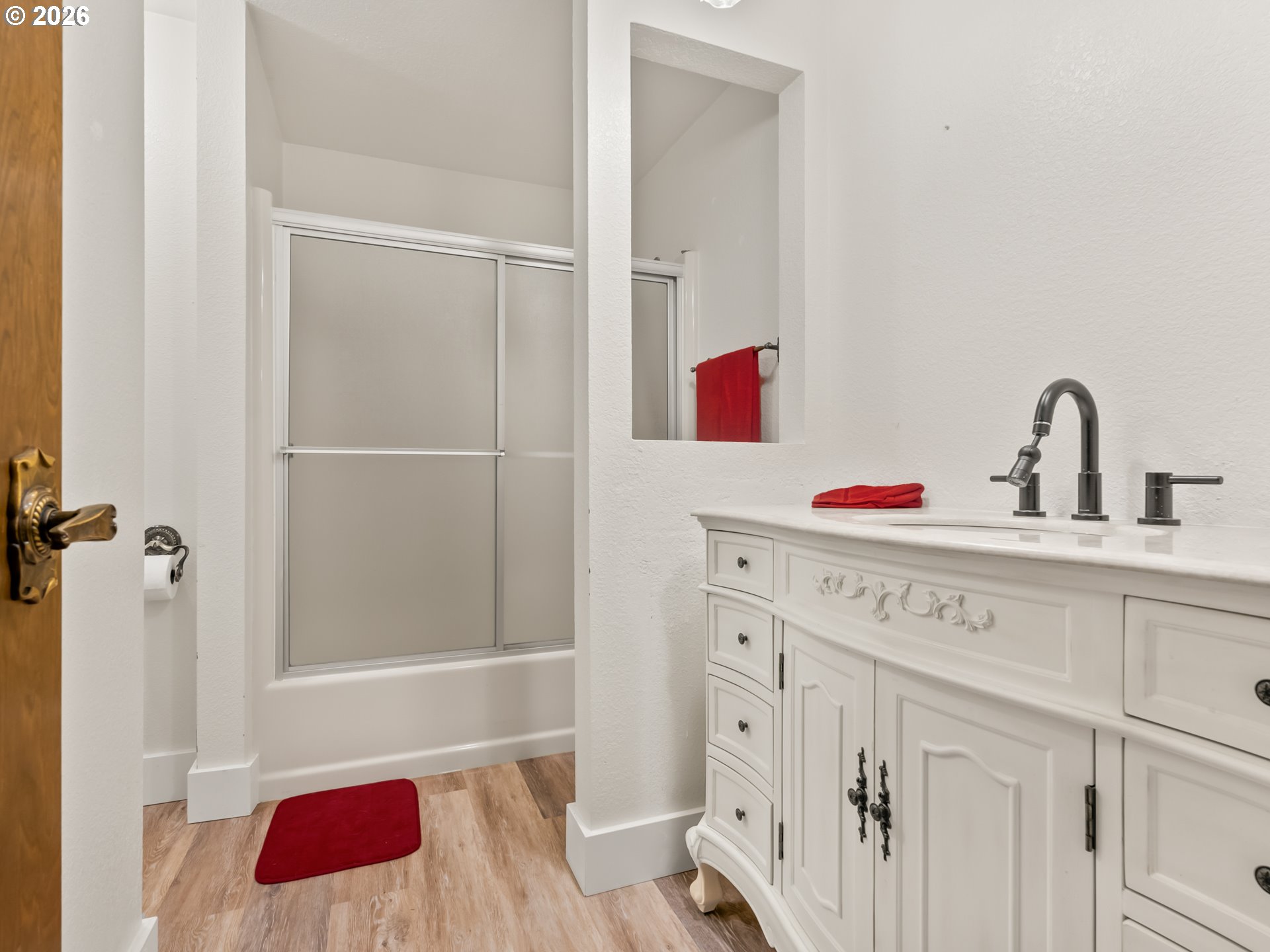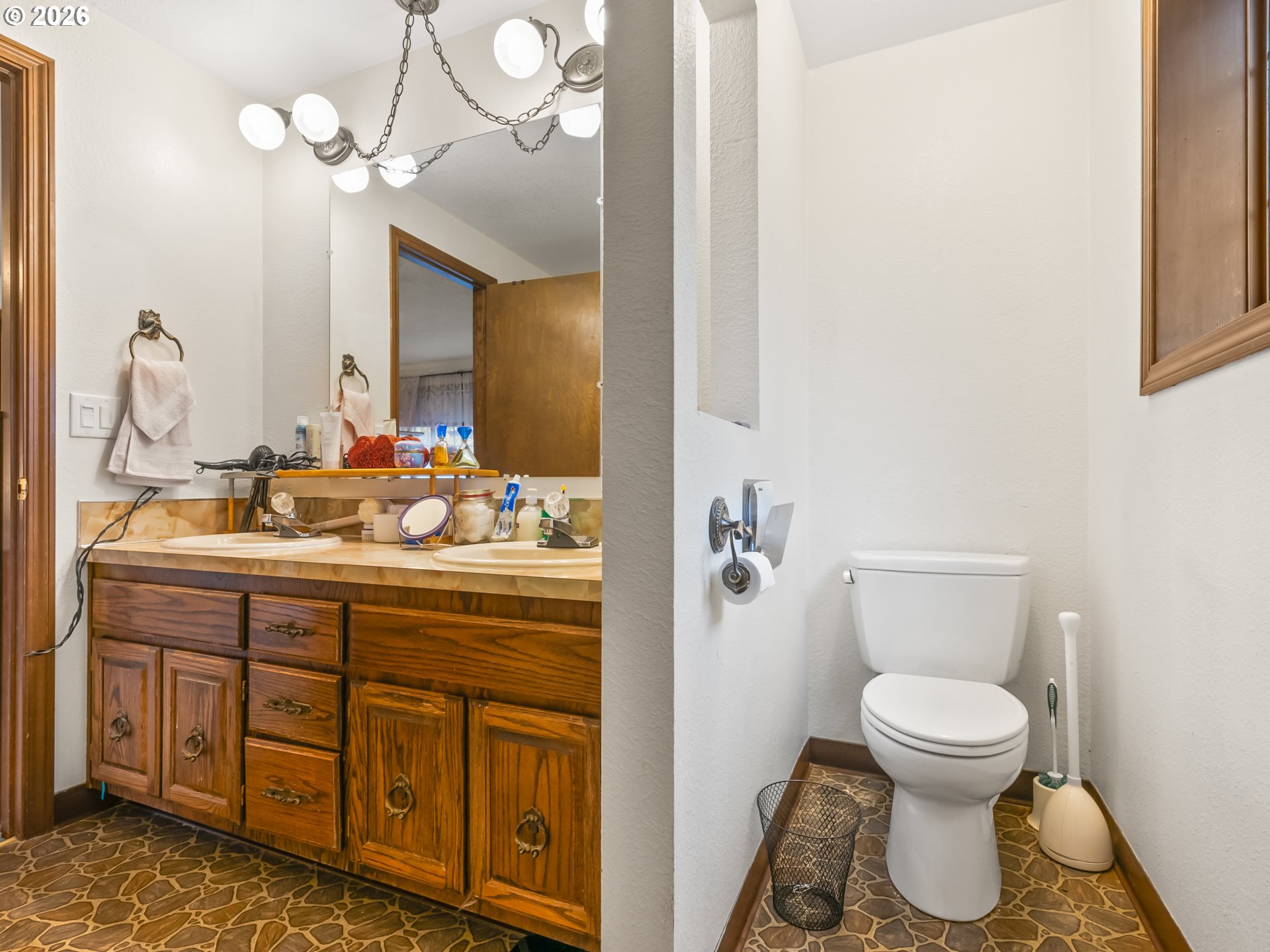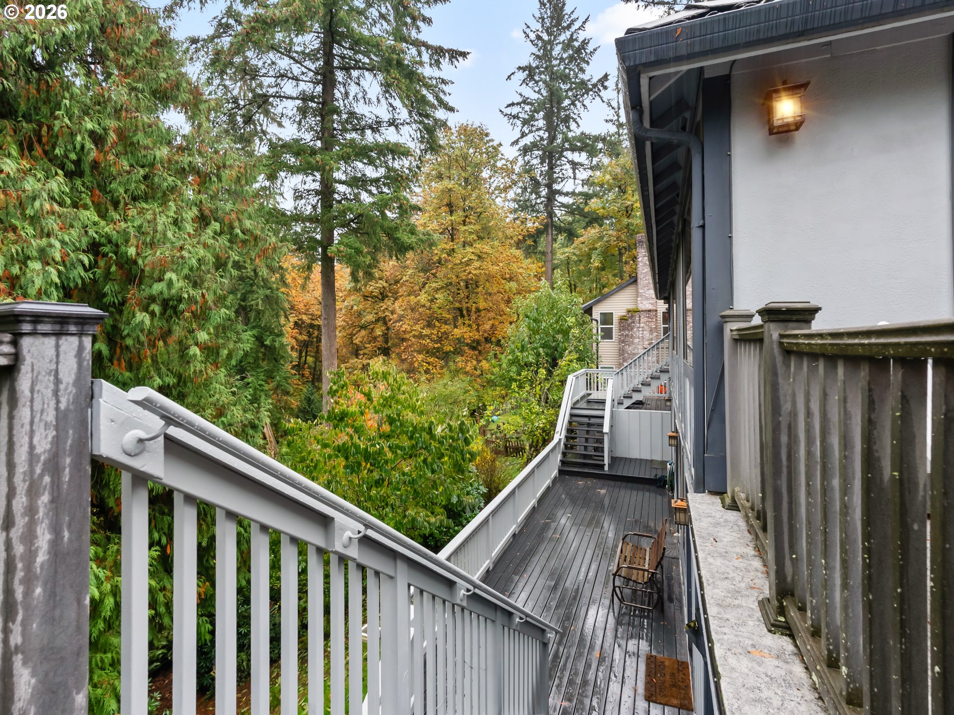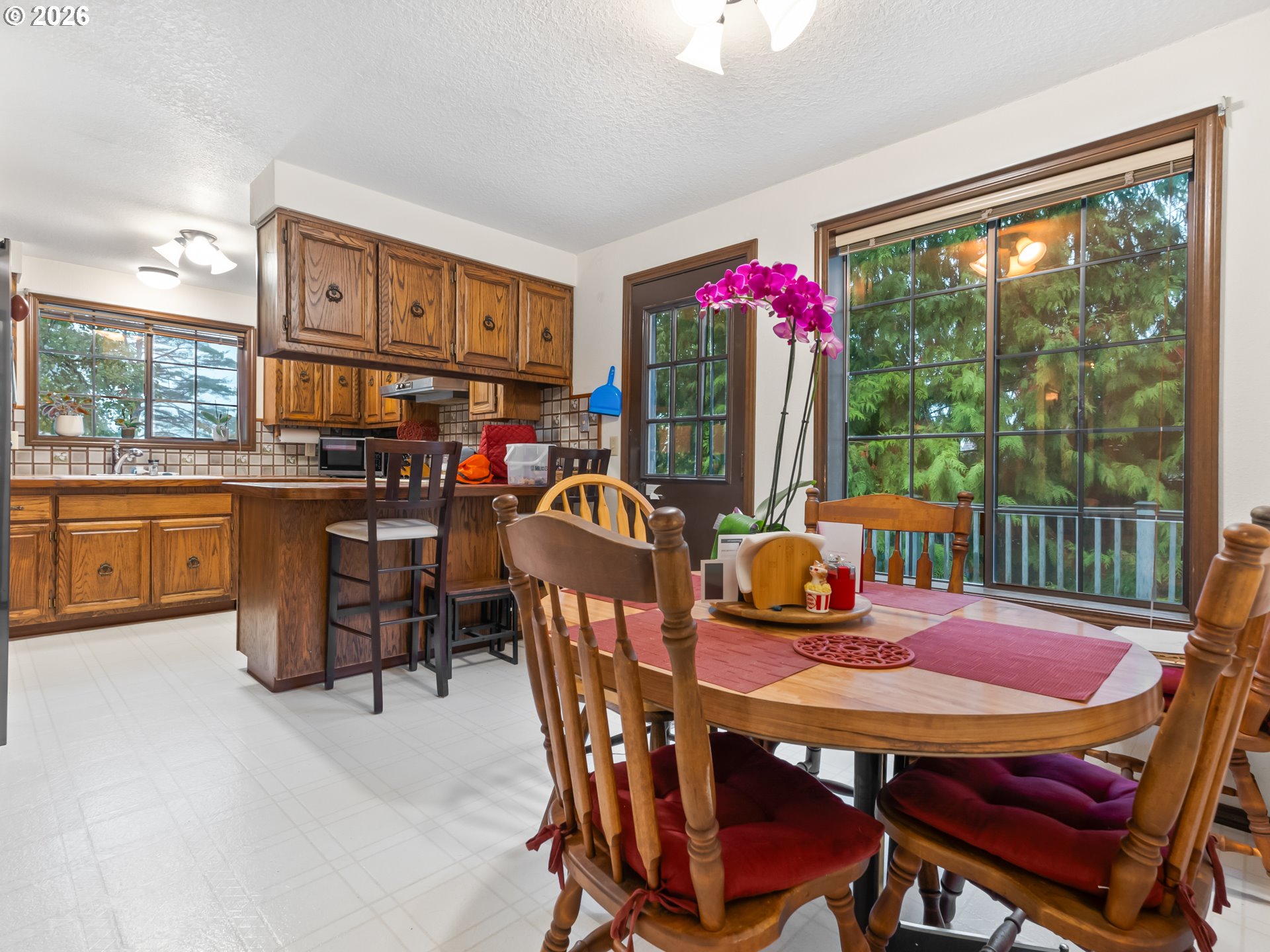 so much potential in this 3105 SF home with 4 bedrooms, 3.5 baths on a private .34-acre lot, featuring two wood decks and outstanding multi-generational living potential. Located on one of the best streets in the area—a quiet cul-de-sac and dead-end with virtually no traffic and direct access to the Saddle Mountain Trail. Recent seller updates include carpet, pad, and stairs on the main floor. Double wood doors open to a vaulted foyer and light-filled great room with vaulted ceilings, ceiling fan, large picture windows, and a wood-burning fireplace with hearth. Enjoy beautiful views of tall evergreens, apple trees, and rare persimmon trees from the main living areas and upper deck. The main level features a formal dining room, tile-counter kitchen with eating nook, and Energy Star appliances, including built-in double ovens with convection, range, hood fan, refrigerator, and ice maker. Main-floor bedrooms and a full bath complete the level. The lower level offers exceptional flexibility with two bedrooms, full bath, kitchenette, laundry room, and a second wood-burning fireplace; ideal for multi-generational living, guests, or a game/party room. A separate exterior entrance opens to the lower deck. Backing to 20 acres of Gresham Buttes greenspace, the home offers year-round privacy. Two private decks overlook a secluded setting with a fenced area and creek nearby. Oversized 816 SF (34’ x 24’) three-car tandem garage allows for no-stairs street-level entry. Heat pump included.