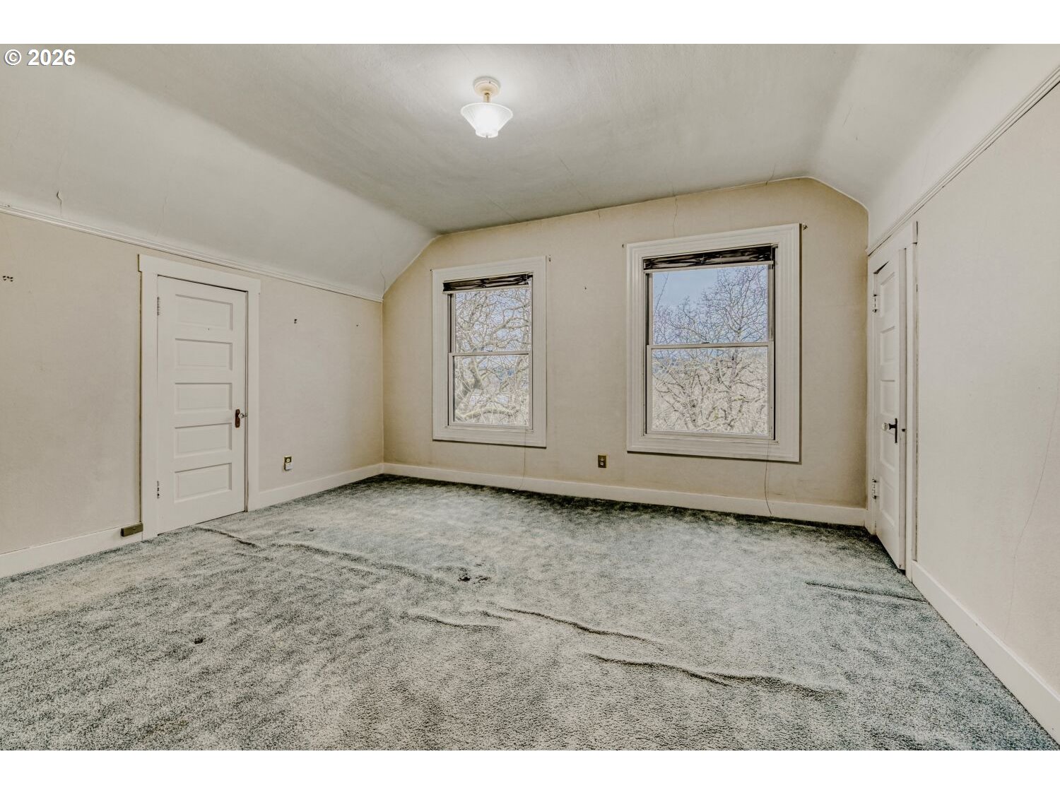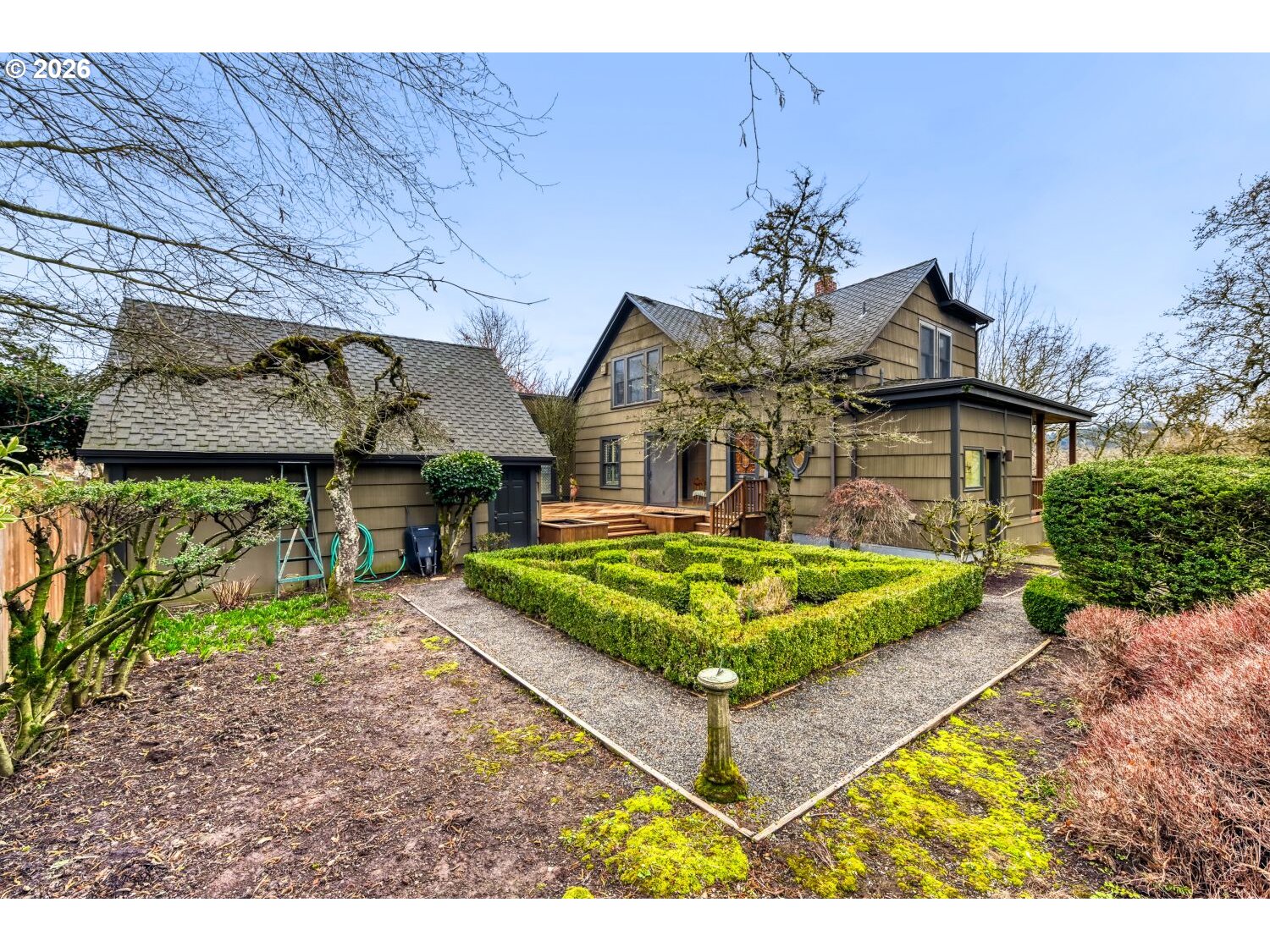 Perched just above Oaks Bottom Wildlife Refuge, 1335 SE Knight Street offers a rare opportunity to own a 1907 character home with partial views of the Willamette River and downtown Portland. Set on three tax lots in one of Southeast Portland’s most desirable location, Sellwood/Moreland, this property combines historic charm, and an unbeatable natural setting. The home’s elevated position enhances light and privacy while capturing seasonal glimpses of the river and city skyline. Classic early 20th-century architectural details create timeless curb appeal.Featuring 2 bedrooms and 1.5 bathrooms, the home offers a functional layout with generous living and dining spaces, and a library/den with built-ins. Period details reflect its 1907 origins, while the overall floor plan provides a comfortable flow for everyday living. The kitchen has a solid footprint and it's eating area offers a view towards the west. Upstairs, the bedrooms offer charming proportions and pleasant outlooks. A full unfinished basement provides abundant storage and exciting potential for future expansion. A standout feature of this property is the courtyard and mature landscape with easy access to the detached two-car garage, offering valuable off-street parking, storage, or workshop space. Combined with the three tax lots, the expansive grounds present exceptional flexibility. Located just moments from the Springwater Corridor Trail, Sellwood amenities, parks, restaurants, and downtown Portland access, this home offers the perfect blend of urban convenience and natural beauty. Enjoy easy access to trails, birdwatching, cycling, and river recreation while remaining close. Needs a little TLC but the location is worth it! A rare find. [Home Energy Score = 1. HES Report at https://rpt.greenbuildingregistry.com/hes/OR10245121]