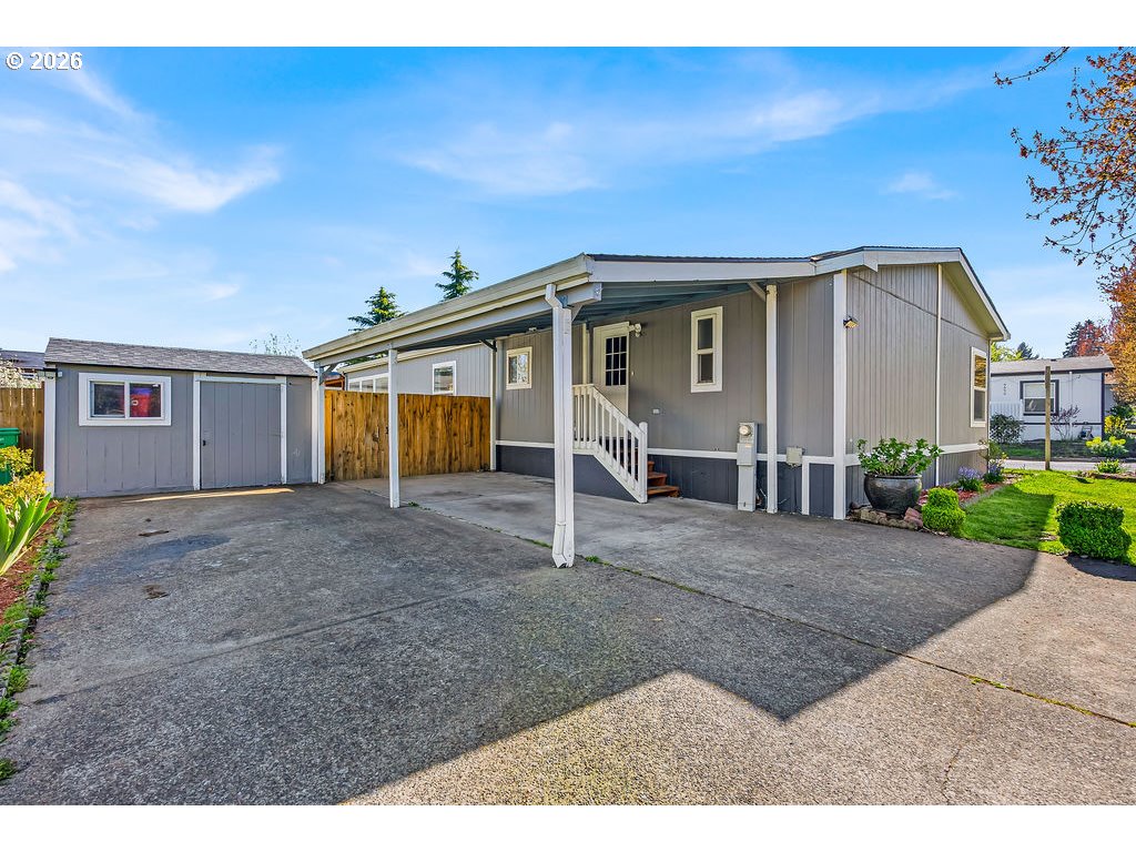 Welcome to this spacious 3 bedroom, 2 bathroom double-wide manufactured home in the desirable Aspen Meadows community, offering 1,620sqft of comfortable living space. The open-concept layout creates a seamless flow between the living, dining, and kitchen areas, perfect for both everyday living and entertaining. The kitchen features a functional island with ample counter space and storage. Enjoy outdoor living with a massive covered deck overlooking a fully fenced, generously sized backyard ideal for relaxing, gardening, or pets. A handy tool shed provides additional storage for all your outdoor needs. Nestled in a peaceful neighborhood, Aspen Meadows offers a welcoming atmosphere along with a community playground. Conveniently located with easy access to local amenities, shopping, and dining. This home is move in ready and perfect for a new owner seeking value, comfort, and convenience. Space rent is $1,195/month. Base rent only.