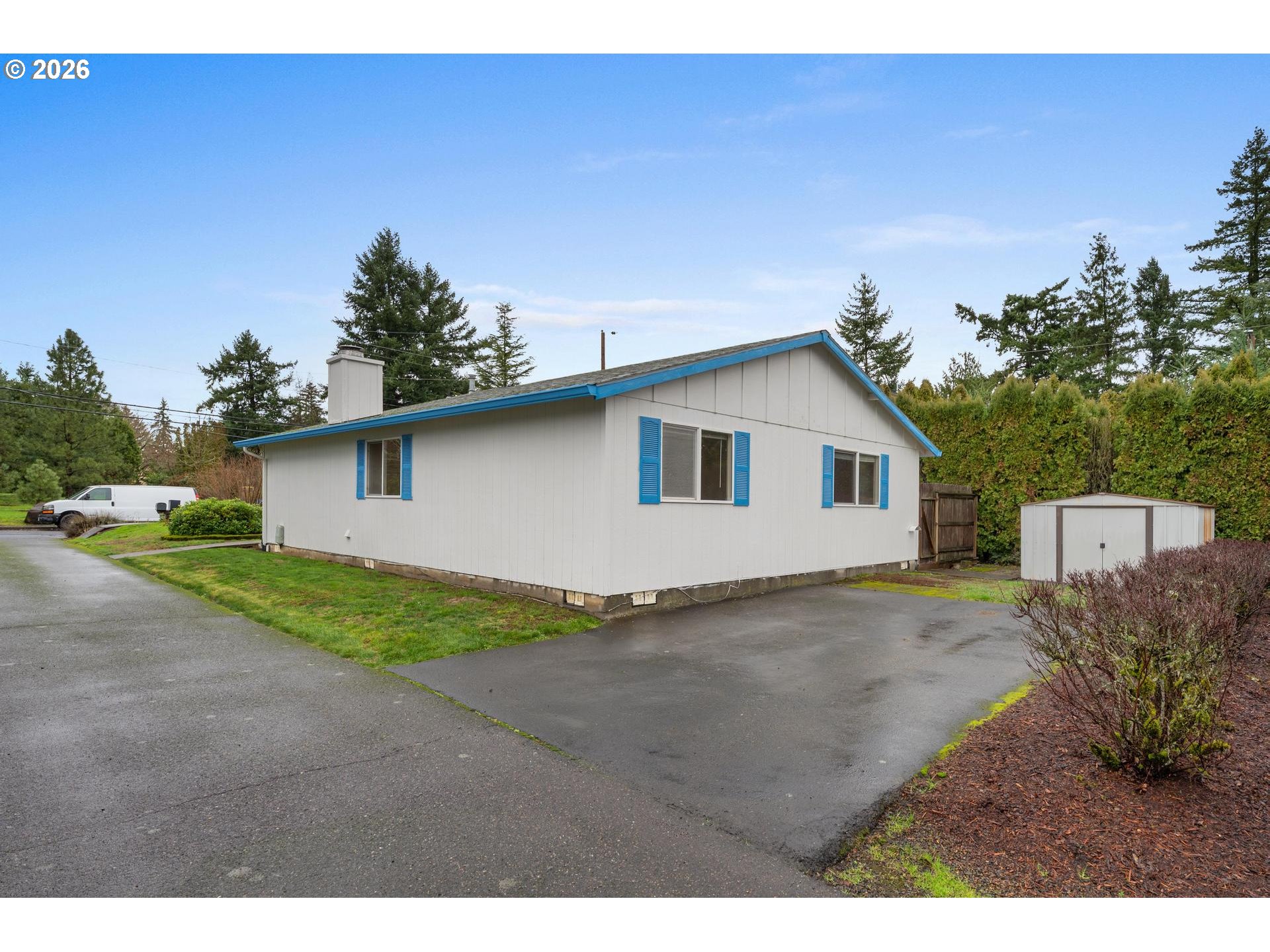 Solid and comfortable one-level home built in 1993 featuring an open living area with vaulted ceilings, wood-burning fireplace and spacious primary en-suite bedroom. Freshly updated exterior paint in 2025 and new a/c installed in 2023. Outdoors enjoy both covered and open patio areas, a garden shed for tools and hobbies, along with a 15' x 25' paved parking pad in back that may be suitable for a recreational vehicle. Spacious two-car garage with ample storage space, and the bonus of a whole-house generator providing an uninterrupted power supply. Don't miss this opportunity!