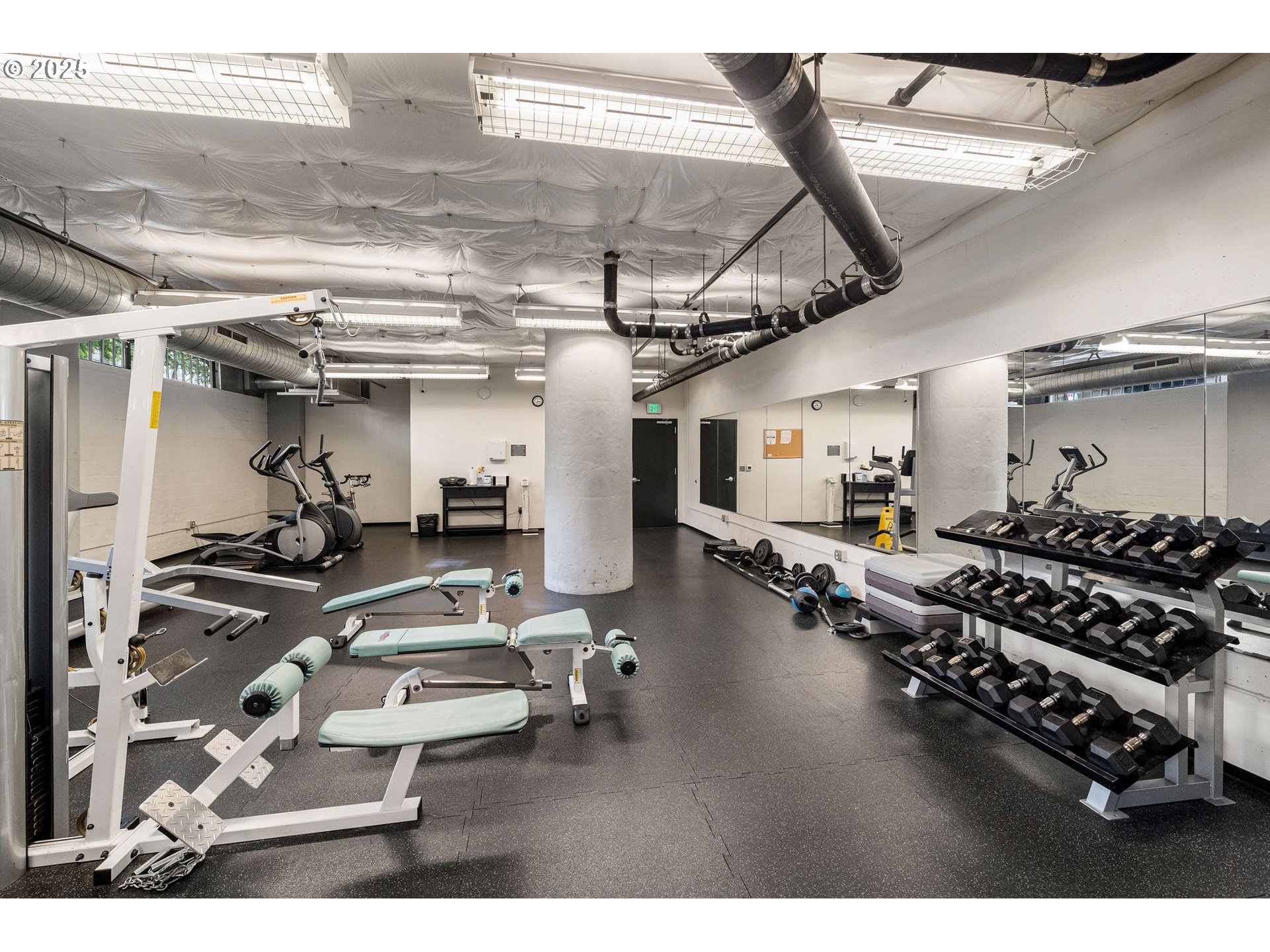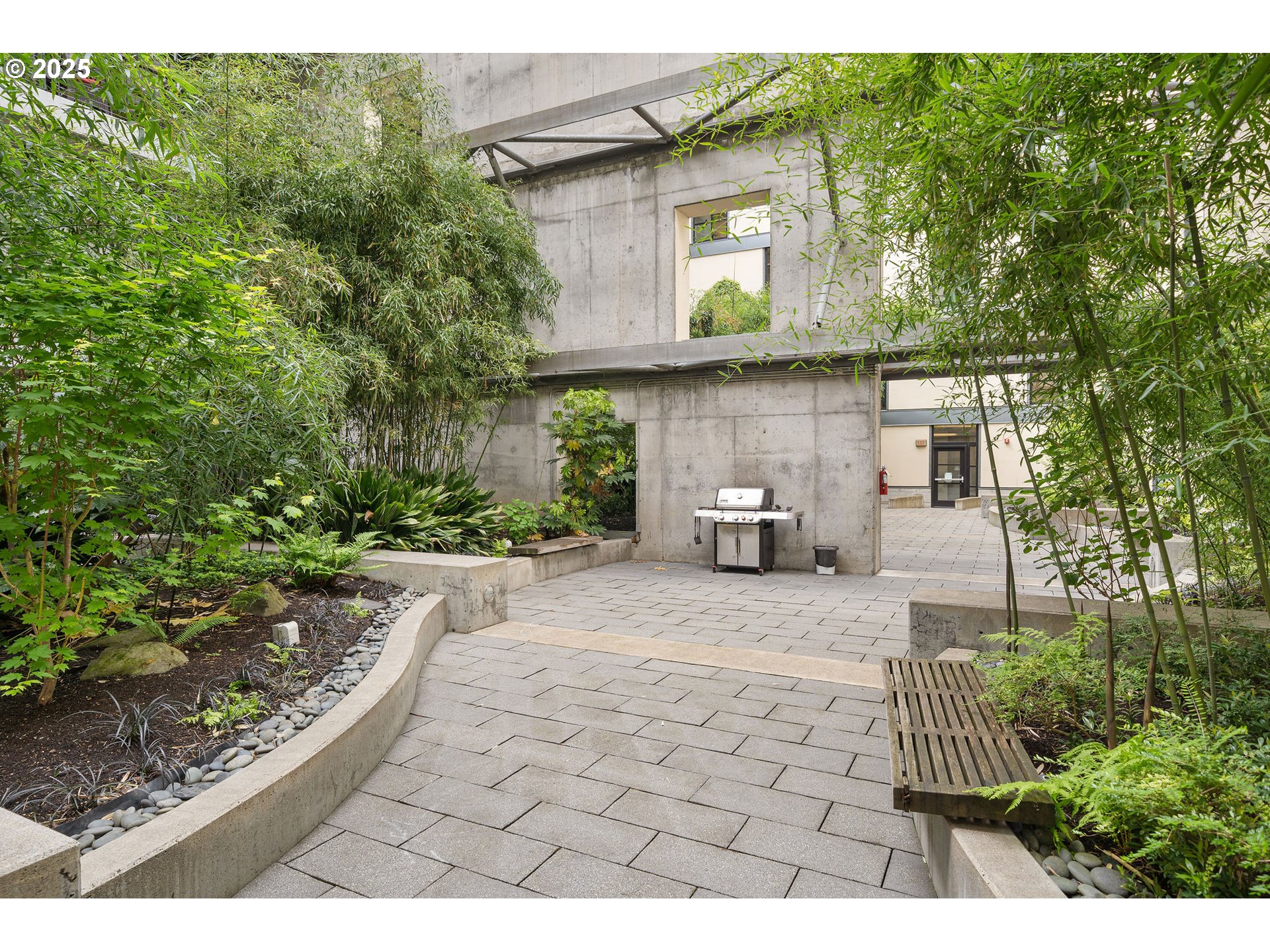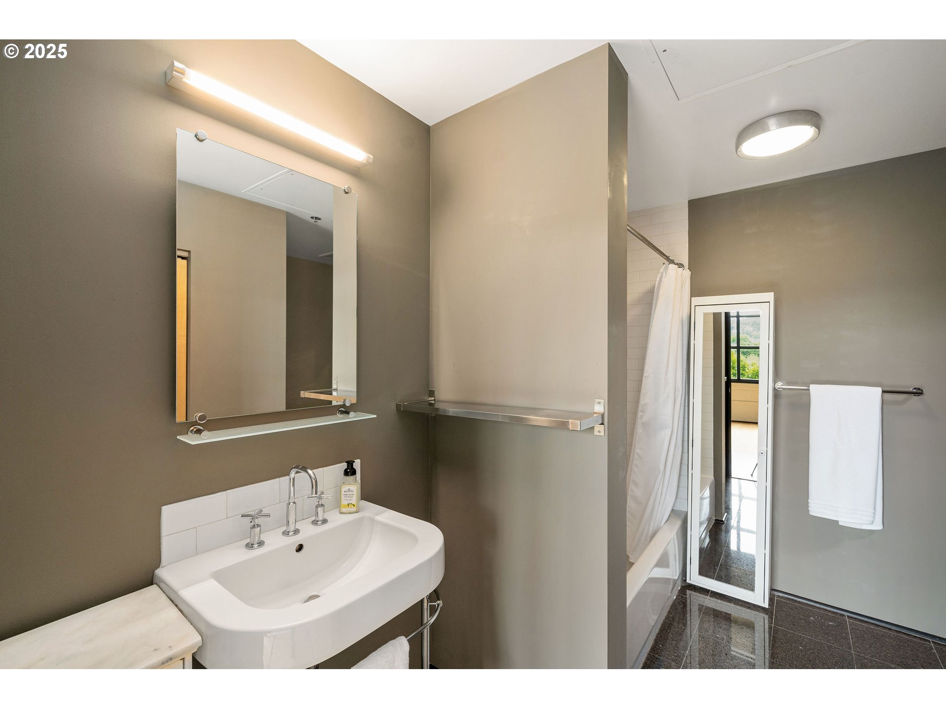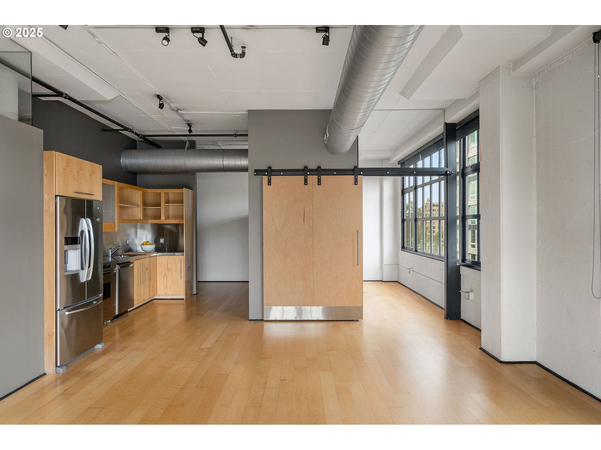 Dramatic New York SOHO styled condominium in the heart of Portlands highly sought after Pearl District will not disappoint. This uniquely renovated large SW corner studio reimagined into a two bedroom, two bath, spacious condo featuring 11’ high exposed concrete ceilings, dramatic steel windows and clear maple hardwood floors throughout. Designed by renowned Portland architect Robert Thompson the condo is an ideal live / work space with a spacious open floor plan for creatives working from home. Featuring large high glass relites between rooms allowing spaces to visually flow between one another allowing for privacy and shared light while enjoying unobstructed views of the West hills. Also included is laundry in the unit, AC, deeded parking, a large storage unit , and a new dishwasher. Building amenities include a gym, open air courtyard, and bike parking. Well run HOA , and included in the sale is a home warranty. Walk score 99 and bike score 95! Virtual staging in photos.
