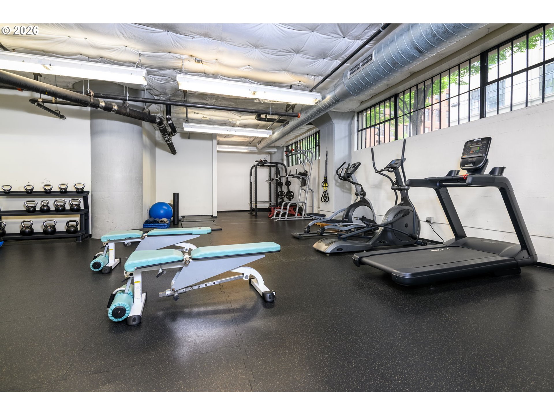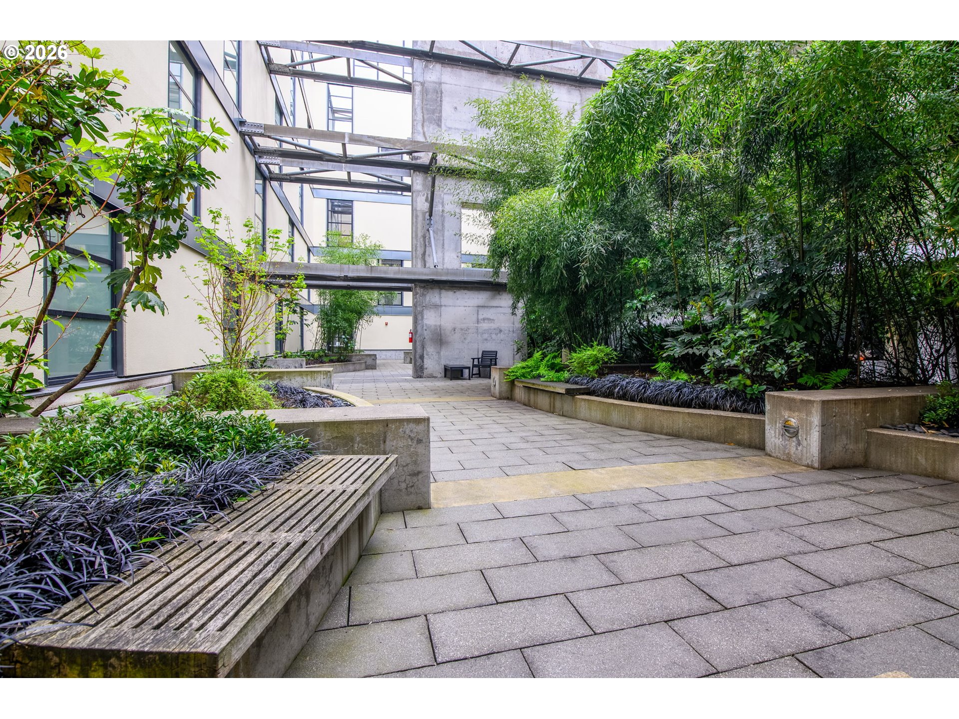 Welcome to The Avenue, one of the Pearl District's most beloved historic warehouse conversions. This upper floor studio lives large with soaring 13+ foot ceilings, a dramatic wall of grid pattern windows, and city views that fill the space with natural light all day long. The open floor plan features hardwood floors throughout, stainless steel appliances, a free standing range, built in dishwasher, custom closet organizers, and in unit washer and dryer. Deeded parking included. Building amenities include a gym, common atrium, and meeting room. A walkable Pearl location with a Walk Score of 98 puts you steps from Portland's best parks, restaurants, and shopping. This is urban living done right.