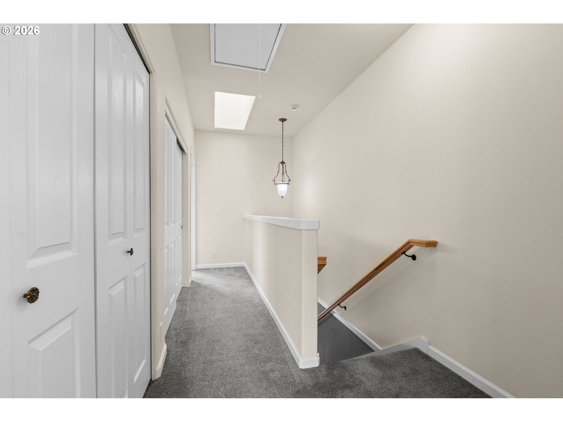 This Fairview Village townhouse shines with the owner’s care and attention to detail. Two bright primary suites upstairs offer privacy and comfort. High ceilings and natural light highlight the updated kitchen with stainless steel appliances, living room with gas fireplace, and spacious dining area perfect for entertaining. Enjoy low-maintenance living with a hardscaped backyard, detached two-car garage for projects or parking, and easy access to Salish Ponds and walking trails. Stylish, move-in ready, and designed for modern living, this home is sure to please!
