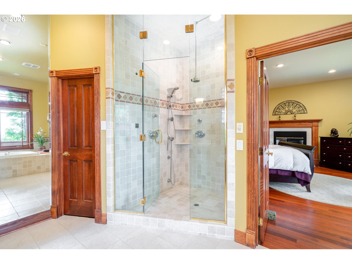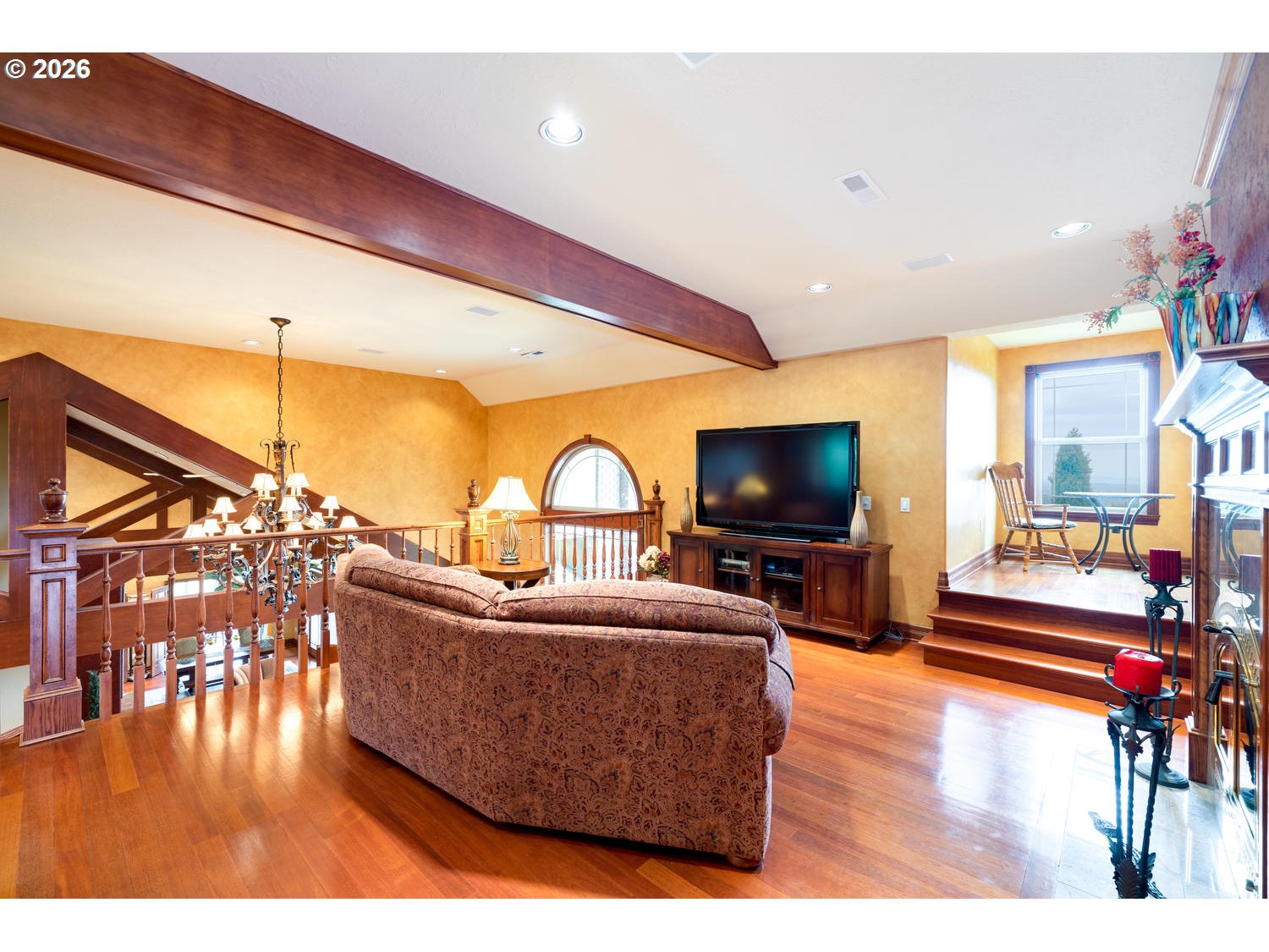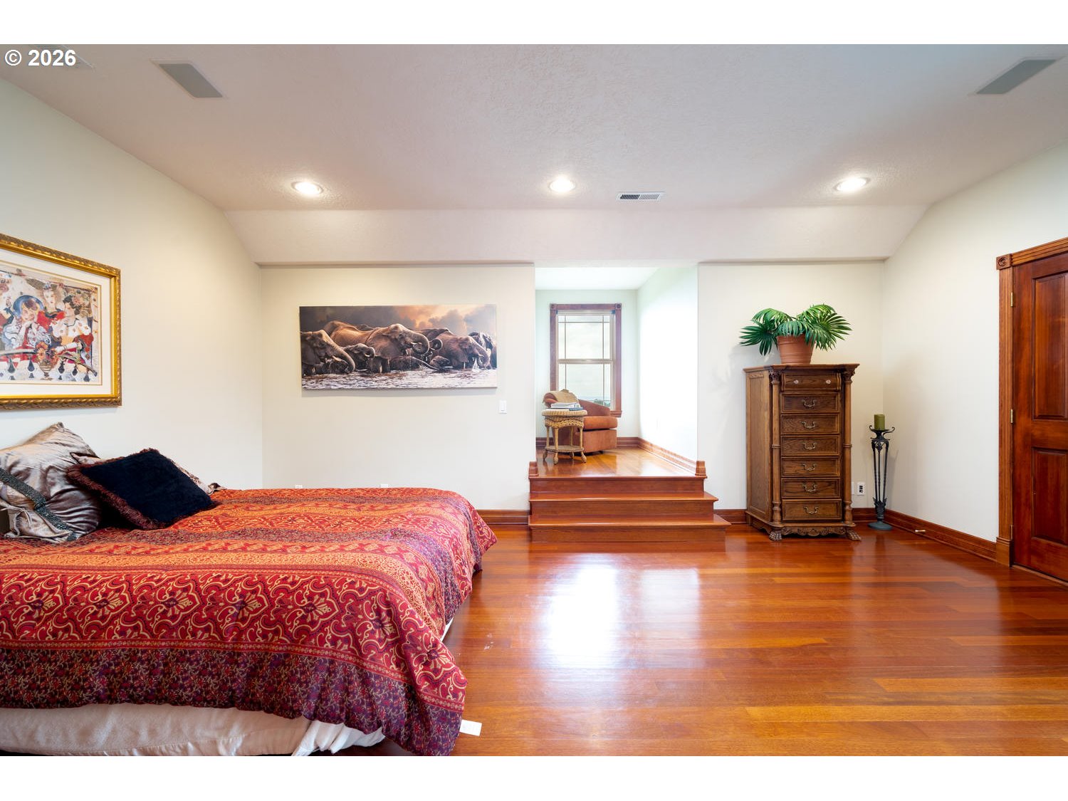 La Villa is a Georgian Farmhouse masterpiece designed with rigorous proportions & commitment to symmetry. Centered on the front facade, the grand entrance is in line with the entry gate & cypress lined drive. Windows look out to spectacular sunsets, sparkling city lights and rolling pastoral vistas. The open plan features timber beams, 19-foot ceilings, abundance of light flooding across Brazilian cherry floors, a chef's kitchen, sunroom, library, 4 fireplaces & a 22-car (3700sf) underground garage. A 20 min drive to PDX, amenities, dining & shops.