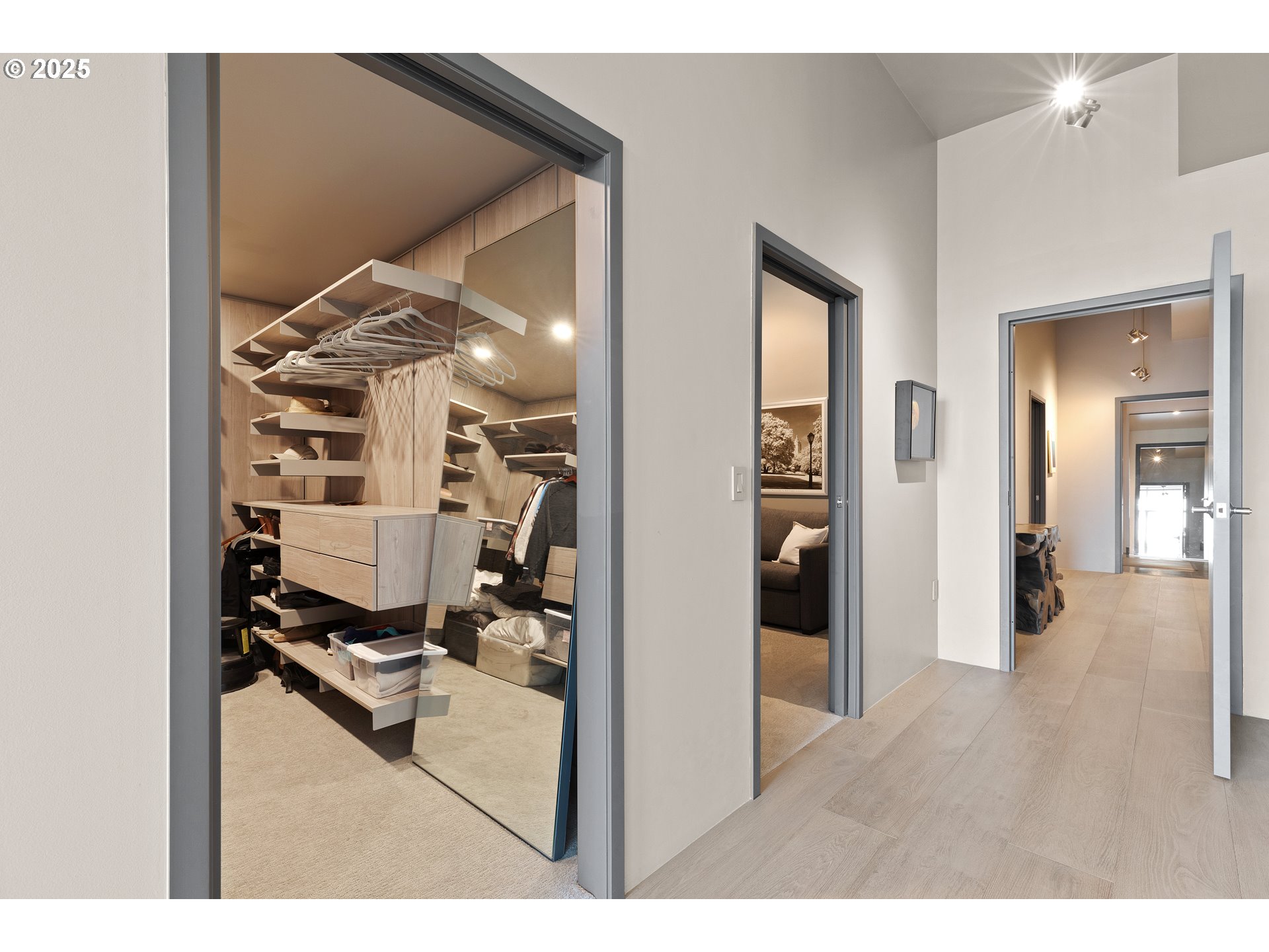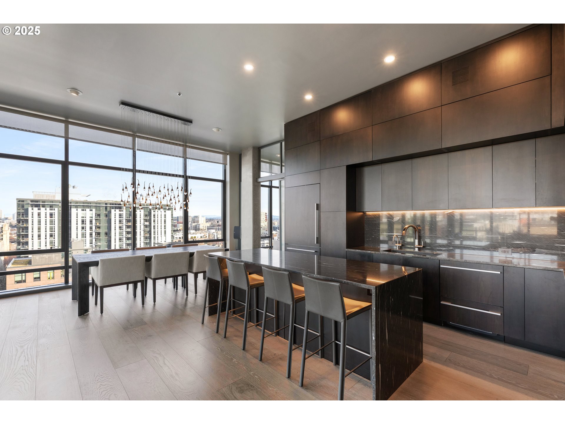 Experience penthouse living at its finest in this sophisticated residence atop The Edge in the heart of Portland’s vibrant Pearl District. This rare 2-bedroom penthouse, complete with a bonus room and spacious den, offers 2 baths and 2,353 sq. ft. of elegantly curated living space. Floor-to-ceiling windows illuminate the home with natural light while framing sweeping city views.The open-concept living area features wide engineered oak floors paired with polished cement for a sleek, modern aesthetic. A chef’s dream, the kitchen showcases Parr engineered cabinetry, striking quartzite countertops, and thoughtful under-cabinet and island lighting.The expansive primary suite is a true retreat, featuring a custom Elva Container Store closet with hidden safe and an adjoining den ideal for a private office or reading lounge. The spa-inspired primary bath offers heated floors, quartzite countertops, a walk-in shower, and a KOHLER heated-seat bidet. The second bedroom includes a built-in desk, while the second bath echoes the home’s elevated finishes with heated floors and quartzite counters.A flexible bonus room with a Murphy bed and a separate laundry room with additional storage add invaluable functionality. Two deeded parking spaces and a private storage unit complete this exceptional offering.Set within the Pearl District—one of Portland’s most coveted urban neighborhoods known for its art galleries, award-winning restaurants, boutique shops, and pedestrian-friendly parks—this penthouse delivers the perfect blend of luxury, style, and convenience. With its breathtaking views, refined design, and unmatched location, this residence embodies elevated city living.