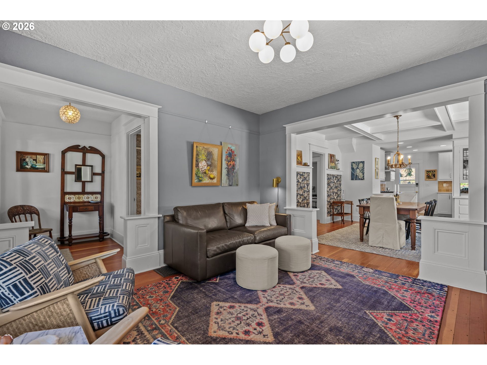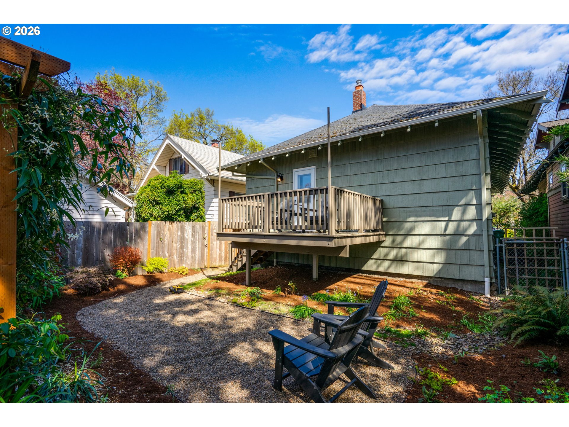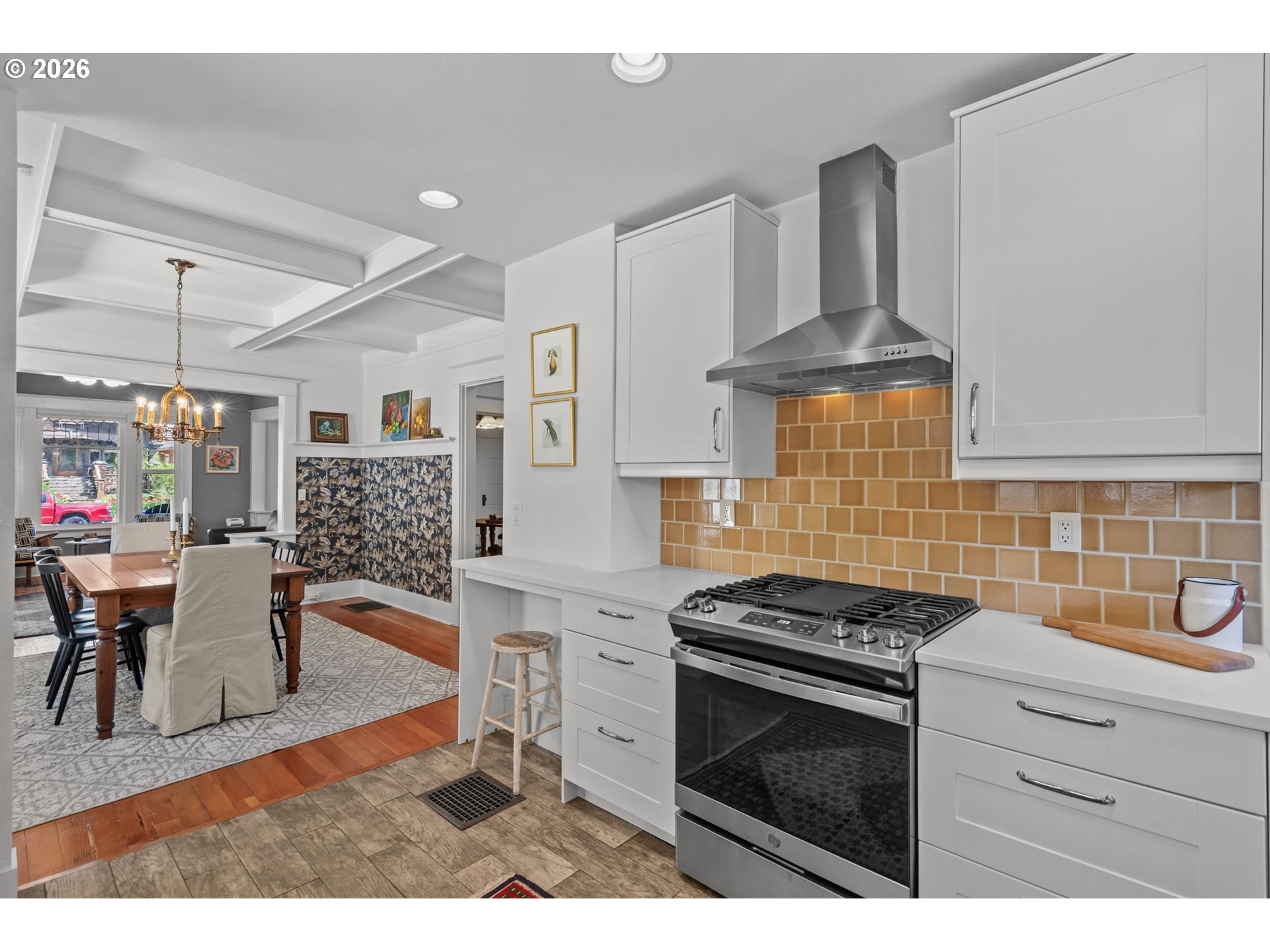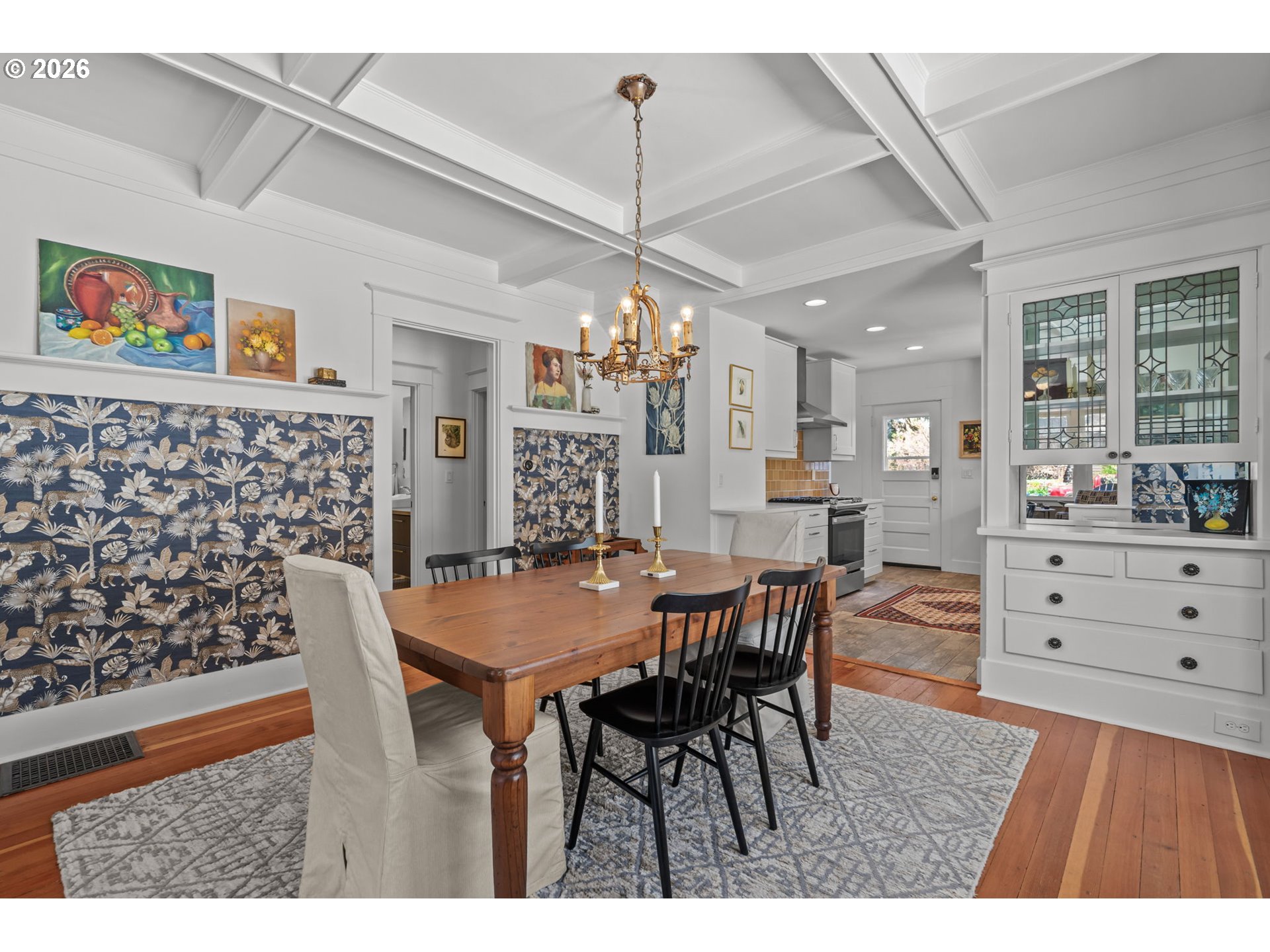 Historic charm, thoughtful updates, and modern systems come together in this Mt. Tabor Craftsman bungalow. The charming entry foyer welcomes you to a home where classic character is immediately on display. Gleaming wood floors and original millwork pair beautifully with stylish fixtures and designer wallpaper. The open, updated kitchen is ideal for both everyday living and entertaining. The front-facing living room with fireplace, box beamed dining room, two nicely sized bedrooms and a refreshed bathroom complete the main level. Upstairs, the spacious primary suite offers a private retreat, featuring a dedicated mini-split for year-round comfort, double closets, built-in storage, and en-suite bathroom with walk-in shower. The lower level provides abundant storage and flexible space to suit your needs. Key system updates -- including newer double pane windows, radon mitigation, basement waterproofing, electrical improvements, and fresh exterior paint -- offer peace of mind. Enjoy quiet mornings on the front porch, host gatherings in the back garden, and take full advantage of nearby parks, dining, and shopping in this highly sought-after location. [Home Energy Score = 4. HES Report at https://rpt.greenbuildingregistry.com/hes/OR10182802]