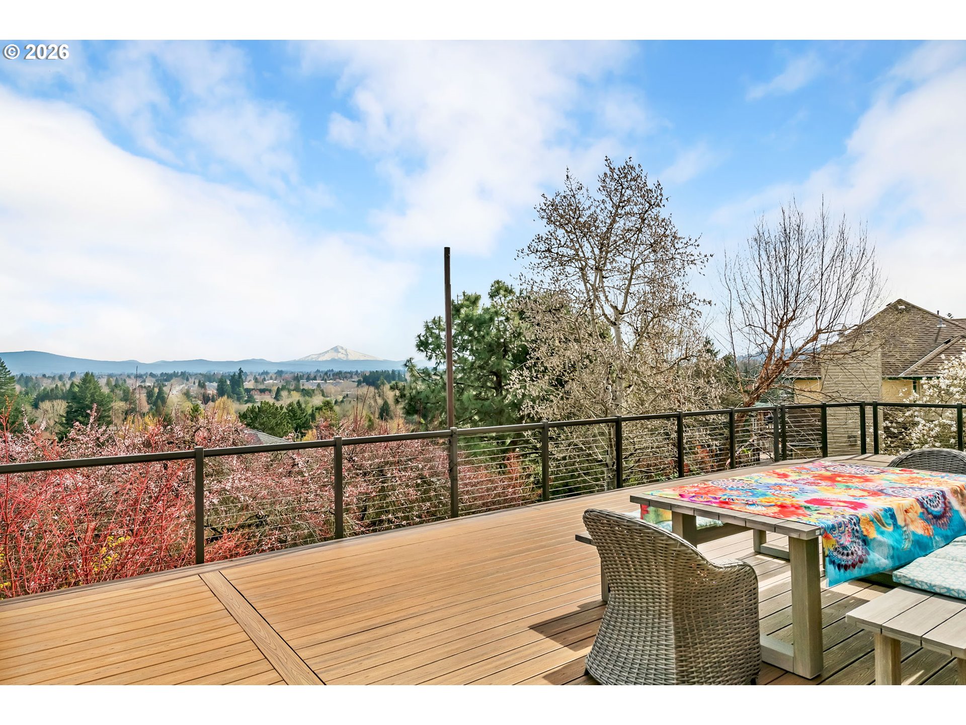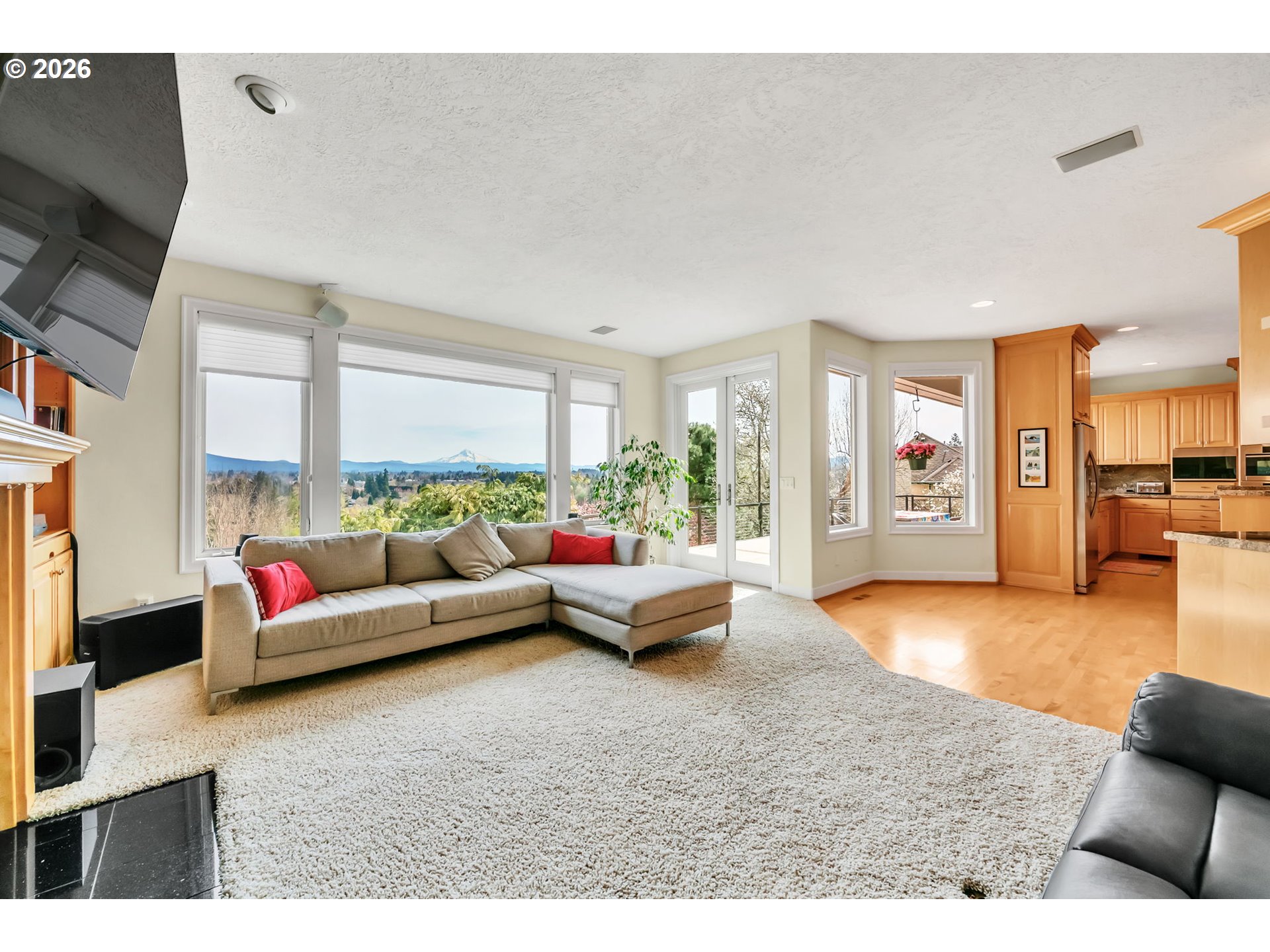 Panoramic views of Mt. Hood set the stage for this beautifully appointed single-level retreat on Gresham Butte.Stunning mountain views are visible from the kitchen, dining room, family room, and primary suite, with large windows that frame the scenery and fill the home with natural light. The beautifully finished kitchen features premium stainless steel appliances including Miele, Wolf, and Electrolux, along with a large cook island and quality finishes throughout. With 3,098 square feet, the home offers generous living spaces designed for both comfortable everyday living and effortless entertaining.Step outside to an exceptional outdoor setting with a spacious view deck, extensive hardscaping, terraced gardens, and a private hot tub—perfect for relaxing or hosting while enjoying the incredible mountain backdrop.Additional highlights include central air, a tile roof, and a rare oversized four-car tandem garage with abundant space for vehicles, storage, or workshop needs.Located just a few minutes from historic downtown Gresham’s restaurants, parks, and coffee shops, this home offers the perfect balance of privacy, views, and convenience.