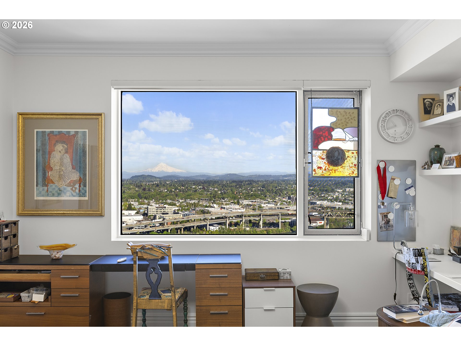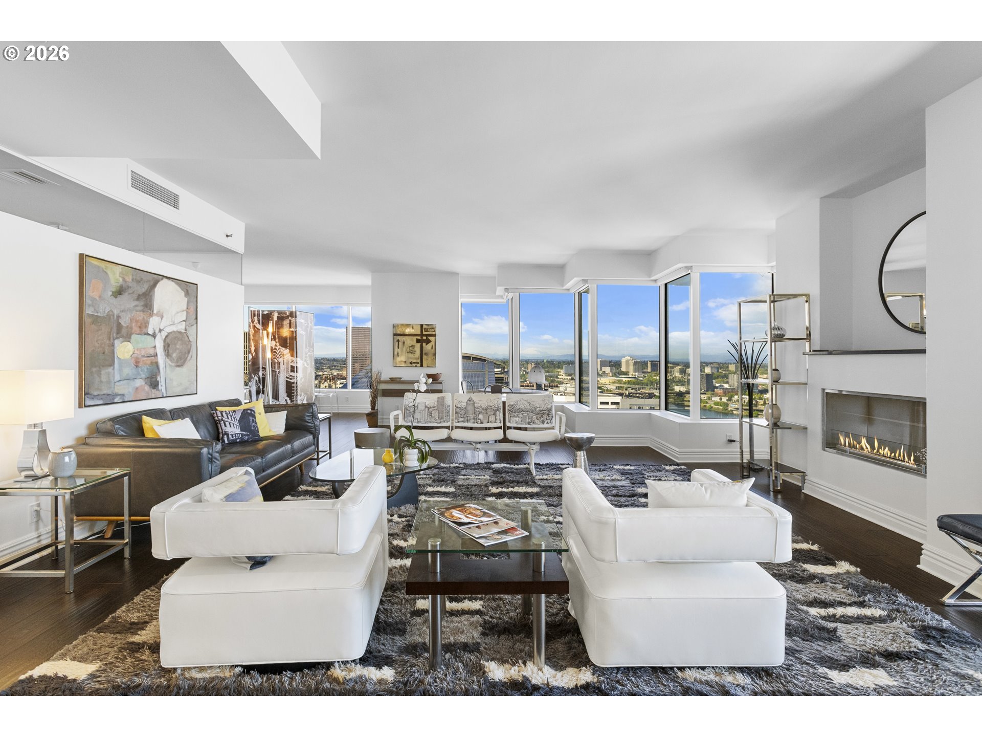 High above the city on the 23rd floor of the iconic KOIN Tower, this residence at Fountain Plaza at KOIN Tower offers a rare blend of legacy prestige and modern revival. Built in 1985 and once considered one of the most distinguished addresses in the city, the building is experiencing a renewed energy as owners thoughtfully remodel and elevate their homes—restoring its place among Portland’s most desirable high-rise communities.From the moment you arrive, the experience feels distinctly elevated. With its classic, “New York doorman–style” presence, the building delivers a level of service, security, and sophistication that’s increasingly hard to find.Inside, the residence opens to sweeping, unobstructed views that redefine everyday living. From the comfort of your living room—without ever standing—you can take in a breathtaking panorama of the Pacific Northwest’s most iconic peaks: Mount Hood, Mount St. Helens, and Mount Adams. It’s a view that feels cinematic in every season, from snow-capped mornings to glowing sunset silhouettes.The modernized kitchen complements the setting with high-end appliances and clean, contemporary finishes—designed for both effortless daily living and elevated entertaining.Unlike most condo buildings in Portland, where upper-floor living tops out well below the skyline, Fountain Plaza residences begin on the 20th floor—placing every home in a truly rare vantage point above the city. Here, you’re not just buying a condo—you’re stepping into a perspective few ever experience.This is more than a home; it’s a return to one of Portland’s most storied addresses—reimagined for today.