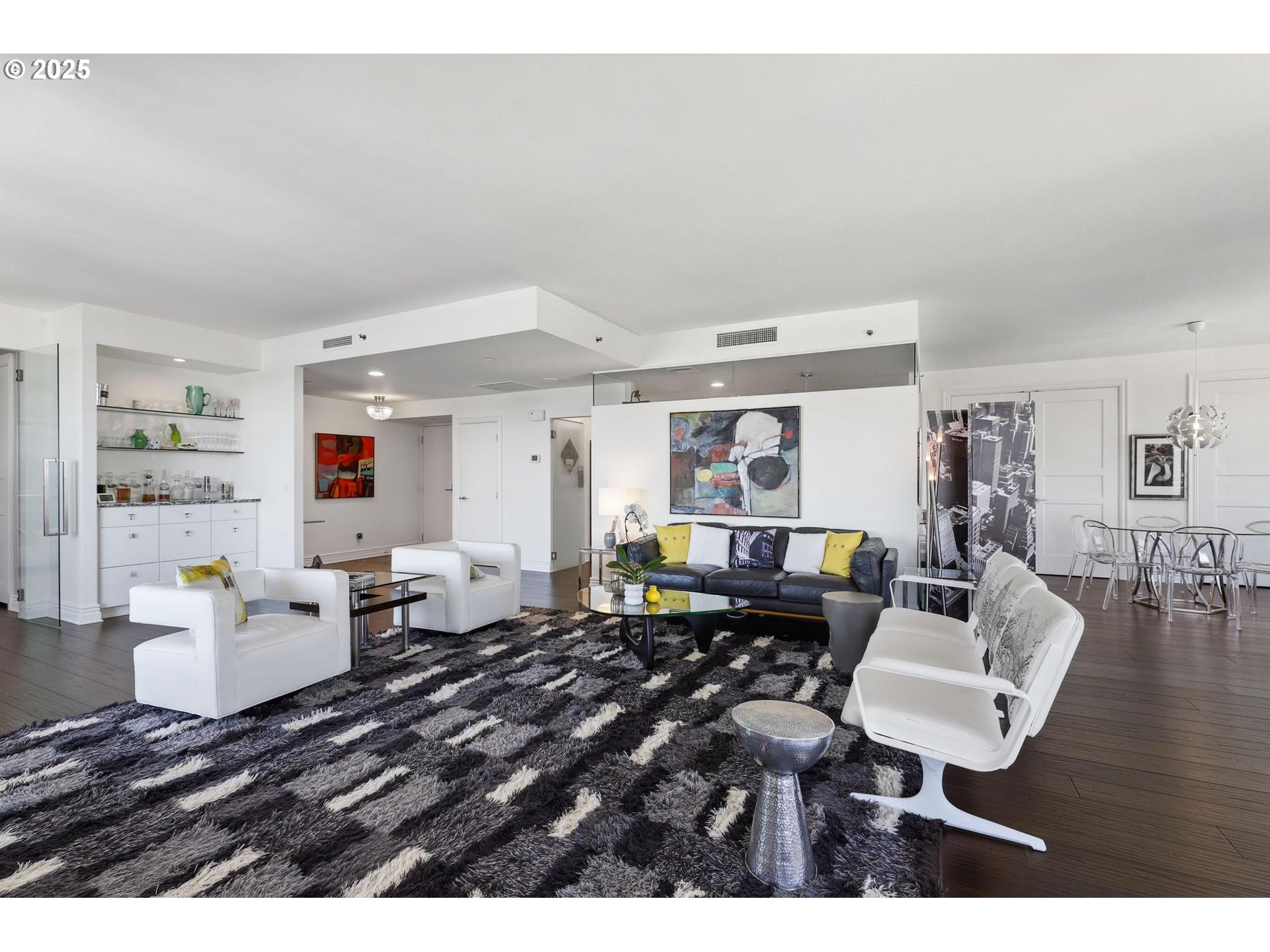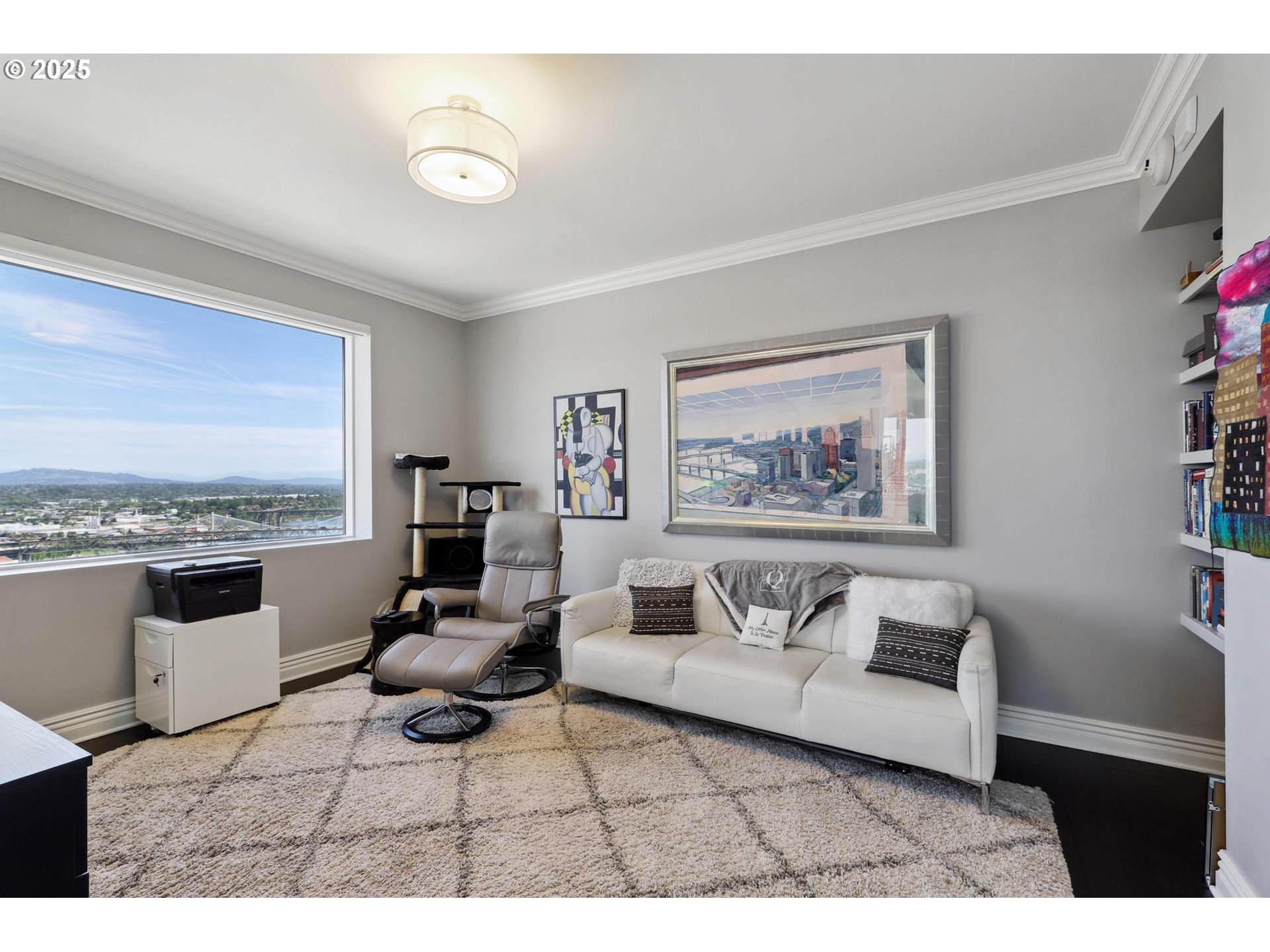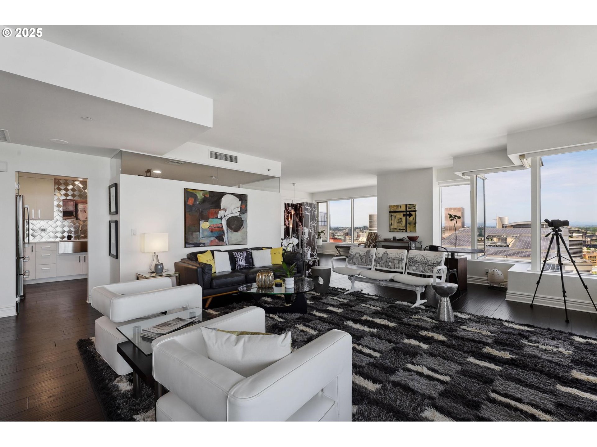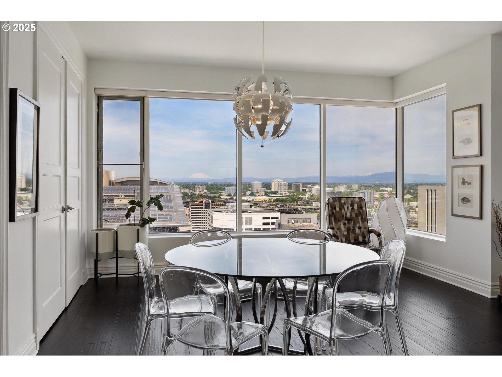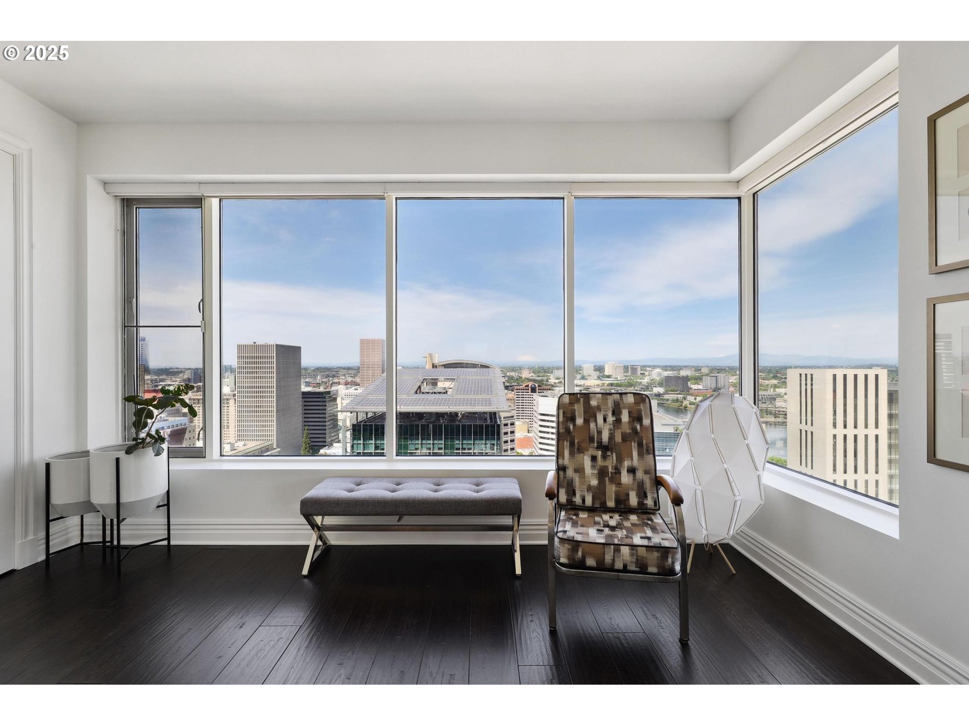 Step into classic New York sophistication where you'll experience unparalleled luxury on the 23rd floor of KOIN Tower at Fountain Plaza. This extensively remodeled condominium boasts stunning views of the city, Mt. Hood, Mt. St. Helens, Mt. Adams, and the Willamette River. The residence features two spacious bedrooms, two full baths, and floor-to-ceiling windows that fill the space with abundant natural light. The updated chef’s kitchen is a standout, equipped with premium stainless-steel appliances, custom cabinetry, bench seating, and stylish hardwood and tile floors. The primary suite includes an expansive walk-in closet and a spa-like bathroom with a luxurious shower, while the versatile second bedroom is ideal for guests or a home office. Relax on the covered patio and immerse yourself in the vibrant yet serene environment of the arts district and revel in the luxury of a grand lobby with 24-hour concierge service. Located steps from premier shopping, dining, and entertainment, this sophisticated high-rise home offers urban living at its finest. EV charger!!! Don’t miss this rare opportunity to own a gem in Fountain Plaza. NEW EV charger!
