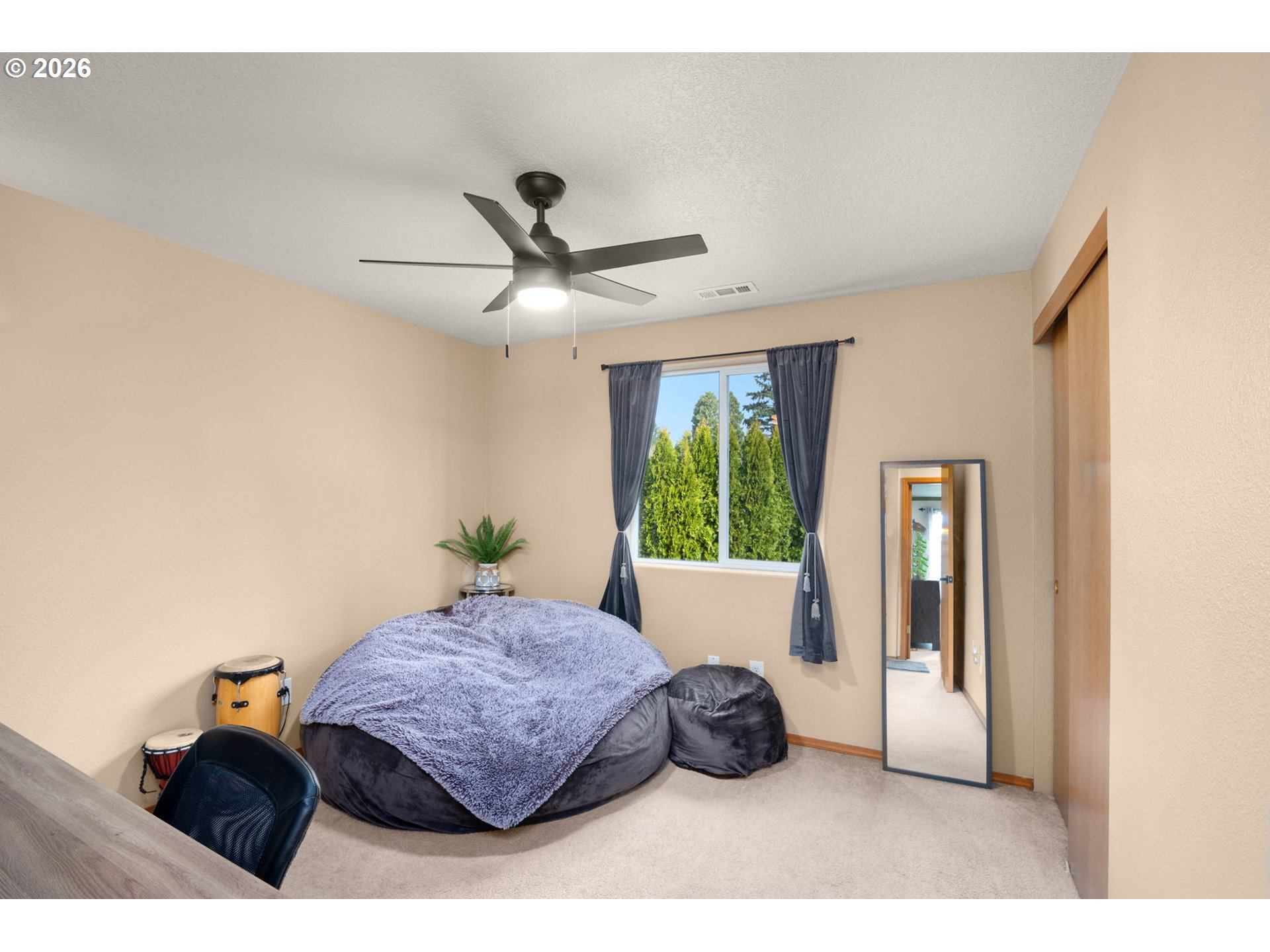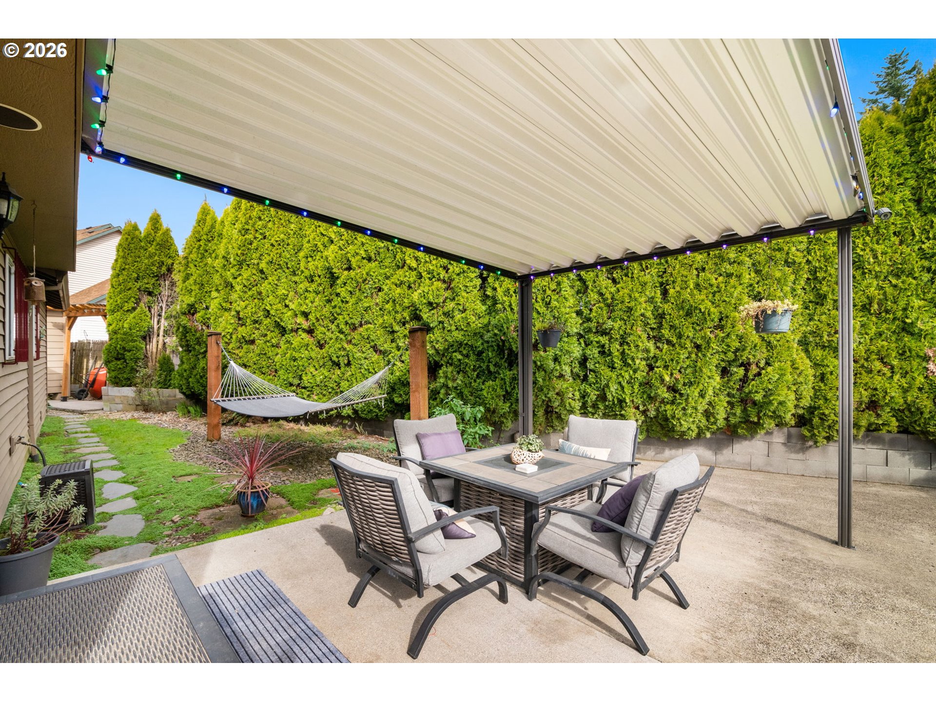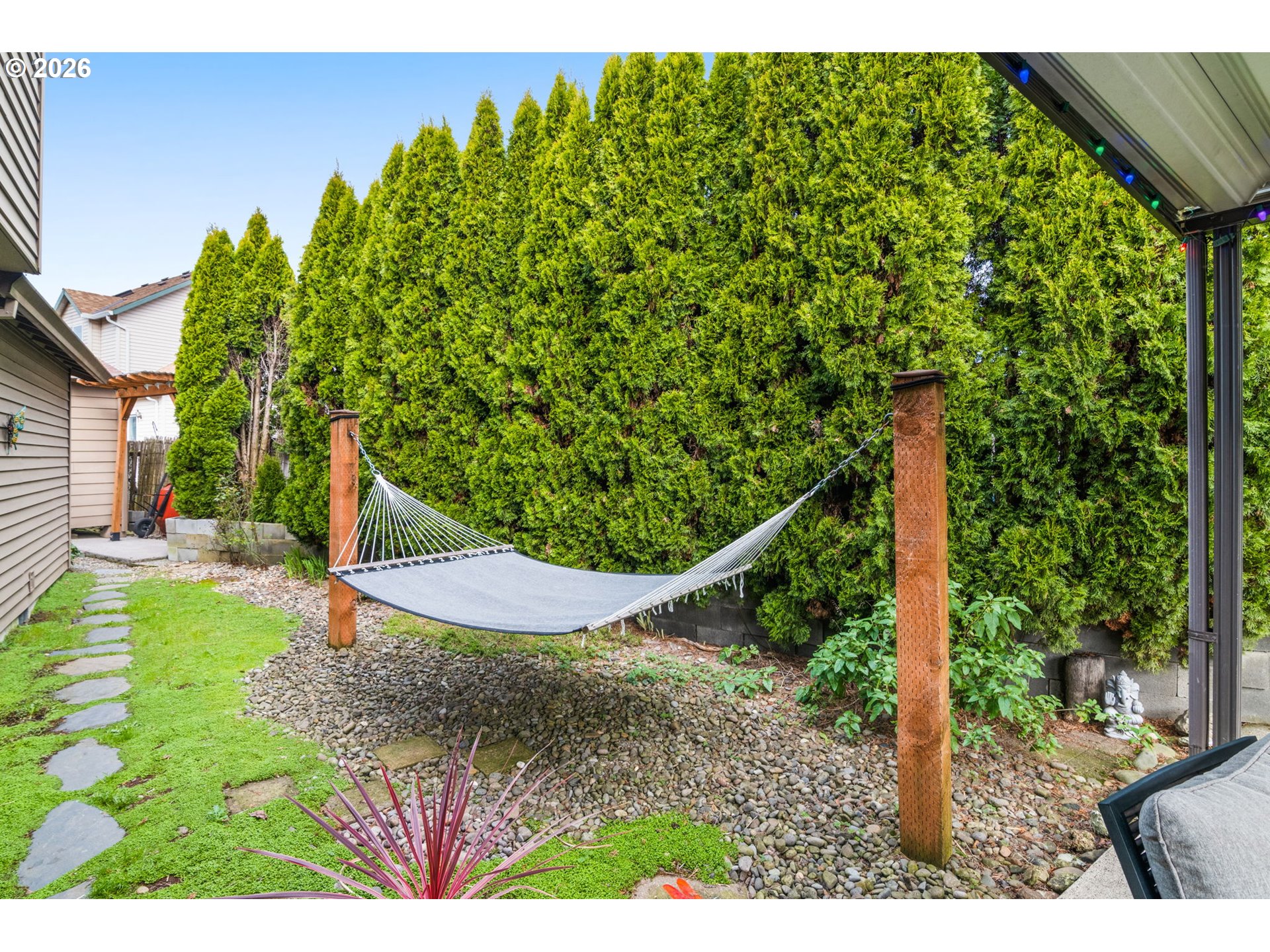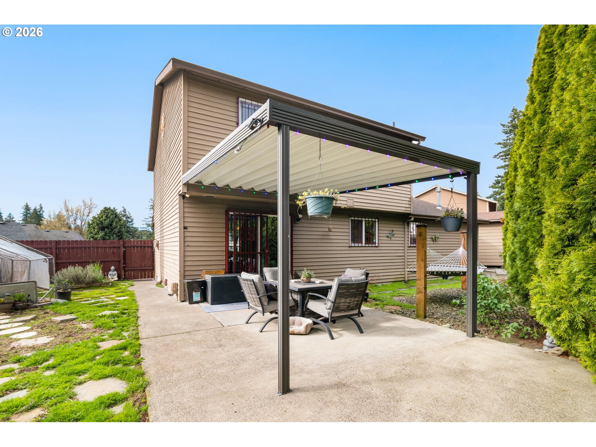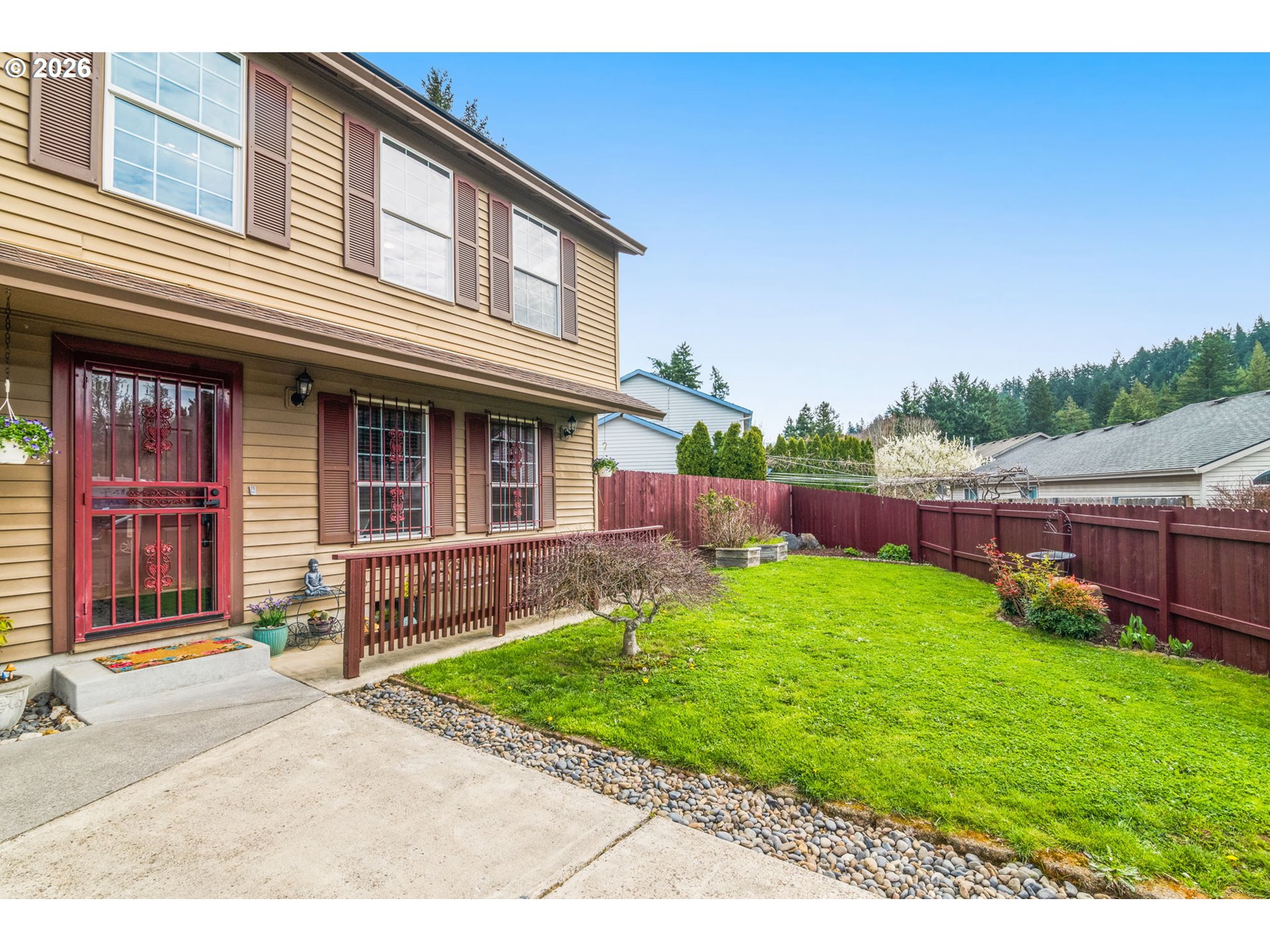 OPEN THIS SATURDAY, 3/21, FROM 1-3! Tucked at the end of a quiet cul-de-sac on a private drive just three blocks away from the entrance to Powell Butte walking trails, this home offers a great mix of privacy, convenience, and access to the outdoors. Inside, the home has been updated throughout with matte black ceiling fans with LED lighting in every room, updated door hardware, and modern light fixtures in the kitchen, dining area, hallways, and half bath. The primary suite bathroom features heated tile floors, and all major appliances have been updated within the past four years. Sitting on a 5000sf lot, with a covered back patio (including built-in speakers), a separate covered BBQ area sits next to a finished shed with a workbench, lighting, and overhead storage. There’s also a hammock lounge area, a chicken coop with covered run, and recently updated fencing with side gates. Additional features include a three-car driveway, attic storage with pull-down access, and exterior RV and hot tub hookups. You’re also within a mile of groceries, restaurants, and access to the Springwater Corridor. Solar installed for reduced utility costs. [Home Energy Score = 9. HES Report at https://rpt.greenbuildingregistry.com/hes/OR10183383]