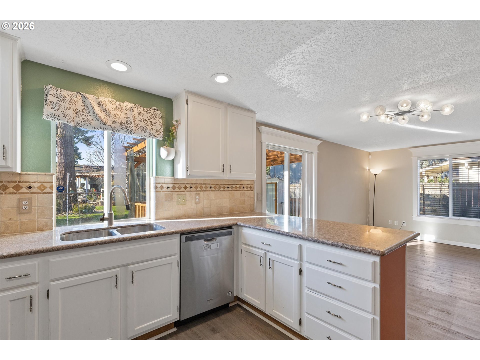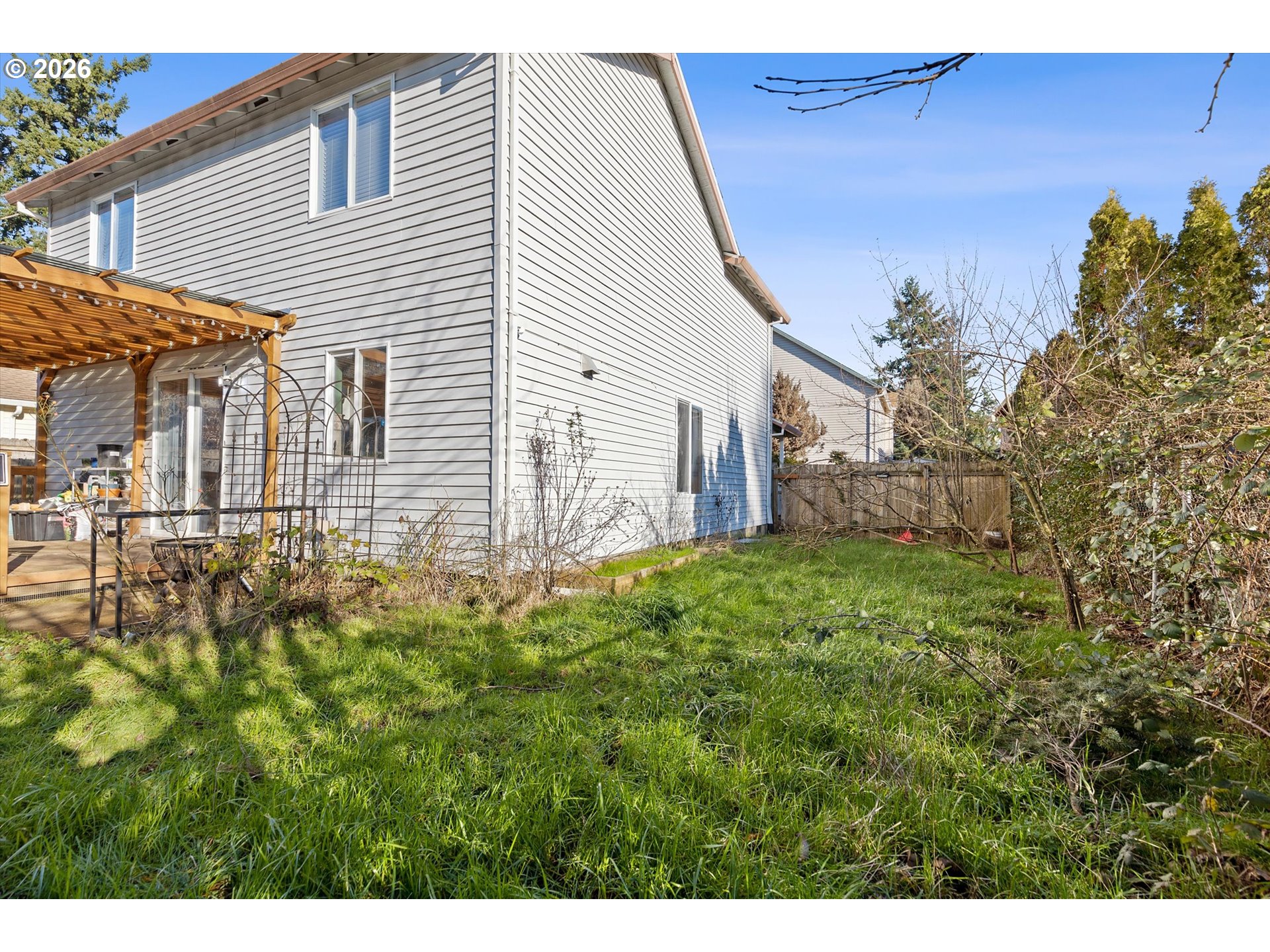 Charming 4 bedroom 2 and a half bath home offering well designed living space. This inviting residence features a thoughtful layout with formal living and dining areas, highlighted by laminate flooring that adds warmth, durability, and a cohesive flow throughout the main level. The updated kitchen is both functional and stylish, showcasing granite countertops, stainless steel appliances, ample cabinetry, and generous counter space, making it ideal for everyday living as well as entertaining. The kitchen opens seamlessly to the comfortable and welcoming family room, creating a natural gathering space for relaxation or hosting guests. Large windows provide excellent natural light, enhancing the home’s open and airy feel. Sliding glass doors extend the living space outdoors to a fully fenced backyard, offering privacy and versatility. The covered patio is perfect for year-round outdoor dining, barbecues, or simply enjoying the Pacific Northwest seasons, while the yard provides room for gardening, play, or pets. Upstairs, the primary bedroom suite serves as a private retreat with vaulted ceilings, a walk-in closet, and a well-appointed ensuite bathroom. Three additional bedrooms offer flexibility for guest rooms, home offices, or hobby spaces, complemented by a convenient full bath and a main-level powder room.