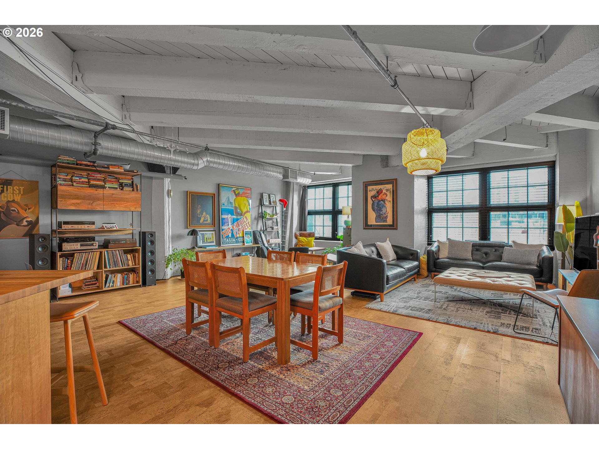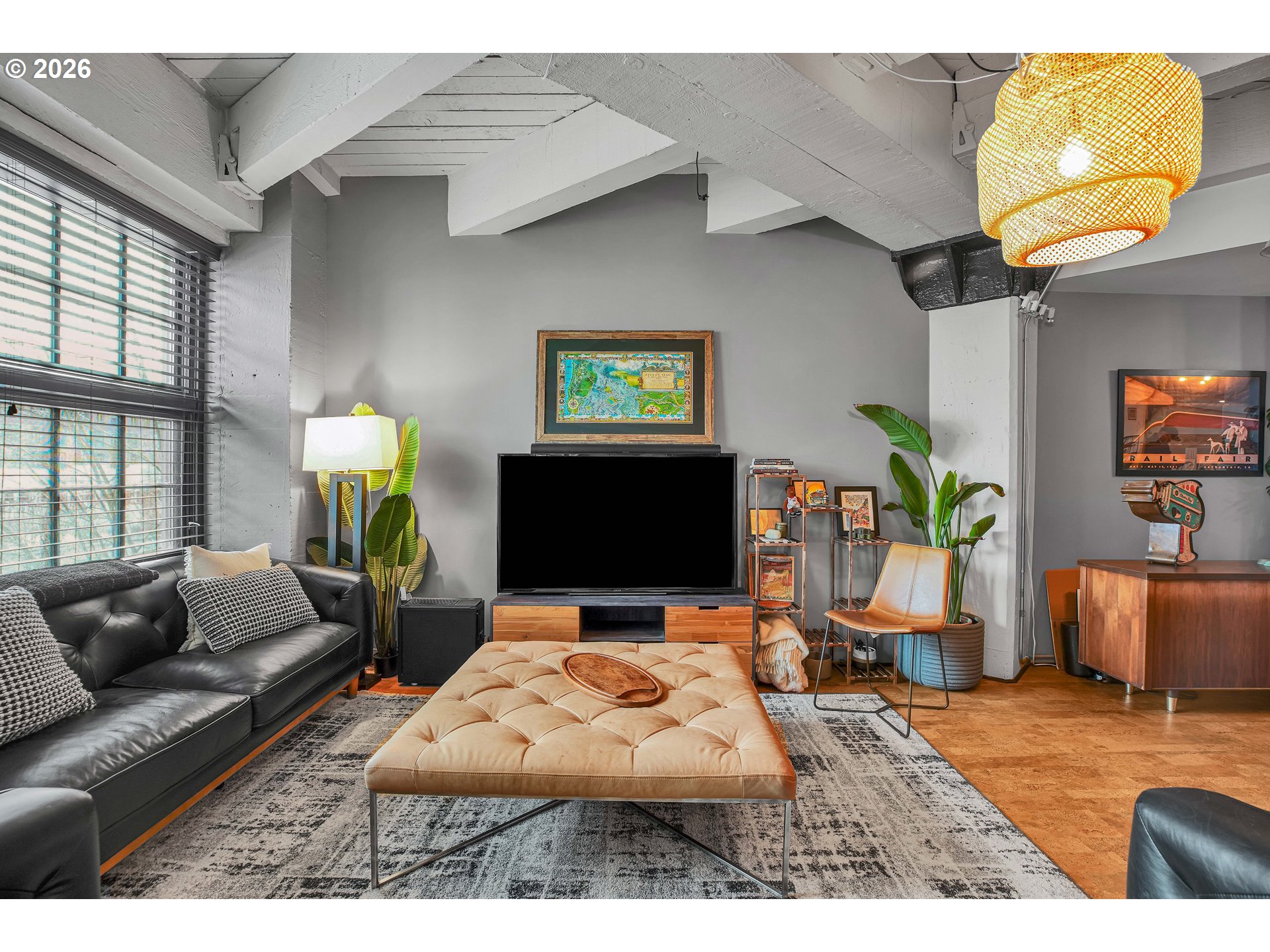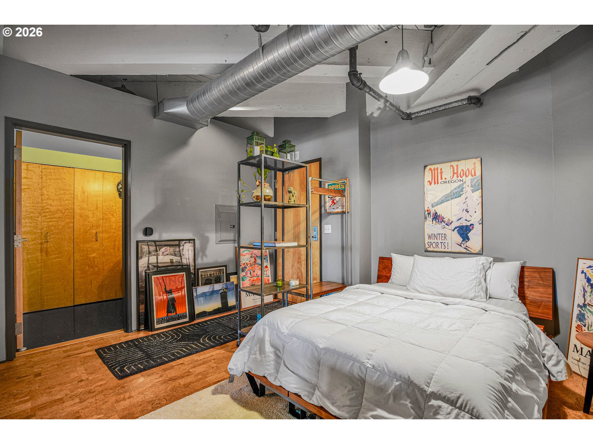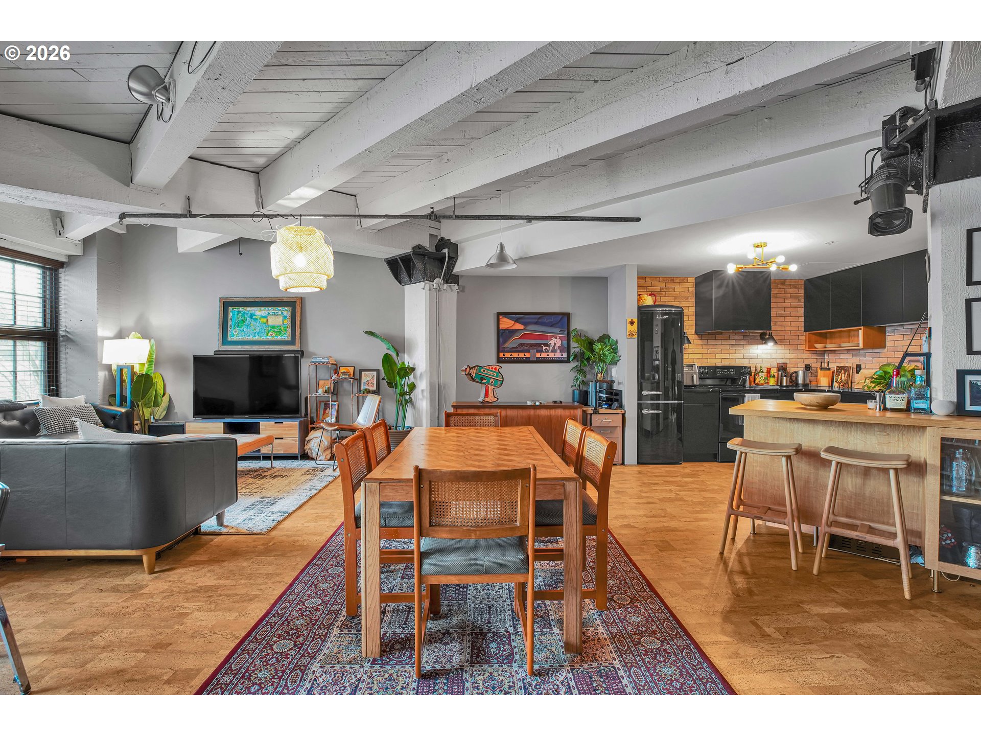 (503) 893-8874Chic Loft in Historic Marshall Wells Building – 1 Bed, 1 Bath. Located in the heart of Portland’s vibrant Pearl District, this stunning condo is nestled within the iconic Marshall Wells building, a National Historic Landmark originally designed by renowned architect Daniel Burnham, celebrated for New York’s Flatiron Building. Boasting wonderful eastern views, this home effortlessly blends modern elegance with rich industrial character. The loft’s open-concept design seamlessly integrates the living, dining, and kitchen areas, creating a warm and inviting atmosphere. Striking original timber beams, warm cork flooring, and vintage-inspired artistic light fixtures nod to the building’s storied past. The kitchen is a masterpiece in modern styling, designed by Tessa Isset at Neil Kelly. Sleek black handleless cabinets pair beautifully with black PentalQuartz countertops featuring dramatic veining, while cherry wood open shelves add texture and contrast. A white porcelain sink equipped with a stylish Brizo faucet and an Arto brick backsplash with industrial charm complete the refined look. Whether entertaining or unwinding, enjoy a compact, built-in bar area with liquor storage and seating for guests. Modern black wall outlets and light switches add a clean, cohesive finish to the space. This urban sanctuary balances history with sophisticated design – truly one of the finest living options in the Pearl District. Don't miss the common space patio!