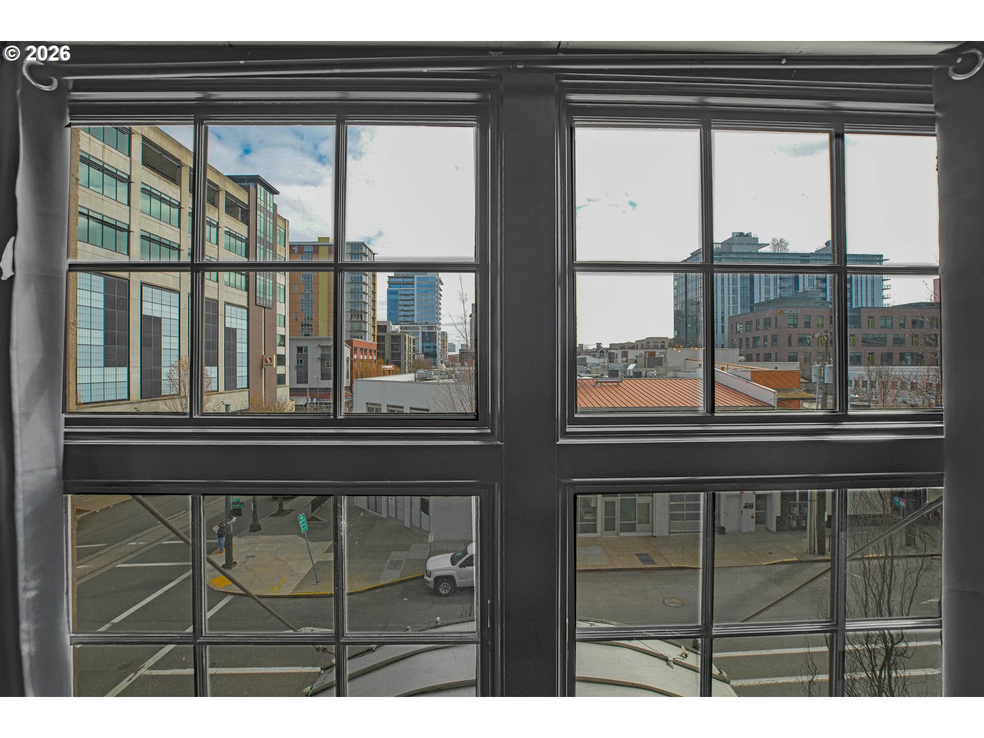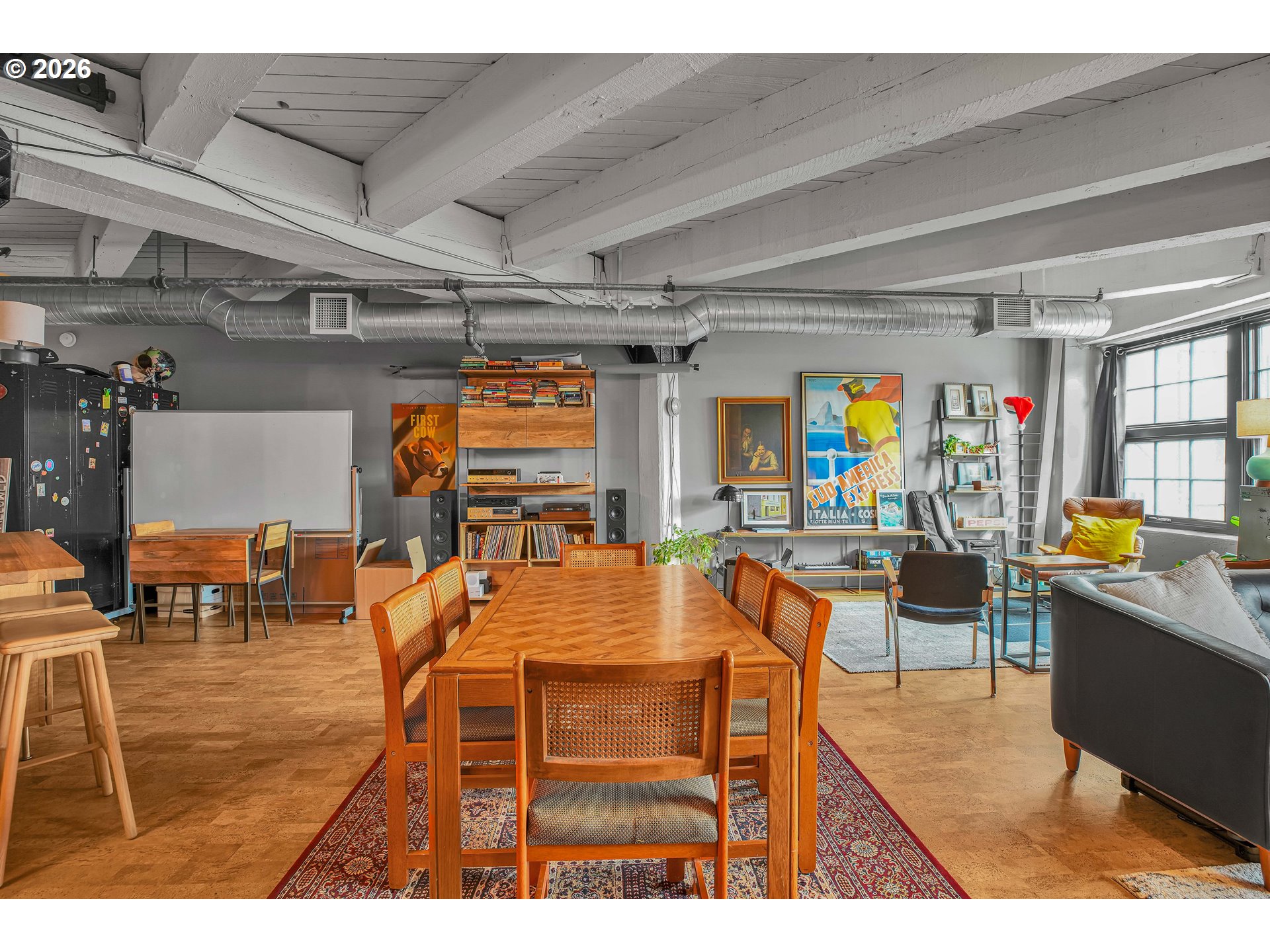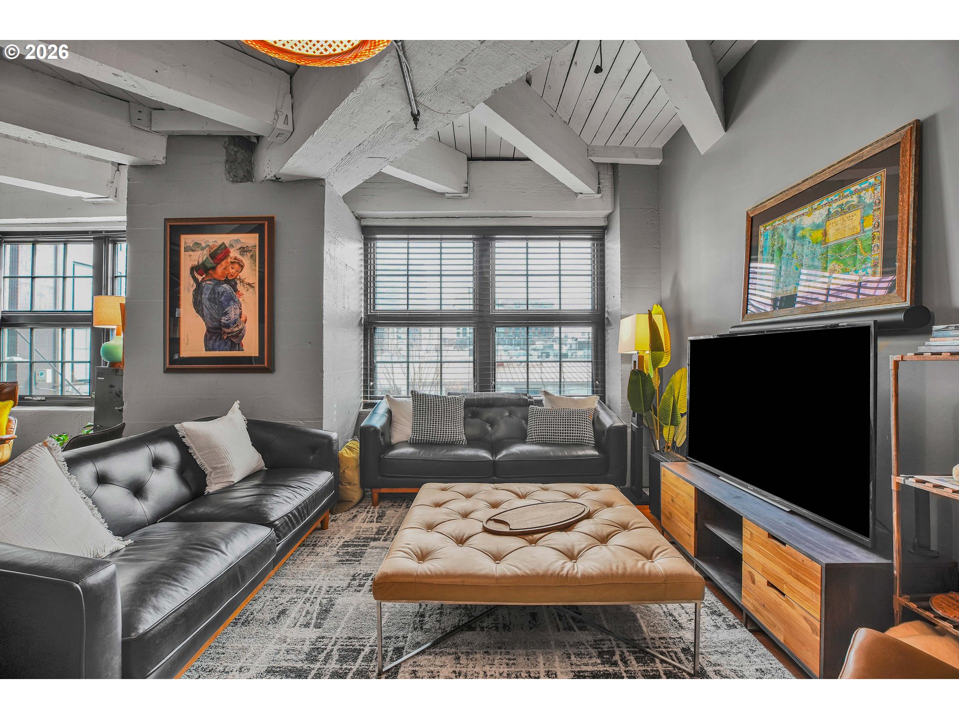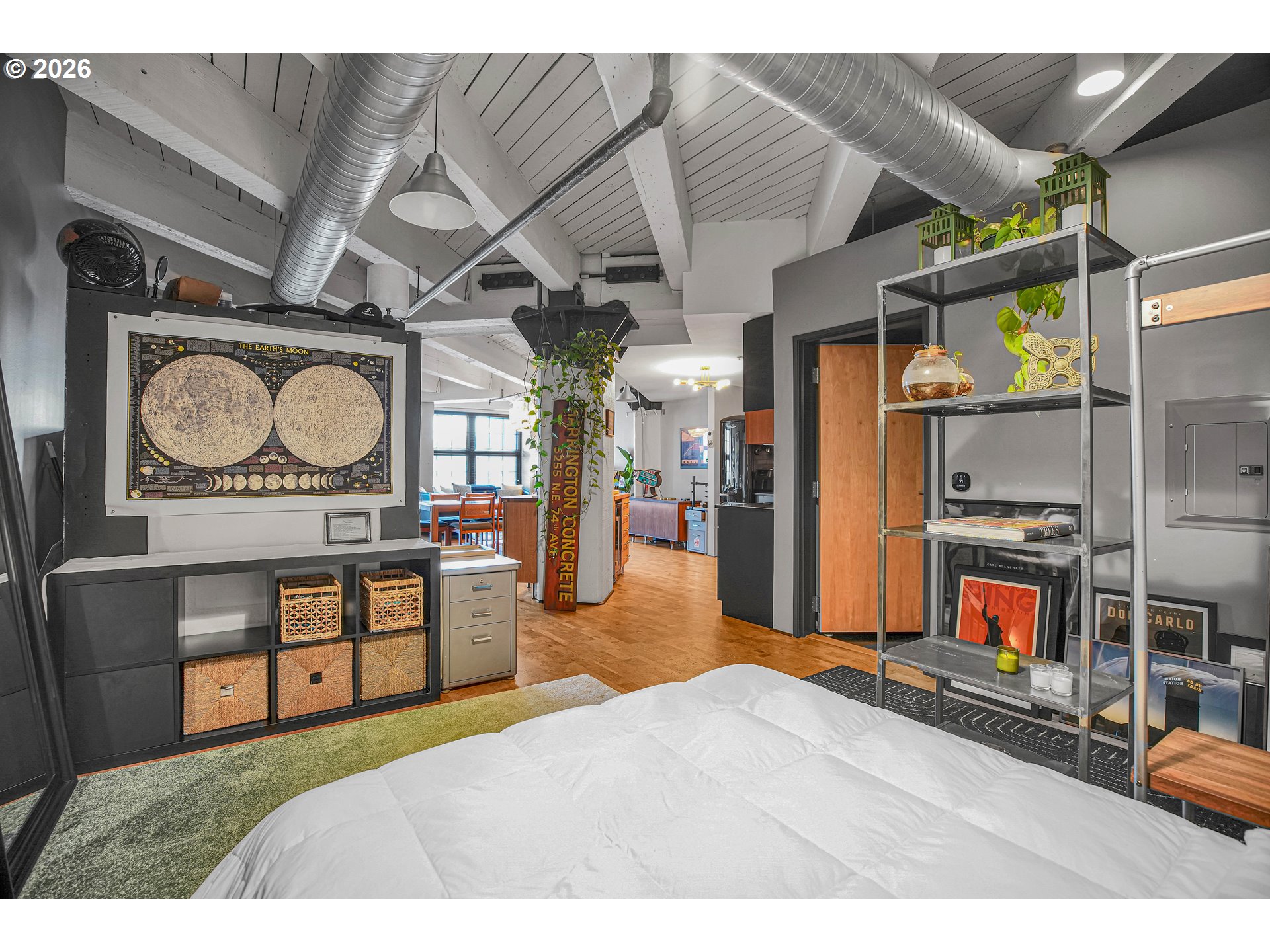 (503) 893-8874Chic Loft in Historic Marshall Wells Building – 1 Bed, 1 Bath. Located in the heart of Portland’s vibrant Pearl District, this stunning condo is nestled within the iconic Marshall Wells building, a National Historic Landmark originally designed by renowned architect Daniel Burnham, celebrated for New York’s Flatiron Building. Boasting wonderful eastern views, this home effortlessly blends modern elegance with rich industrial character. The loft’s open-concept design seamlessly integrates the living, dining, and kitchen areas, creating a warm and inviting atmosphere. Striking original timber beams, warm cork flooring, and vintage-inspired artistic light fixtures nod to the building’s storied past. The kitchen is a masterpiece in modern styling, designed by Tessa Isset at Neil Kelly. Sleek black handleless cabinets pair beautifully with black PentalQuartz countertops featuring dramatic veining, while cherry wood open shelves add texture and contrast. A white porcelain sink equipped with a stylish Brizo faucet and an Arto brick backsplash with industrial charm complete the refined look. Whether entertaining or unwinding, enjoy a compact, built-in bar area with liquor storage and seating for guests. Modern black wall outlets and light switches add a clean, cohesive finish to the space. This urban sanctuary balances history with sophisticated design – truly one of the finest living options in the Pearl District. Don't miss the common space patio!