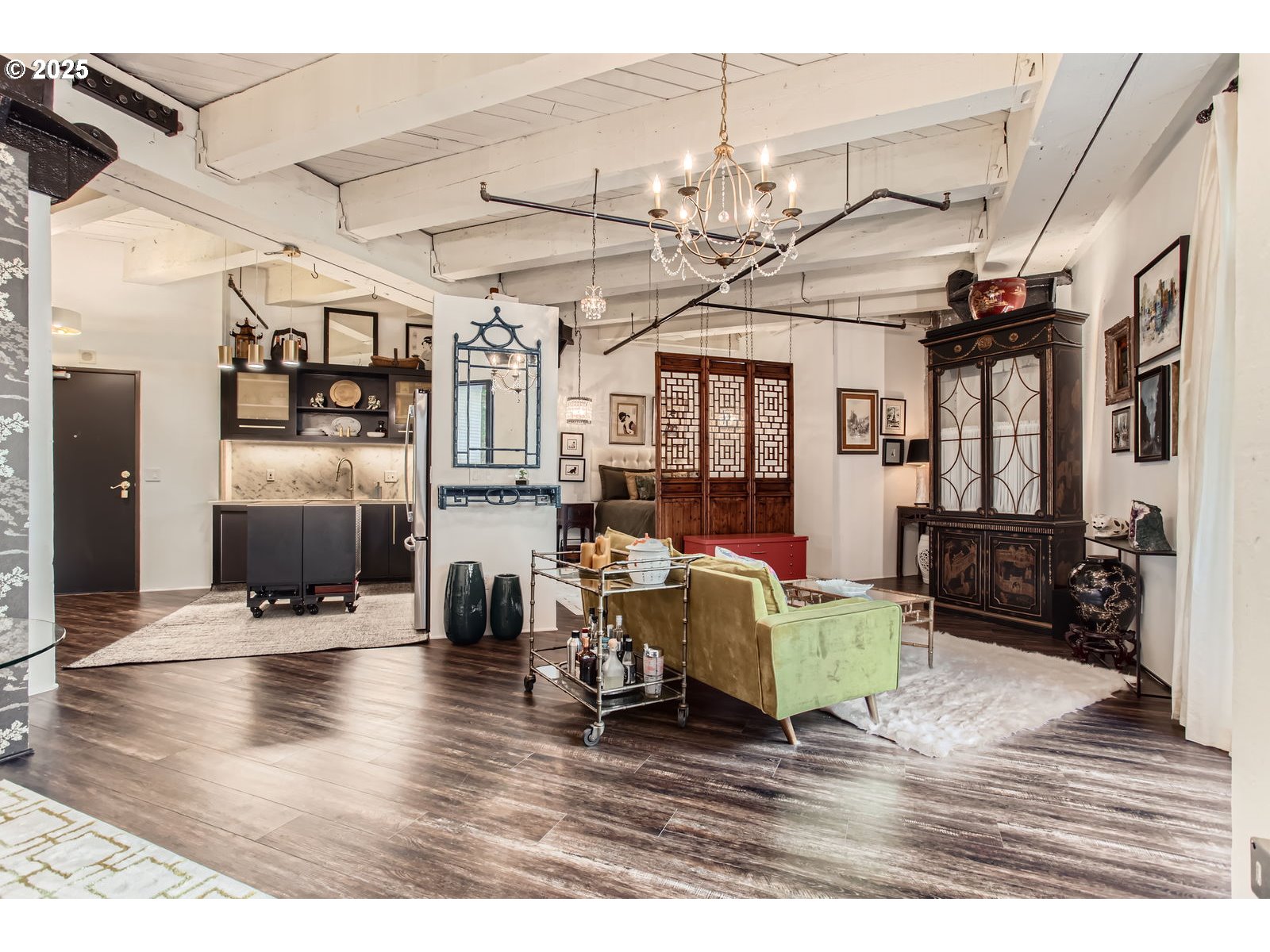(503) 893-8874Historic Soul Meets Modern Luxury in the Heart of the Pearl. Step into a space where Portland's industrial past and contemporary sophistication collide. Welcome to your dream loft in the iconic Marshall Wells Building. Located in the vibrant Pearl District, this one-of-a-kind, third-floor residence blends historic charm with fully reimagined luxury. Originally built in 1910 as part of the Marshall-Wells Hardware Company, this nationally recognized warehouse is now one of Portland’s most sought-after addresses. Enjoy a sun-drenched patio with a garden, tranquil water feature, wind sculpture, Dogwood + Japanese Maple trees, lush greenery, gas grill, bench seating and bistro-style dining. Inside, the expansive loft stuns with 12-foot ceilings, exposed white beams, all-new wide-plank dark LTV flooring and high-end designer lighting that adds warmth and drama. The open-concept layout is ideal for creative living and entertaining, with space that adapts to your lifestyle. A rare find in the Pearl, the private tree-framed patio is wrapped in Star Jasmine and seasonal blooms—a tranquil space for morning coffee or winding down at dusk. The kitchen is a showstopper with custom-painted cabinetry, luxurious slab marble countertops and backsplash, brushed brass fixtures and an oversized brass sink that adds elegance and edge. The spa-inspired bathroom features a herringbone-tiled tub/shower, large slab marble vanity, brushed brass finishes and bold wallpaper. The laundry area includes a stacked washer/dryer. A custom-designed walk-in closet offers exceptional storage—a rarity in loft living. The secure, elevator-served building offers a private courtyard, bike storage, package room, deeded parking with dedicated storage and EV charging. Just steps to top restaurants, boutiques, galleries, parks and the Portland Streetcar—this isn’t just a home, it’s a lifestyle. HOA dues anticipated to decrease this fall following a reduction in earthquake insurance.