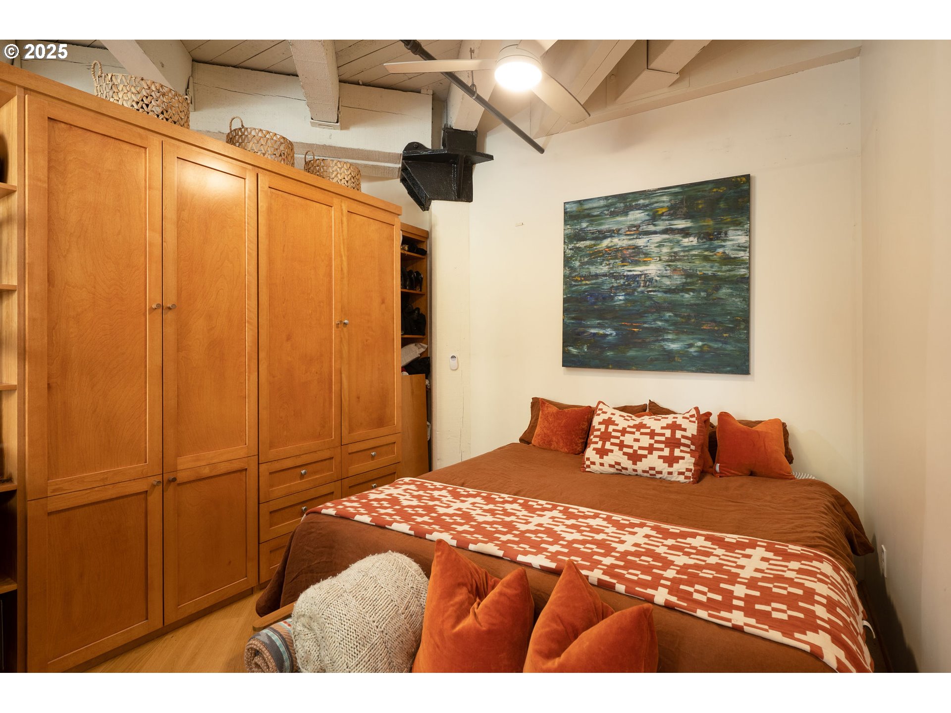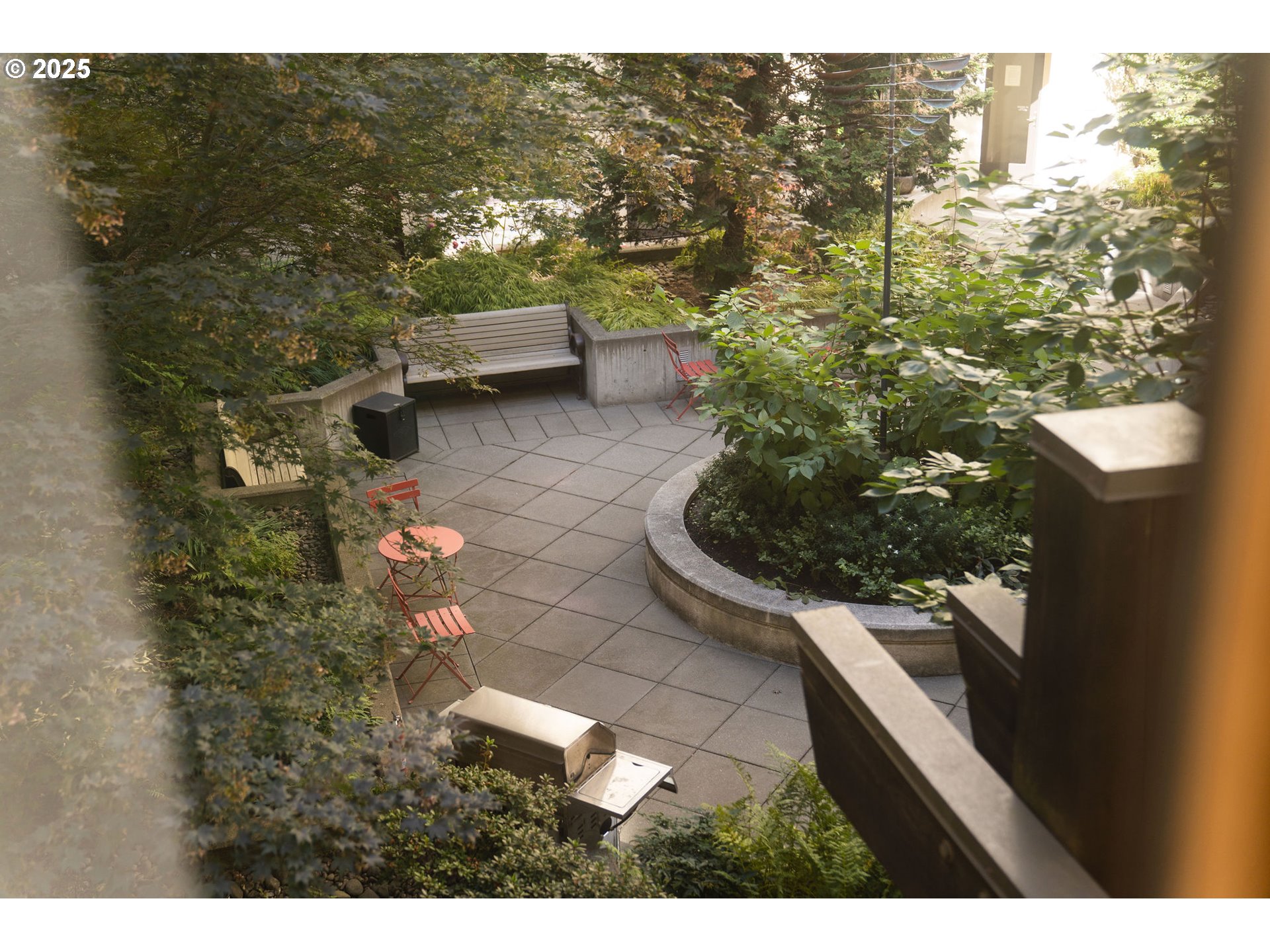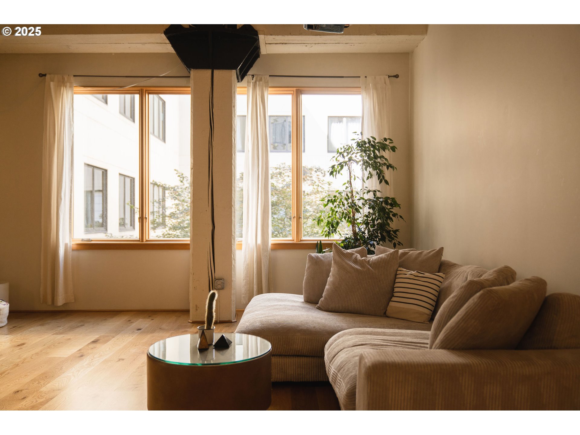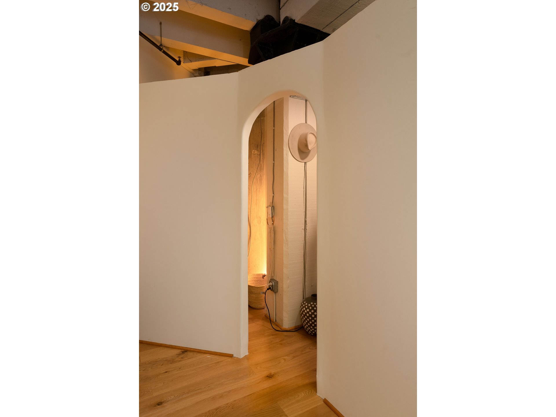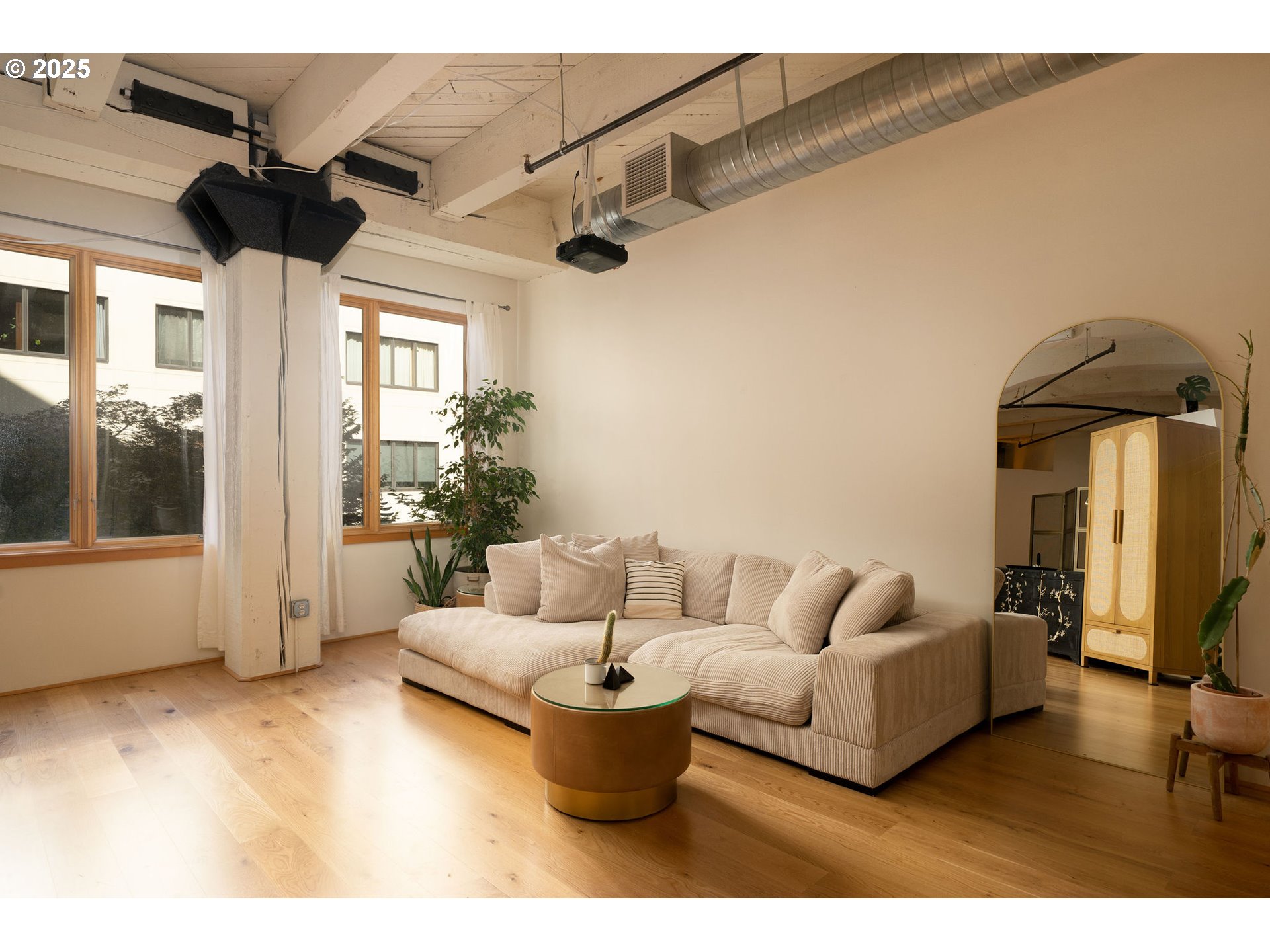 Embrace the charm of Portland's Pearl District with this stunning condo in the renowned Marshall Wells Lofts. Originally built in 1910 as a hardware warehouse designed by Daniel Burnham, this building has been transformed into a modern residential gem while preserving its industrial character. Now listed on the National Register of Historic Places, the lofts boast high ceilings, exposed timber beams, and a beautifully designed central atrium. This particular unit shines with gleaming hardwood floors and an abundance of natural light, offering delightful views of the community courtyard. The open layout is perfect for relaxation and entertaining, featuring custom built-ins and a unique archway leading to a thoughtfully designed closet. The modern kitchen is a chef's dream, equipped with new tile countertops, a stylish backsplash, a new dishwasher, and stainless steel appliances. The spacious living room features tall windows that enhance the inviting atmosphere. The well-appointed bathroom includes a tiled vanity, fresh paint, and a convenient laundry area with a washer and dryer. Experience the urban lifestyle just minutes from your front door, with easy access to public transportation via MAX, and the option to walk or bike to explore the city’s many attractions. This unit also comes with deeded parking for added convenience. The building is equipped with two elevators for easy access and features a gorgeous lobby that welcomes you and your guests. Don’t miss the opportunity to own a piece of history blended with modern comforts. Schedule your viewing today and step into your new urban oasis in the heart of Portland!