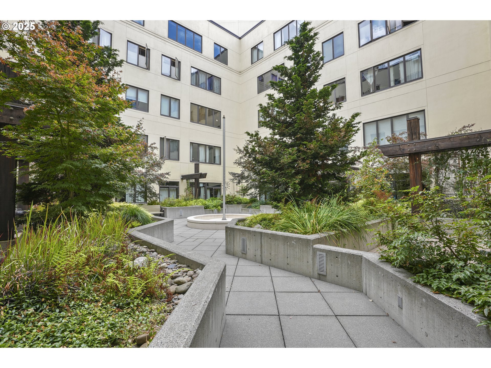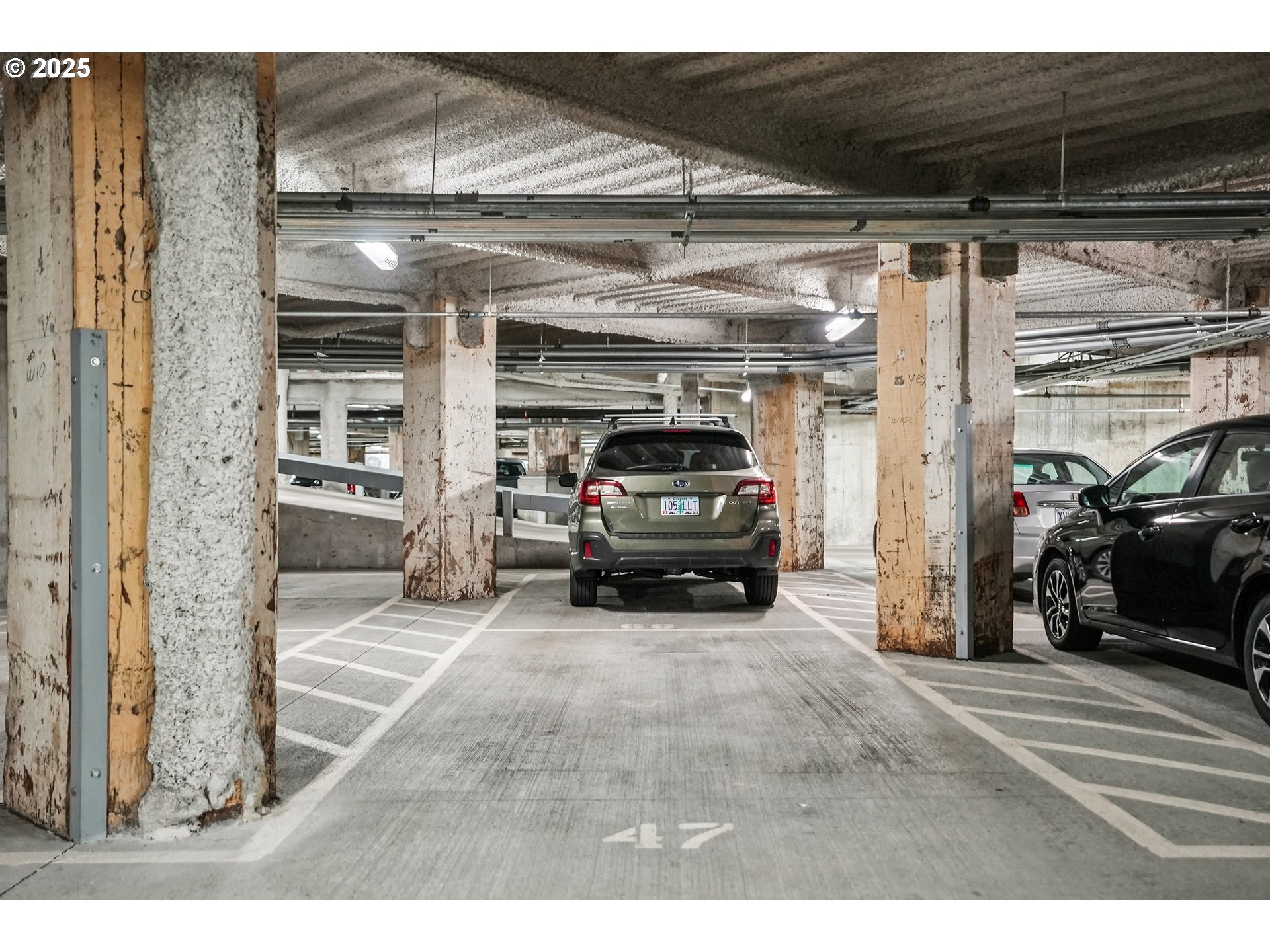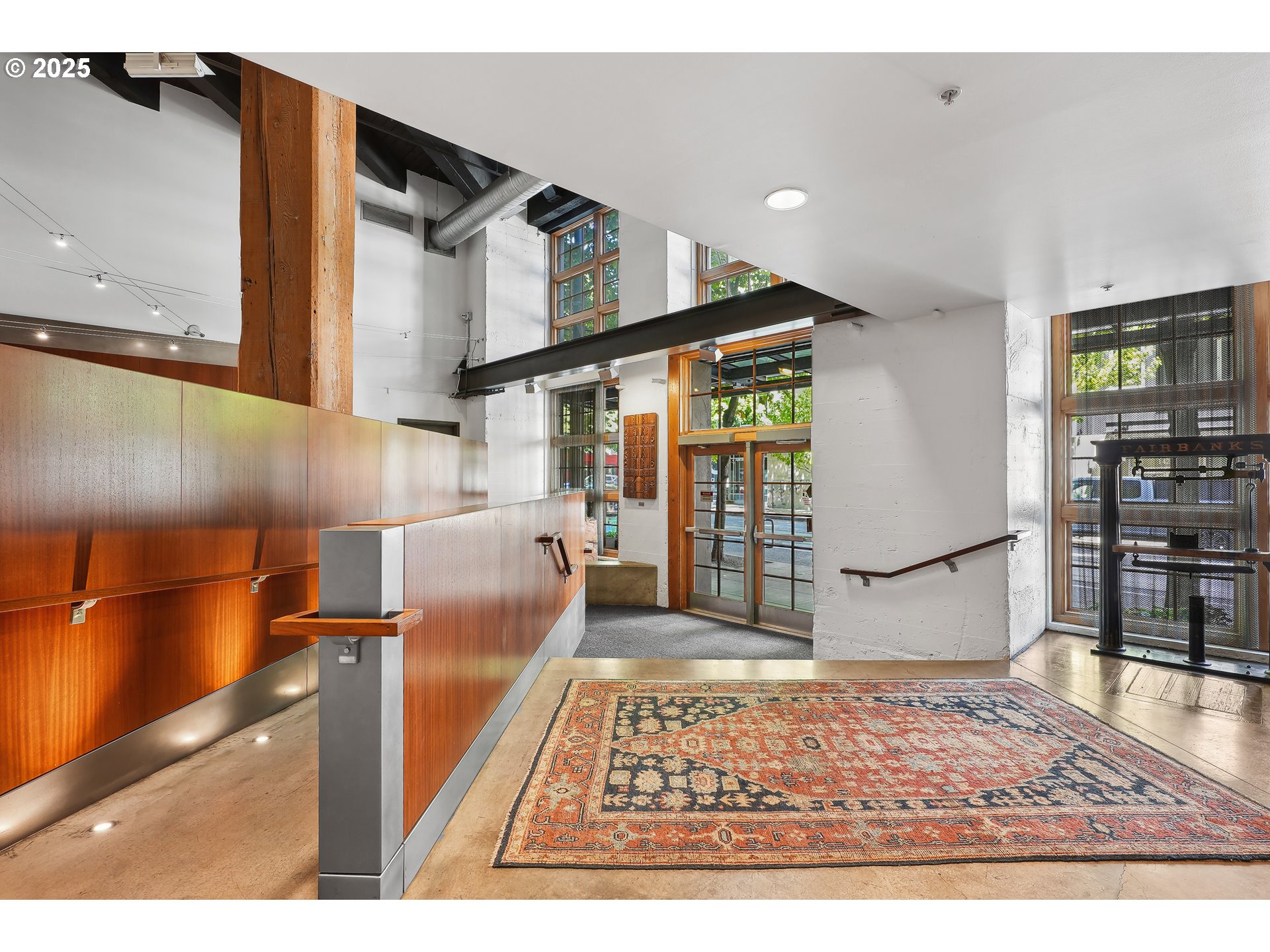 This authentic industrial loft penthouse features soaring ceilings, wood floors, and huge windows that flood the space with natural light. New separately zoned heating and air conditioning units for each level ensure year round comfort. The open-concept main floor is perfect for entertaining, featuring a beautifully updated kitchen with quartz countertops, a gas range with a vented hood, and a spacious kitchen island with seating. A cozy gas fireplace anchors the living area, while a third sleeping area with a custom wall bed and a full bathroom provides flexibility and convenience. Upstairs, the wood floors continue into the private quarters, which include two bedrooms, a large bathroom with a double vanity, a full laundry room, and a spacious walk-in closet. Enjoy expansive views of the neighborhood and West Hills, as well as stunning sunsets and the changing colors of the seasons from the large terrace, primary bedroom, and the main level. The building provides a beautifully landscaped courtyard and a handsome lobby with exposed old-growth beams. Tandem parking for 2 cars and a storage unit are included.