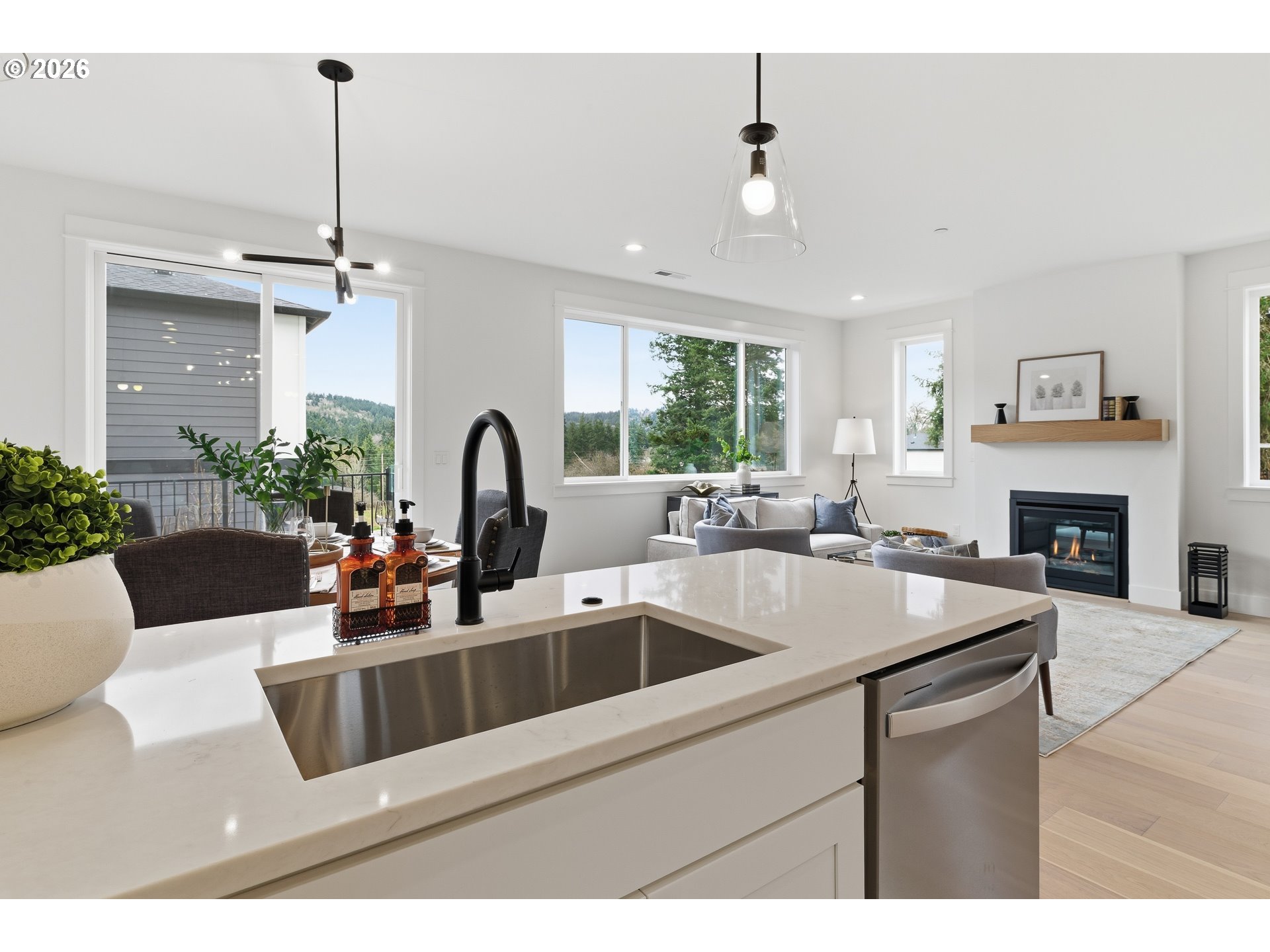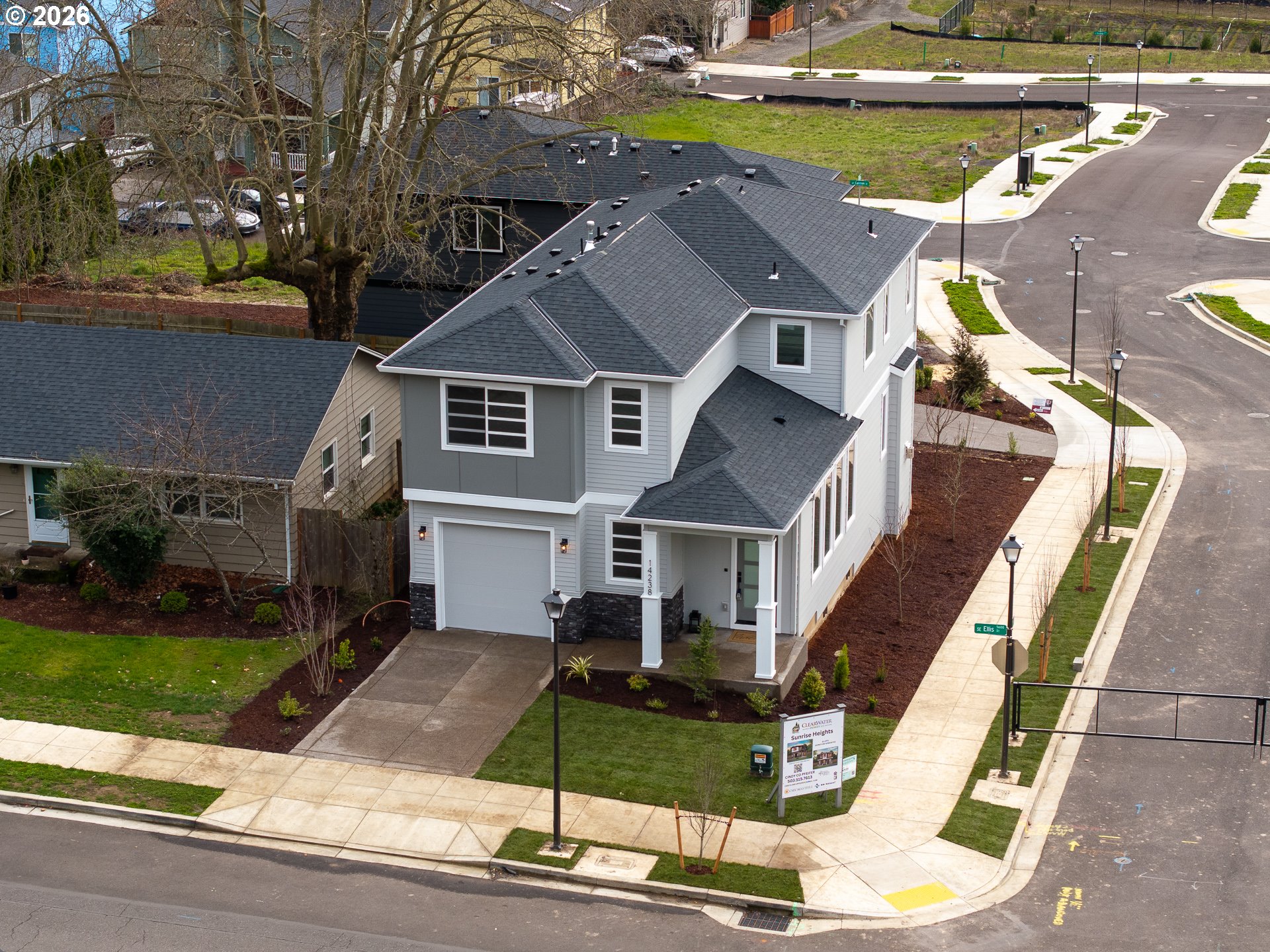 Move in ready!!!Clearwater Homes at Sunrise Heights — 32-Lot Subdivision.Discover this beautiful brand new 1,926 sq. ft. home offering 3 bedrooms and 2.5 baths. Nestled just one block from Powell Butte Nature Park.Step inside to find 9-foot ceilings on the main floor, a cozy gas fireplace, and gorgeous engineered hardwood floors throughout the main level. The kitchen features slab quartz countertops, stainless steel appliances, and a modern design ideal for everyday living and entertaining.Upstairs, the primary suite includes a walk-in closet and a double-sink vanity, offering both comfort and convenience. Enjoy a landscaped front yard with a sprinkler system for easy maintenance. Tankless water heater. plus a built-in fire sprinkler system for added safety and peace of mind. Elegance meets affordability in this thoughtfully designed home.