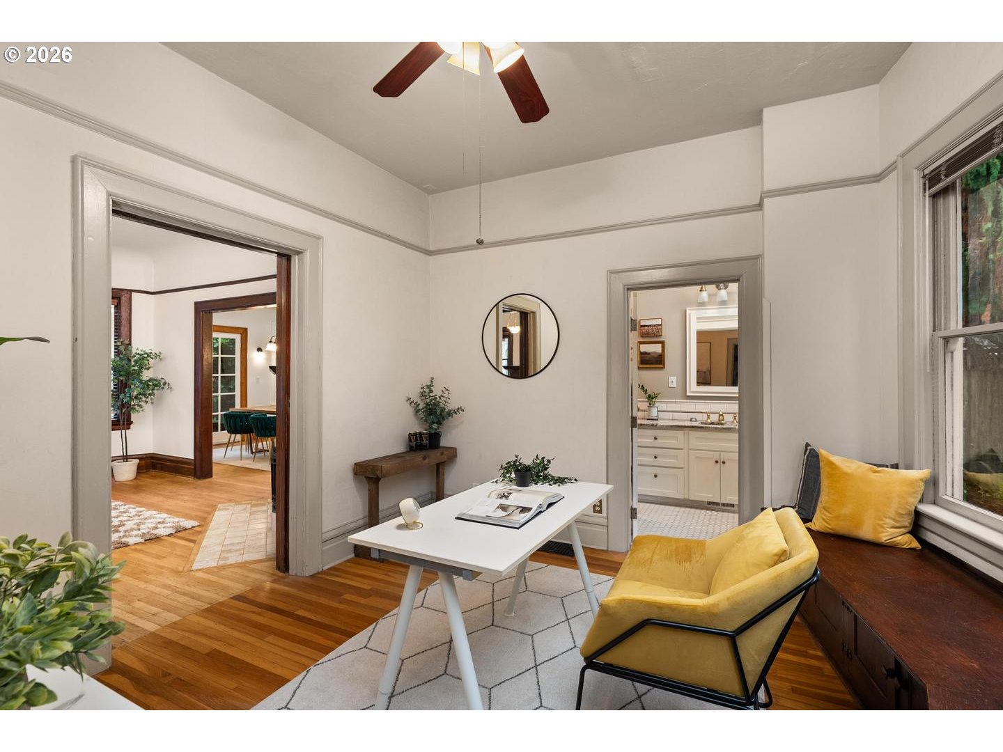 (503) 893-8874Perched proudly above the street overlooking the Buckman neighborhood, this home offers a rare combination of scale, architectural integrity, and a crowd pleaser floor plan in one of Portland’s most desirable close-in locations. A welcoming front porch provides the perfect spot for morning coffee, an evening glass of wine, and connecting w/ the neighborhood. Four bedrooms, 2 bathrooms upstairs, while a bedroom suite on the main level provides flexibility for guests, multigenerational living, or a dedicated work-from-home setup. Rooms throughout the home are generously sized and filled with natural light, creating comfortable and inspirational everyday spaces. Laundry is conveniently located on the main level. True Craftsman details remain beautifully preserved throughout, including wood floors, leaded glass, pocket doors, built-ins, high ceilings, period casings and moldings, and original picture railing. A rare back staircase — a hallmark of early Craftsman design — adds both character and function. The spacious eat-in kitchen offers abundant countertop space and generous cabinetry, making it a natural gathering place in the home. Outdoors you'll enjoy a rare rooftop deck ideal for dining al fresco or unwinding in the warm months. The home sits on a generous, private lot that feels quiet and tucked away despite being right in the center of Buckman. Downstairs, a massive full, unfinished basement offers loads of storage and potential for future expansion. Seismically strapped for peace of mind. Walkscore.com rates this address a “Paradise” for walkers and cyclists, making car-free living not just possible but easy. Outstanding location surrounded by cafes, parks, restaurants, schools, and everyday amenities all at your fingertips. This unique home is a true ray of sunshine. [Home Energy Score = 2. HES Report at https://rpt.greenbuildingregistry.com/hes/OR10245897]