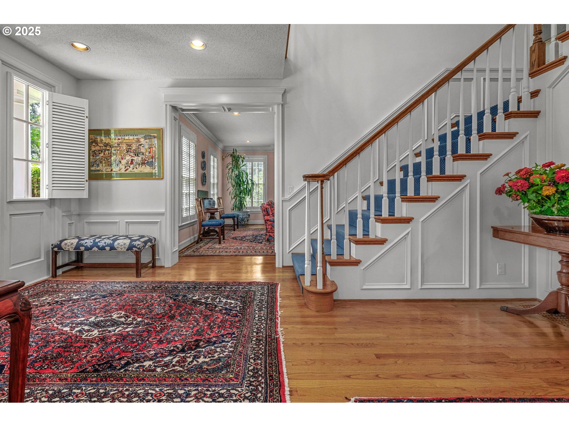 Privately tucked down a gated street, this beautiful home offers the perfect blend of seclusion and convenience, just minutes from downtown. Surrounded by lush gardens and thoughtfully designed outdoor spaces, you’ll find a gorgeous patio and expansive deck ideal for entertaining. Inside, the modern floor plan balances elegance with everyday ease. Formal living and dining rooms showcase timeless charm, while the open kitchen and family room seamlessly connect to the outdoors. Upstairs, four bedrooms include a spacious primary retreat with a fireplace, walk-in closet, and large ensuite bath. The lower level adds even more flexibility with a bonus room plus an additional bedroom and full bath. A rare combination of privacy, beauty, and proximity, this home makes city living feel like a retreat. [Home Energy Score = 1. HES Report at https://rpt.greenbuildingregistry.com/hes/OR10241810]