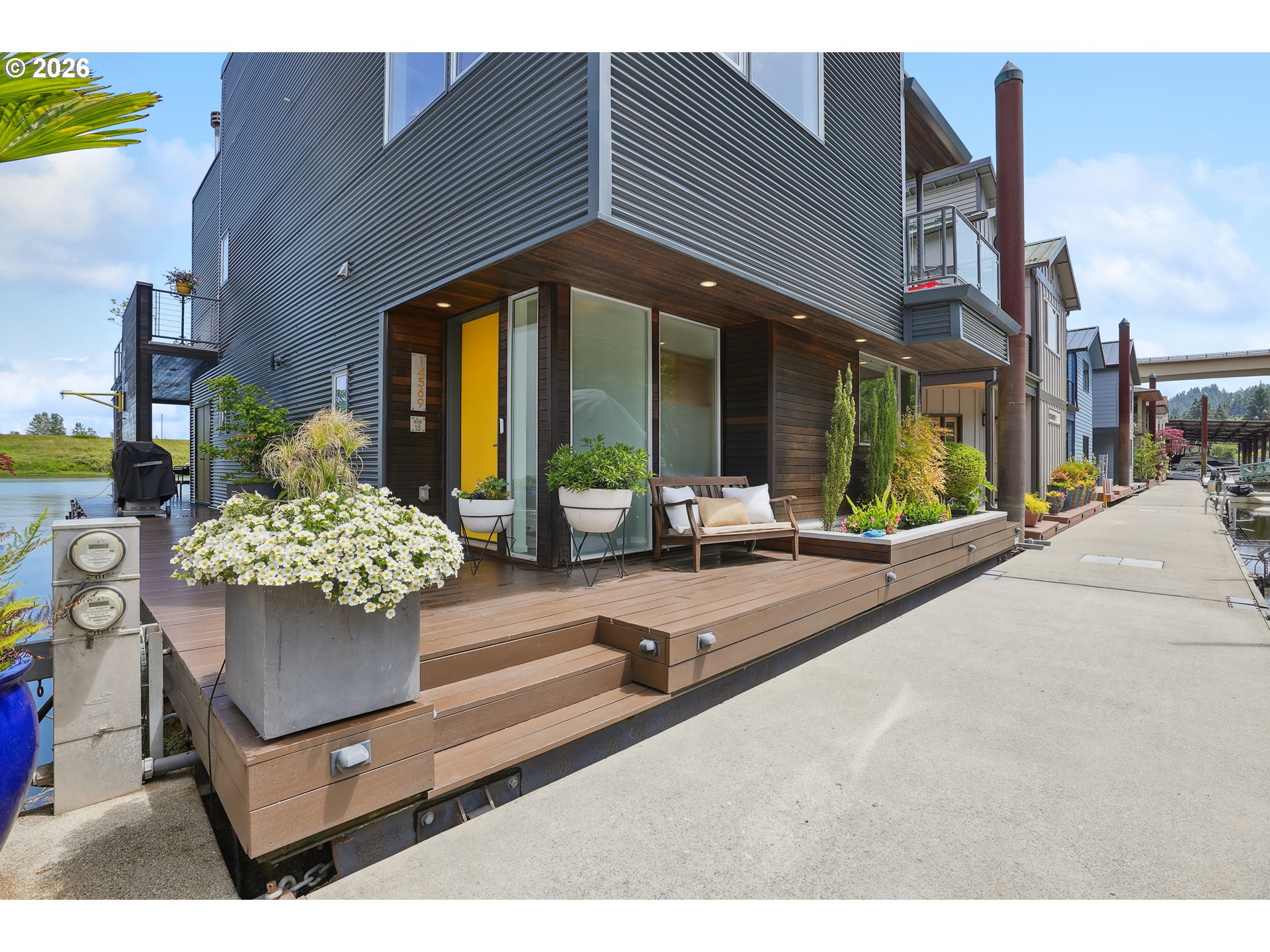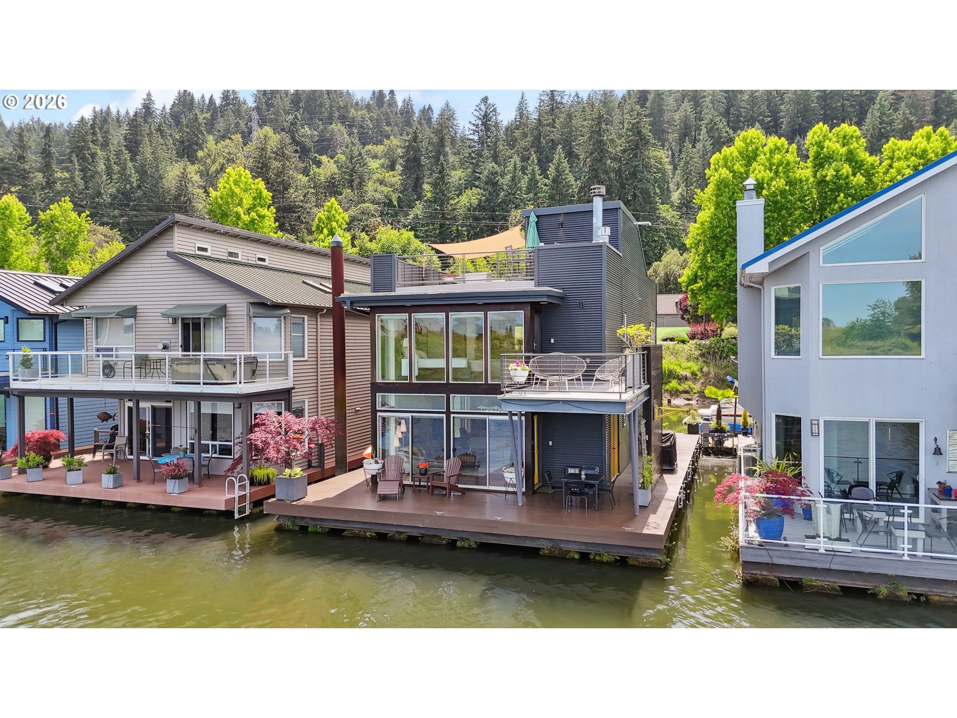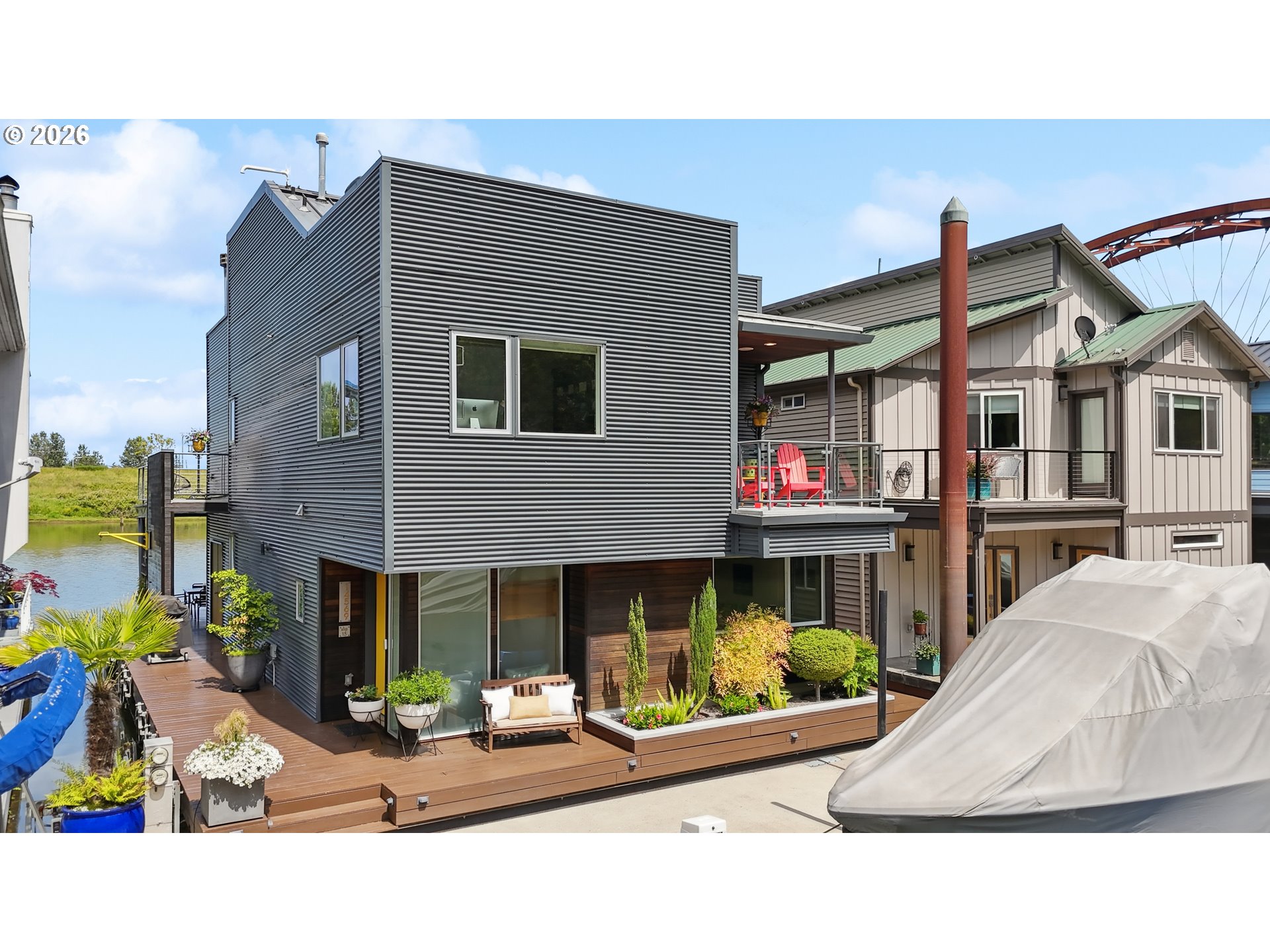 (503) 893-8874One of those floating homes that rarely comes on market, an absolute must-have with standout design, craftsmanship, and an unbeatable marina. Located at Channel Island Marina - the premier floating home moorage in the Portland area, this home is just minutes from the city, yet offers a true sense of privacy and serenity. The sale includes slip ownership, currently valued at approximately $350,000, with extremely strong potential for continued appreciation value. Slip ownership also includes a two-car garage with a finished loft, rights to both sides of the dock, and all of the surrounding upland area, all professionally maintained, along with access to a private community gym and boat storage. Featured in top design publications and built by Even Construction, this Channel Island masterpiece blends bold architecture with timeless craftsmanship. Wrapped in sleek horizontal metal siding with warm wood accents, the home features floor-to-ceiling windows that fully capture the river. Inside, enjoy a slab tile entry, oak hardwood floors, custom cherry cabinetry, and a chef’s kitchen with high-end stainless appliances and a granite island. Designed for both entertaining and everyday living, the home features bars on all three levels, multiple upper decks, and a full rooftop deck. The primary suite offers stunning river views, a fireplace, soaking tub, private deck, and access to upper decks on both sides to enjoy both sunrise and sunset every morning and evening. With 3 bedrooms, 3 full baths, and flexible living space, including a guest room with a Murphy bed, this home offers comfort and versatility. Channel Island is one of the most exclusive and sought-after floating home communities on the river, offering a level of ownership, amenities, and overall experience that is truly unmatched. Renowned for its strong sense of community, pride of ownership, and beautifully maintained setting and neighborhood, it delivers an exceptional river lifestyle minutes from the city.