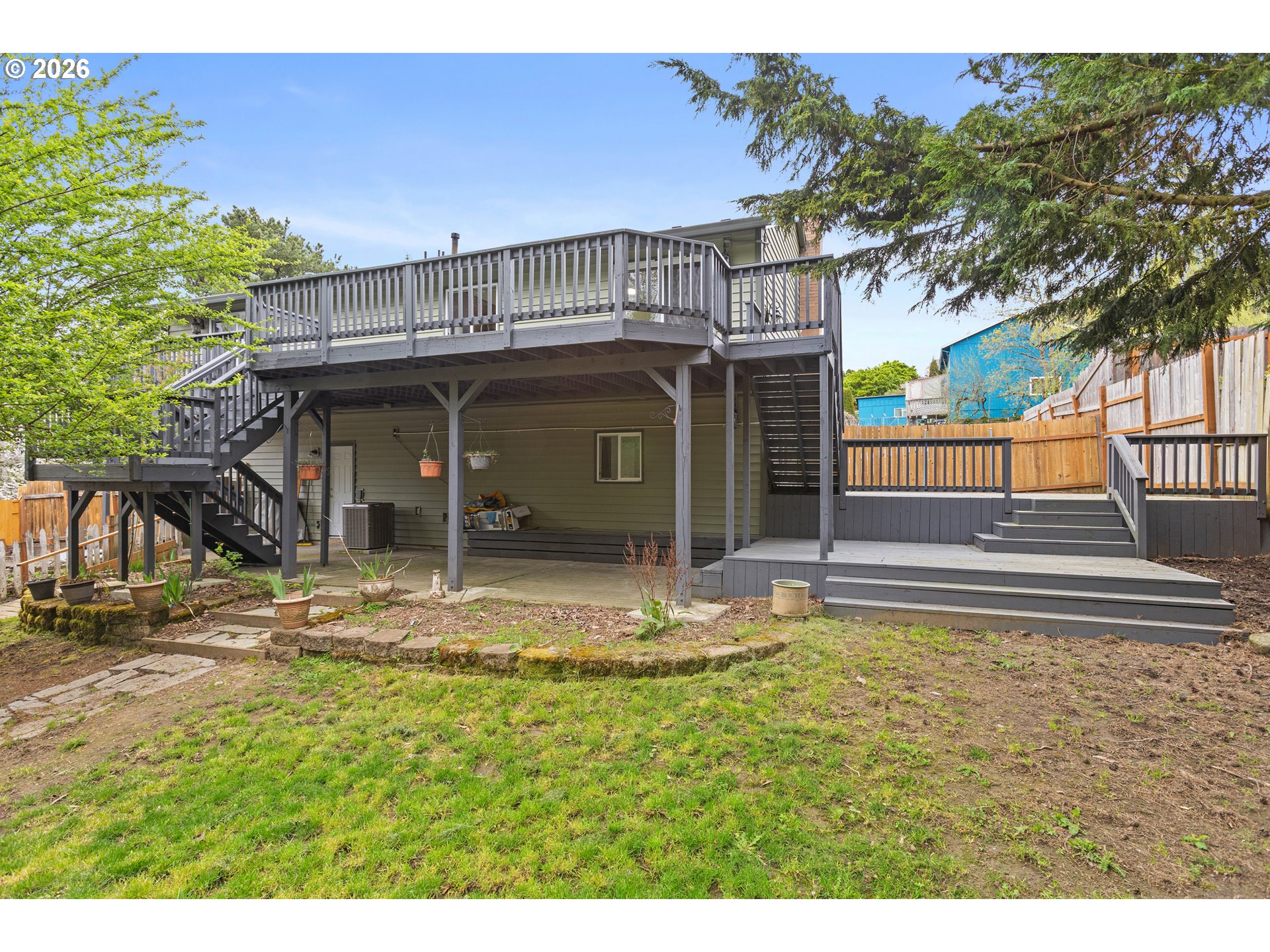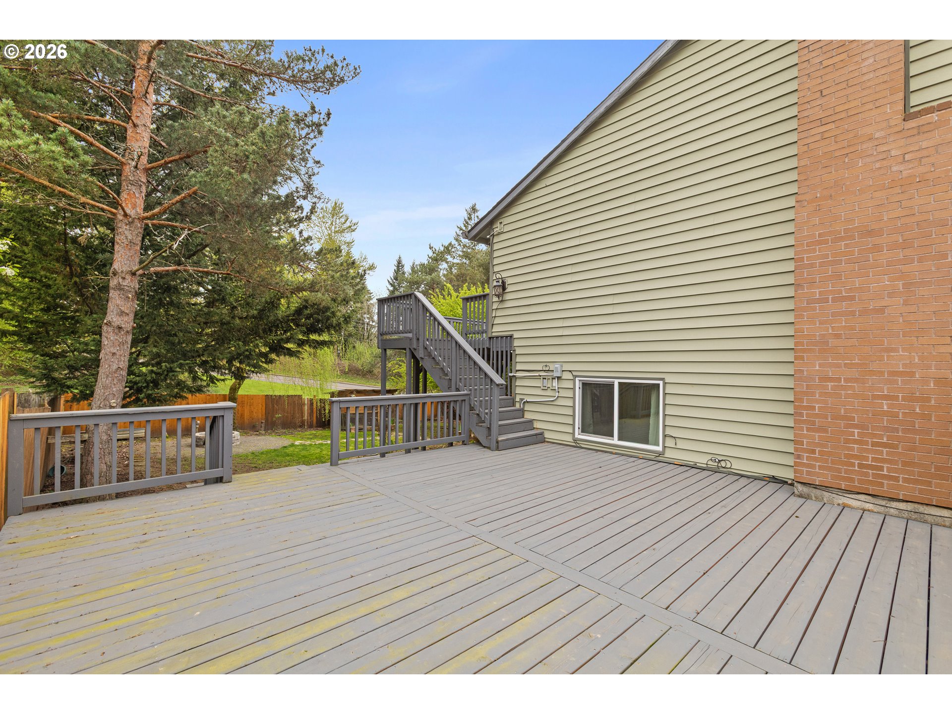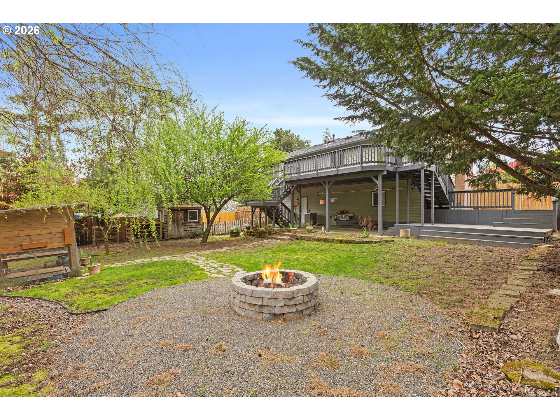 This four bedroom, three bathroom home features a flexible layout with spacious living areas on both levels, providing excellent potential for multi-generational living. Major updates include a new roof installed in February 2026 and a renovated primary suite. The interior is finished with new flooring and fresh paint accented by natural light from multiple skylights and a large bay window with seating. The exterior serves as a private retreat with two expansive decks overlooking a fully fenced backyard. The grounds are equipped for a functional outdoor lifestyle with garden beds, fruit trees, and a chicken coop. Additional outdoor features include a fire pit, a tool shed and 220 outlet at the patio. The front yard is landscaped with a full sun deck and yard. Ample space is available for parking an RV, boat, or trailer. The property is located 1.5 miles from downtown Gresham, offering quick access to Highway 26 and a 25 minute drive to PDX.