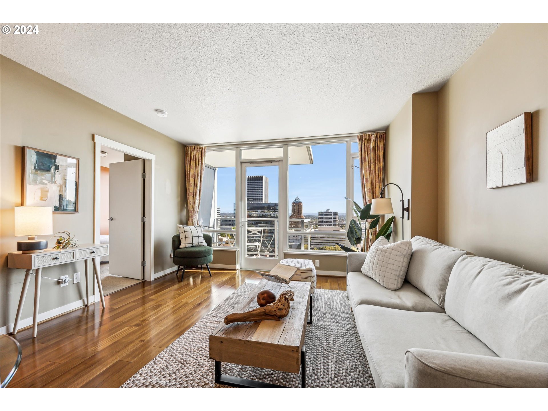 Best views in the city! Contemporary high-rise unit located within Portland's cultural district. Private east-facing terrace with exceptional 180-degree views of city, mountain range, & bridges spanning the river. Hardwood floors in interior; kitchen with granite counters & gas range. Washer & dryer inside unit. Common areas include spa, workout room, lounge, outside has patio area with gas grill & pet relief area. Deeded parking in covered, secure structure. A wonderful urban home with amazing views!