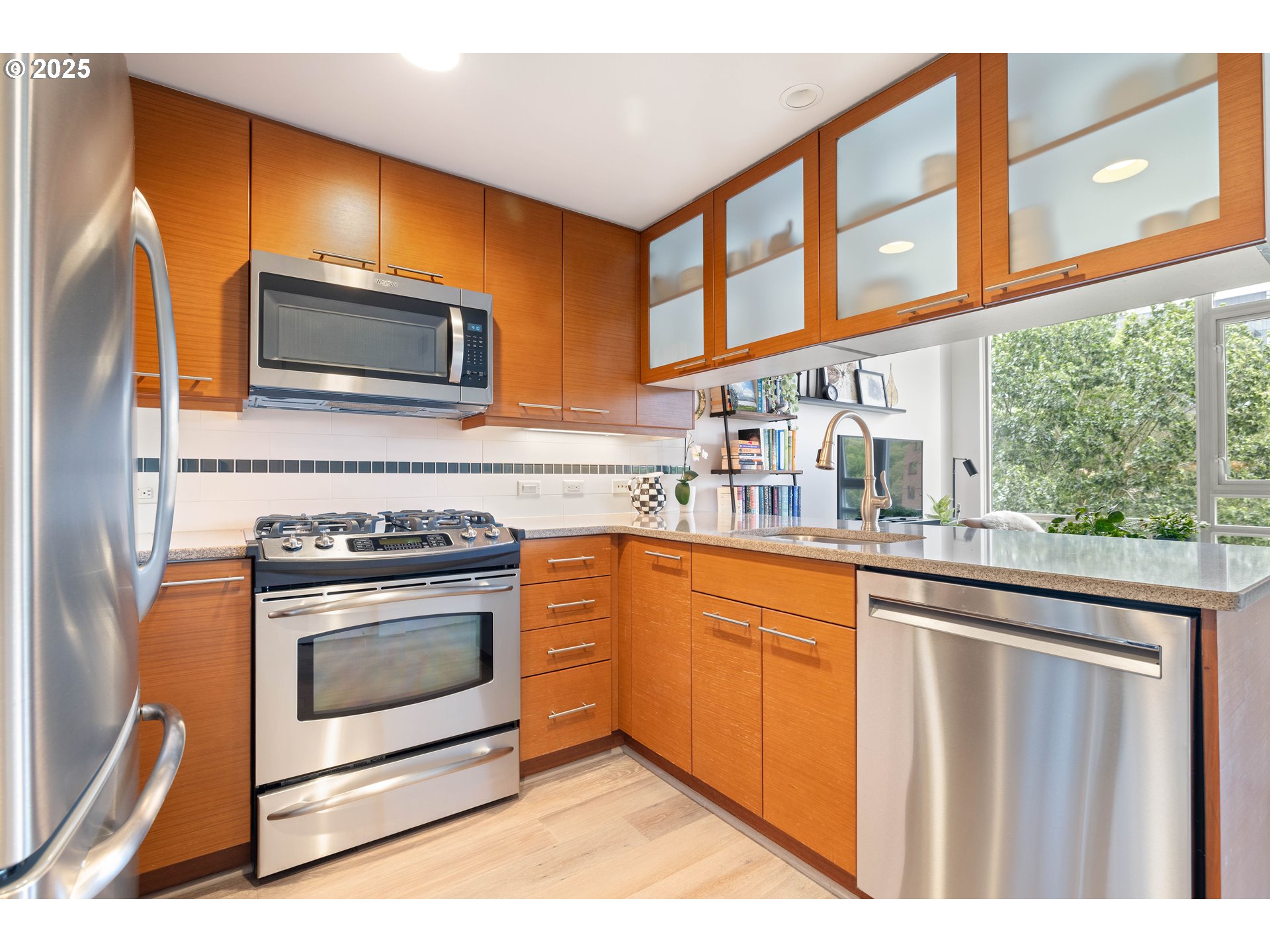 Pristine, modern & charming condo in Portland’s scenic cultural district. This 6th floor north facing home features the best of both worlds with captivating city views and lush greenery from the trees below. Efficient floor plan and thoughtfully designed spaces make for comfortable and easy living with a true one bedroom, generous kitchen, and inviting living & dining. Floor to ceiling windows frame the views and flood the home with natural light, while the spacious balcony extends the living space outdoors. Turnkey and move-in ready, this lovely home has been meticulously cared for with upgraded floors throughout, granite countertops, and crisp white paint. Home is complete with one parking space. The Benson is a luxury condominium building with a top notch HOA and amenities including a spa, gym, and large outdoor courtyard with pet area. Conveniently situated on the quite edge of Downtown in Portland’s cultural district with parks, PSU, Portland Art Museum, Farmers Market, Streetcar, restaurants and more right out your door.