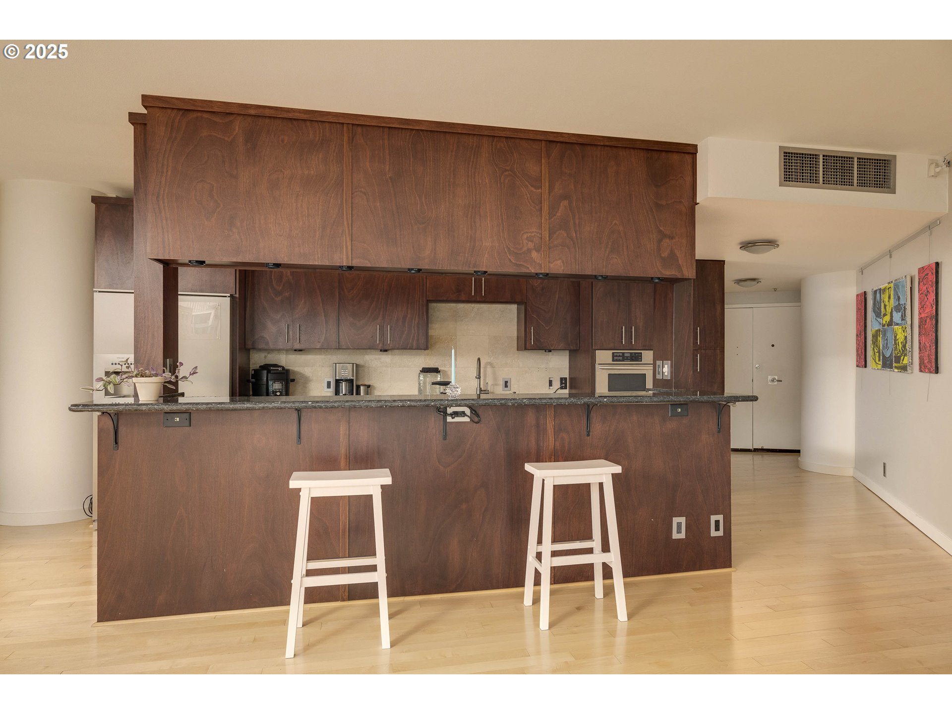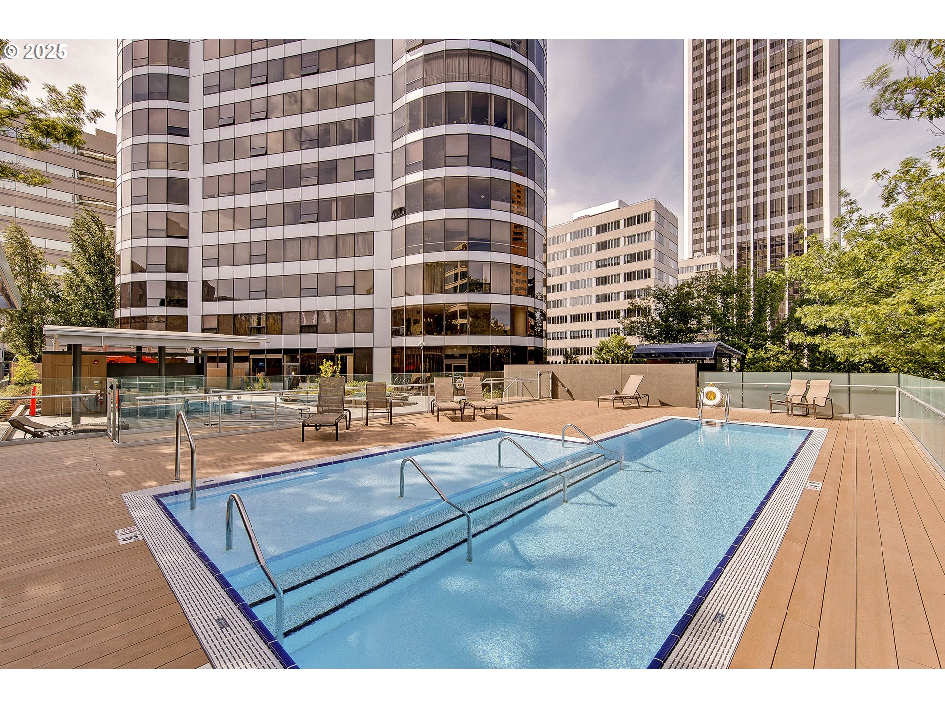 Back on market at no fault of the property! Welcome to Unit 906 at Portland Plaza, offering refined urban living in the heart of downtown. This spacious 1,319 sq. ft. condo features 2 bedrooms and 2 updated bathrooms with a thoughtful, open layout ideal for both everyday living and entertaining. The open kitchen includes granite countertops, stainless steel appliances, dedicated wine storage, and a breakfast bar, flowing seamlessly into a light-filled living area with city views. Both bathrooms have been tastefully updated with modern tile finishes, and the primary bath features dual vanities. The primary bedroom includes custom-built closet shelving for optimal organization. Portland Plaza spans a full city block and offers 24-hour concierge and security, a modern lobby, gym, library, meeting room, and exceptional outdoor amenities including a heated saltwater pool, BBQ areas, fire pit, glass pergolas, water features, herb and flower gardens, and private seating areas. HOA includes deeded parking, building insurance, water, sewer, garbage, recycling, window washing, secure storage, professional management, and maintenance. Rentals allowed with 30-day minimum. Ideal as a primary residence, second home, student housing option, or investment. Exceptional space, amenities, and location—schedule your showing today!