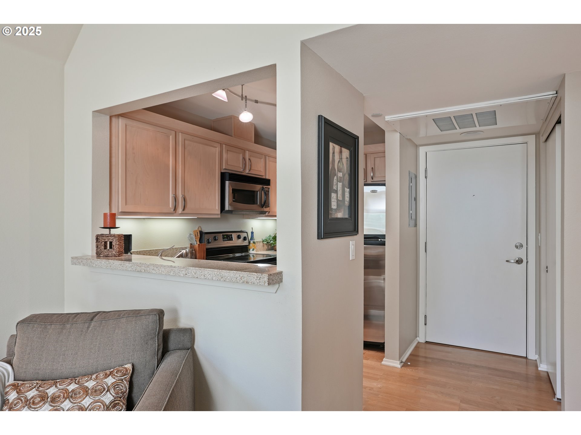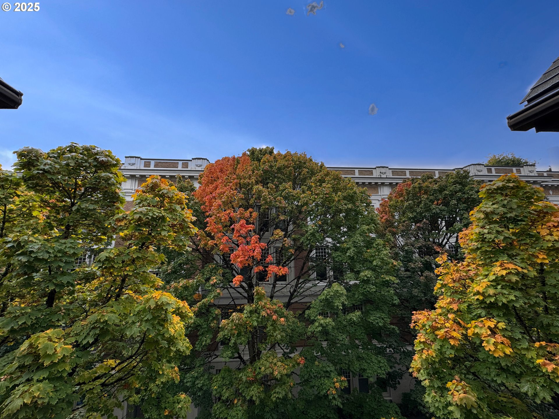Special and rare top floor light-filled unit at University Park Condominiums. South facing 5th floor 1-bdrm condo has wood-burning fireplace, cathedral ceilings, new sound proof windows, and new HVAC. This unit is pristine as owners are original and unit has been a lightly used second residence. Excellent floorplan for this 1-bdrm at University Park with views overlooking historic Lincoln Hall and toward the South Park Blocks. Condo has plenty of interior storage, washer/dryer, and comes with 1 deeded parking space. Unit can be sold furnished. University Park Condominiums is located in downtown Portland's Cultural District on the Park Blocks. Walk to Portland Farmer's Market, Portland Art Museum, Portland State University, Streetcar, MAX, theaters, food carts, restaurants, supermarkets, shops.