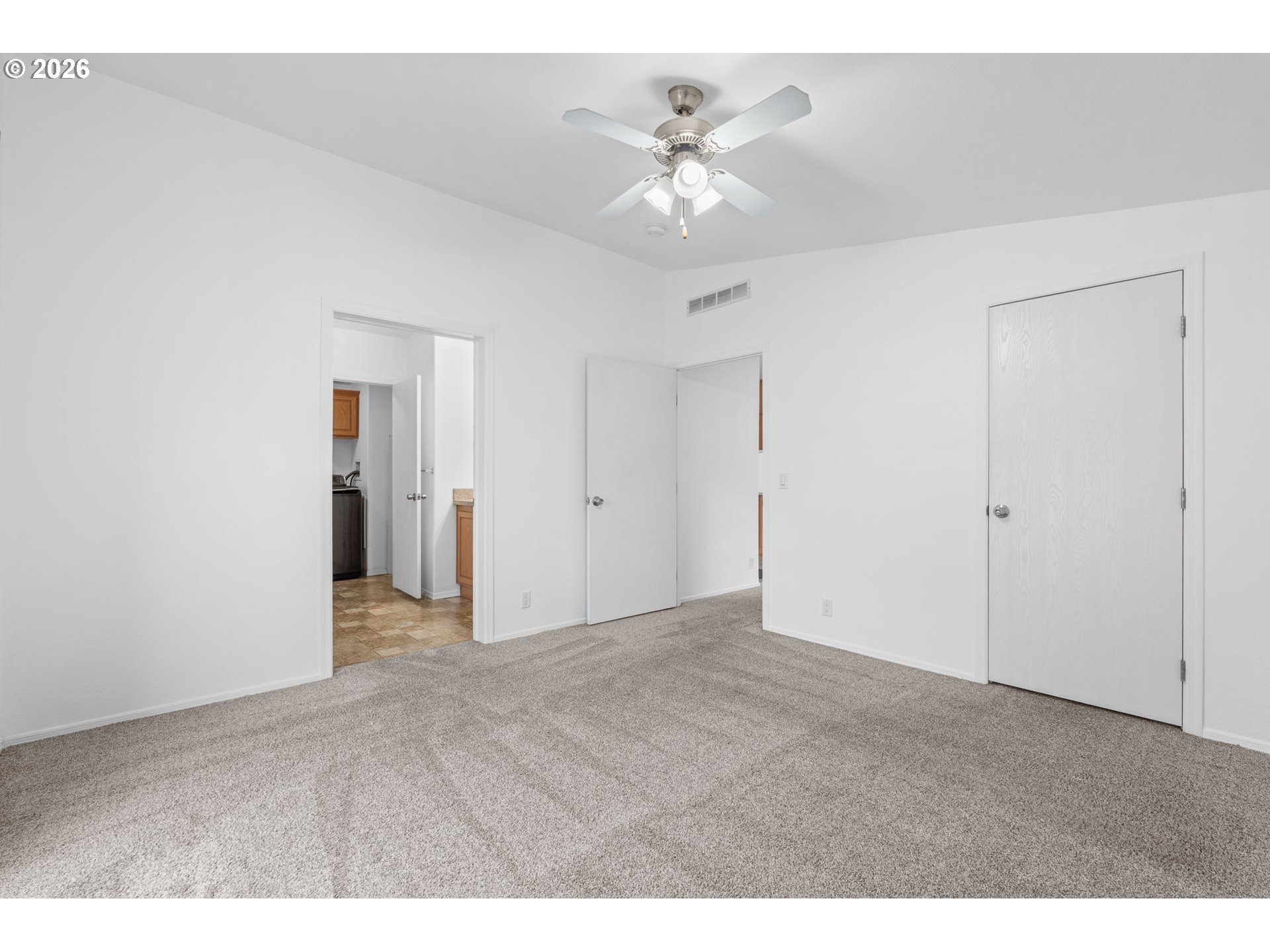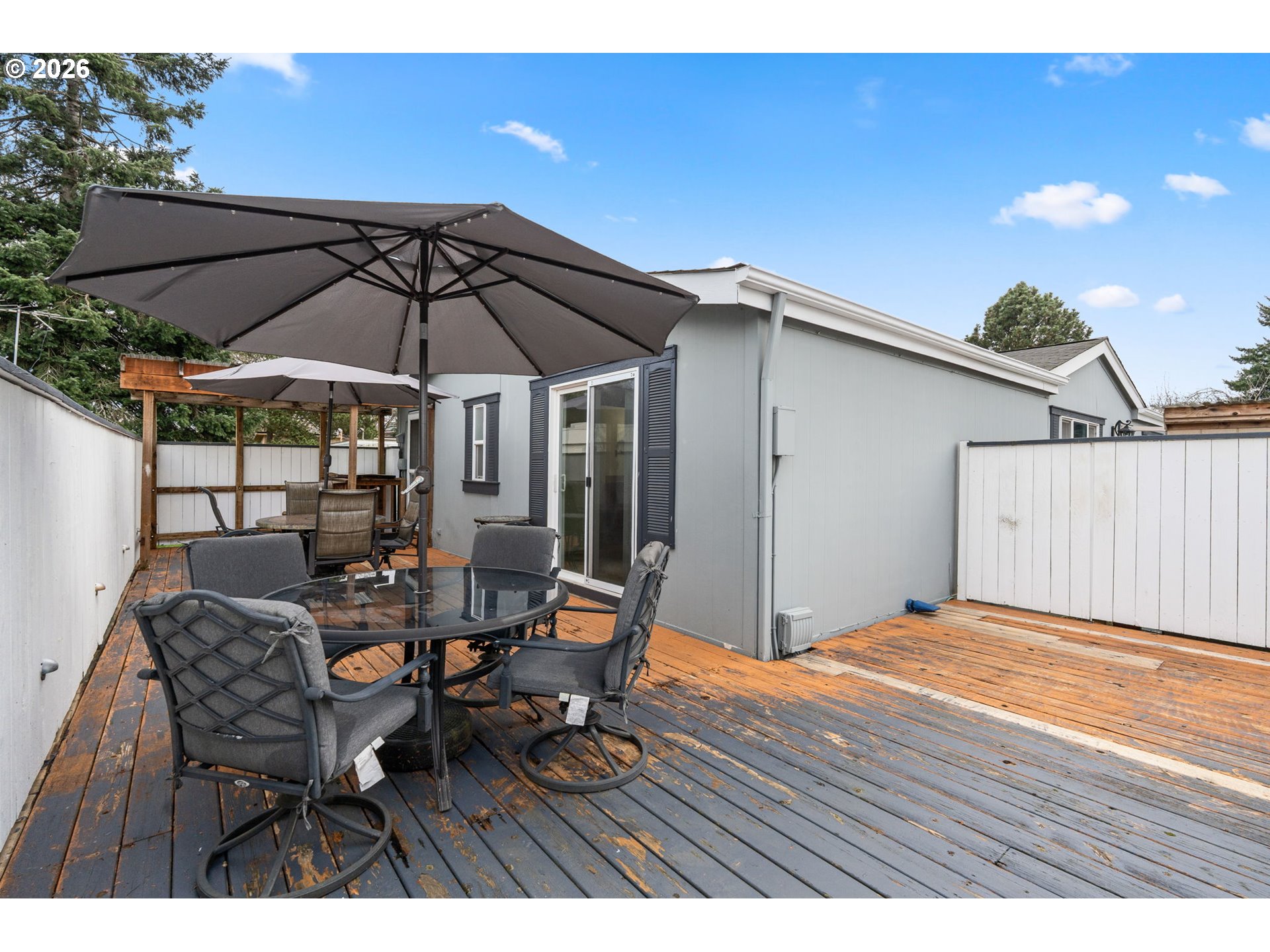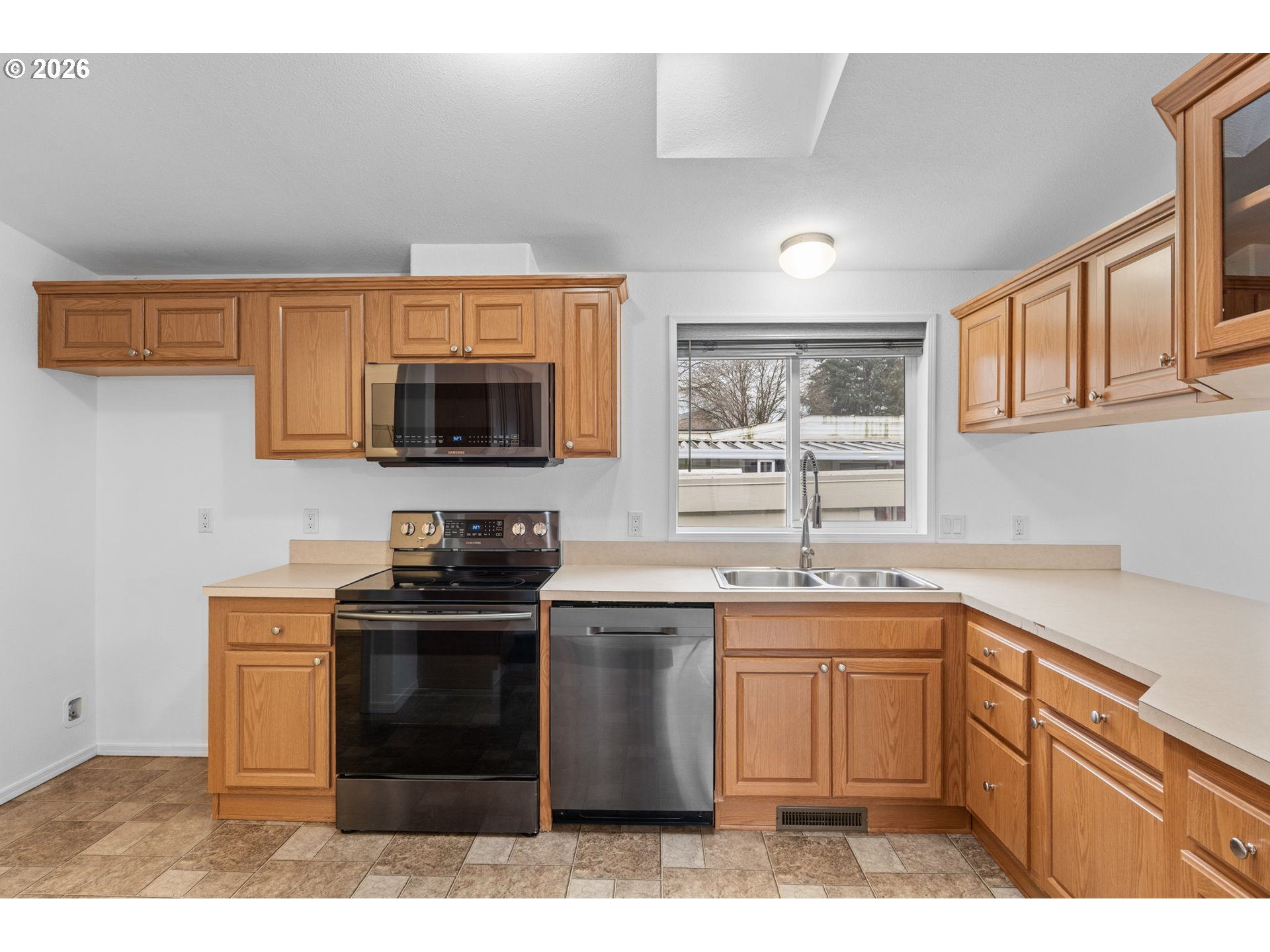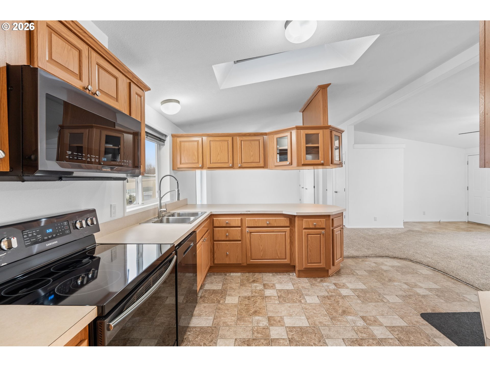 Immaculate 3-bedroom home in desirable Jantzen Beach community. Vaulted ceilings create a bright, open feel throughout. The spacious kitchen features abundant cabinetry, a dining area, a skylight for natural light, an eating bar, and an open-concept design. All appliances are included: washer, dryer, built-in dishwasher, disposal, and range.The primary suite offers an attached bath with a large walk-in shower and a sliding door to a private deck with privacy fencing. The laundry room, conveniently located off the primary bath, adds ease and functionality. Two additional generously sized bedrooms feature walk-in closets. Open living room with a ceiling fan.A newer heat pump provides efficient heating and central air conditioning.Carport parking, a storage unit, and outdoor space are included. The home is clean and very well maintained.Community amenities include swimming pools, recreation facilities, a meeting room, and security. Riverfront walking paths are just steps away. Enjoy convenient access to Jantzen Beach Shopping Center (Target, Home Depot, Best Buy) and a quick commute to The Vancouver Waterfront dining and parks.Low space rent. Great opportunity in a prime island location.