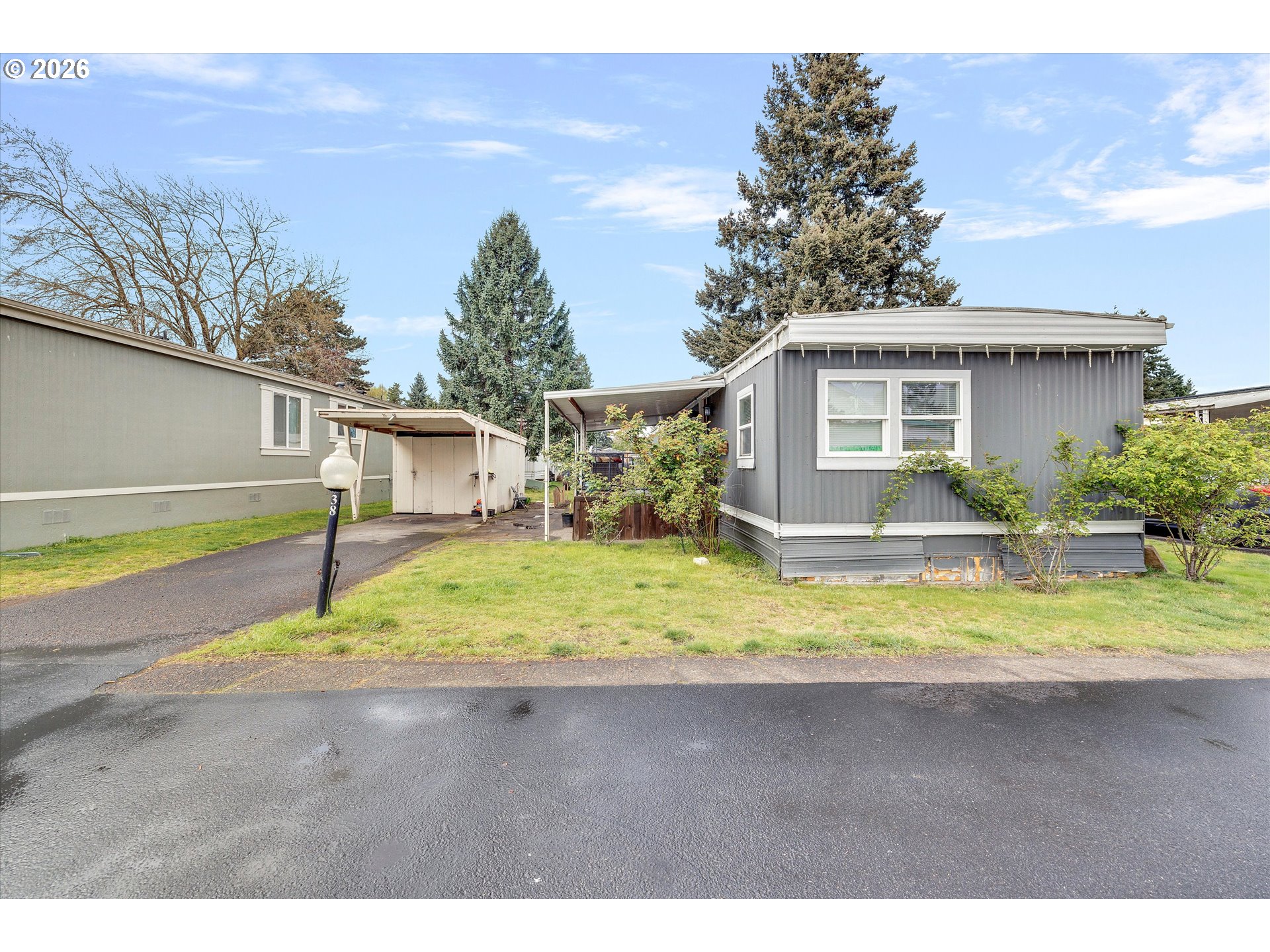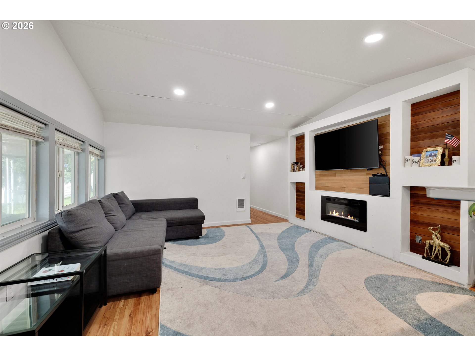 Located in the prestigious Hayden Island mobile home park community, this 2 bed, 1 bath, 824sqft home is ready for a new owner. This cozy home offers a spacious living room area with custom tv entertainment wall w/fireplace, open kitchen with breakfast bar, large bedrooms and a full bath. Outside you have plenty of yard space and a storage shed. Community includes walking trail along the river, community room, 2 pools and more. Space rent is $828/month.