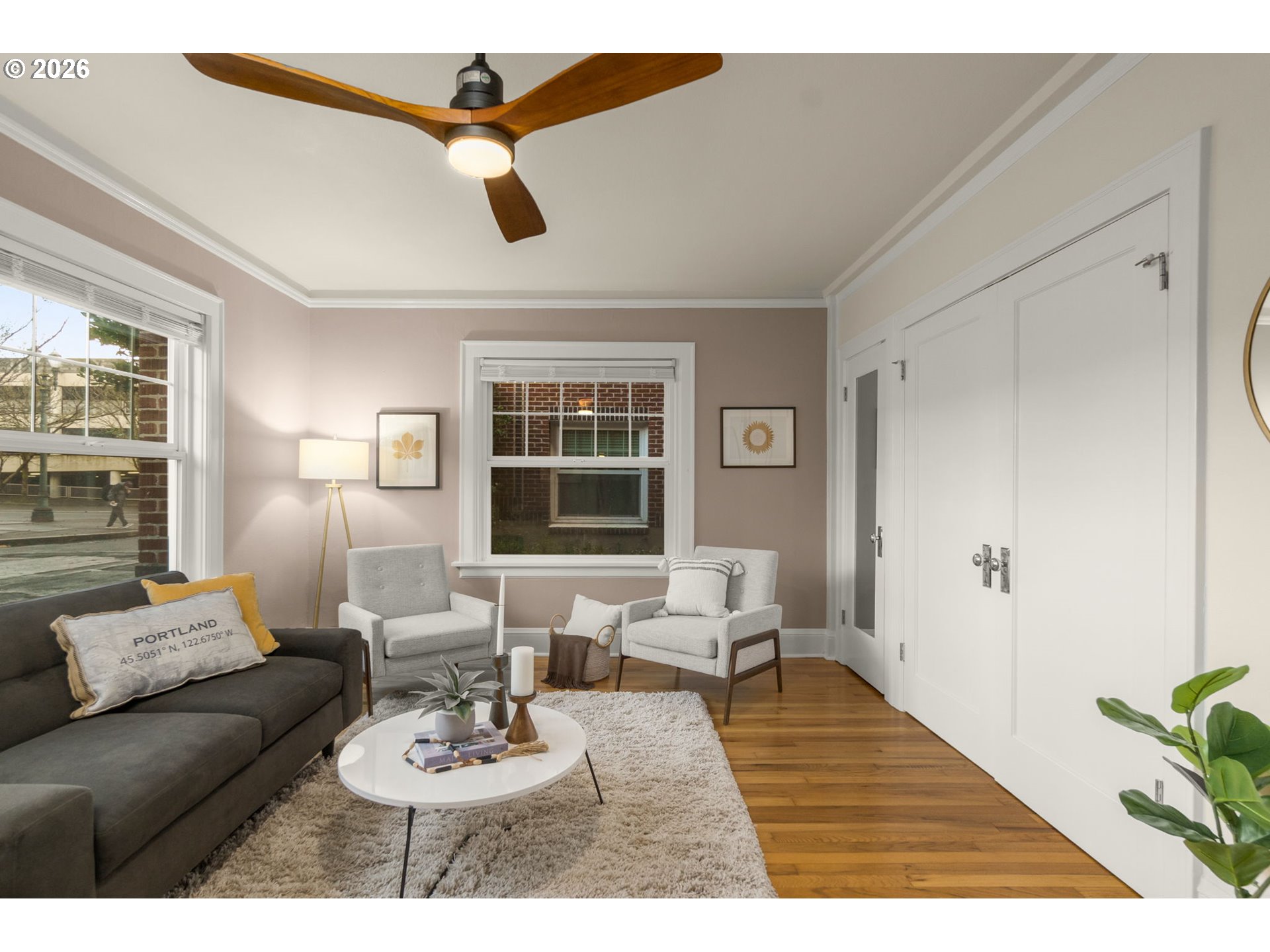 Charming studio condo in the well-maintained Lloyd Park Condominiums—an iconic 1920s brick building in the heart of the Lloyd District. This main-floor home offers an inviting living room with space for a full-size bed, a dedicated dining area, and wood floors throughout. Enjoy a remodeled kitchen and remodeled bathroom, plus the convenience of an in-unit washer/dryer and a walk-in closet. Includes a large private storage unit in the basement. Secure building and an ideal opportunity to become a homeowner for about the same cost as renting—perfectly positioned near the exciting Lloyd Center redevelopment, parks, transit, and everyday amenities.Download the Lloyd Center Redevelopment details. Open Saturday & Sunday from 11-1 pm.