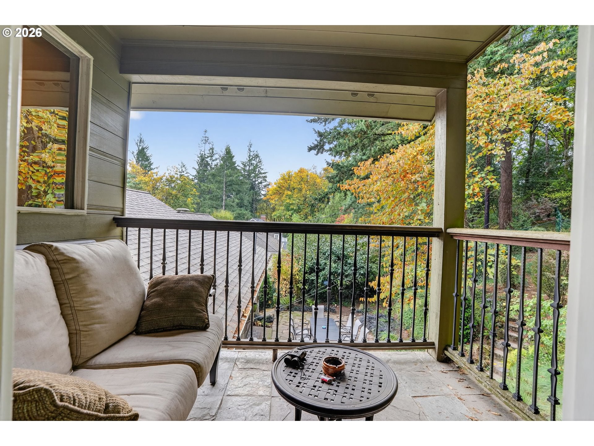 Private West Hills retreat just minutes from downtown and the Nike/Tech corridor! Light and bright with hardwood floors, a beautifully refreshed kitchen featuring stainless steel appliances, and an inviting layout that balances comfort and function. The home offers a flexible split floor plan with the original primary suite on the main and a stunning upper-level addition that includes a spacious secondary suite with a spa-inspired bath, generous living area, and home office. Enjoy exceptional outdoor living with four balconies, decks, and patios plus a covered front porch with a fireplace, all overlooking a spacious yard in a private, forest-like setting. Enjoy peaceful surroundings with mature landscaping, new outdoor lighting, and an upgraded sprinkler system that enhances the private, forest-like setting. Feels like living in the mountains, yet close to everything - only 10 minutes to downtown SW or NW Portland. Steps from Washington Park trails and the zoo, this quiet, spacious home combines nature, privacy, and convenience in one exceptional location. [Home Energy Score = 2. HES Report at https://rpt.greenbuildingregistry.com/hes/OR10131427]