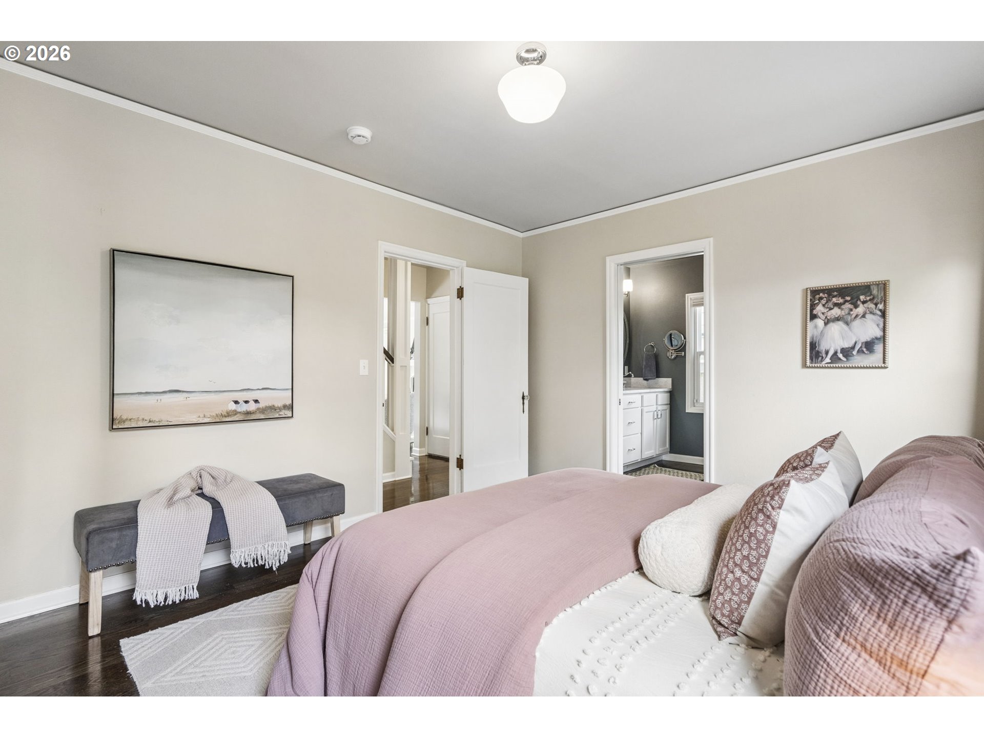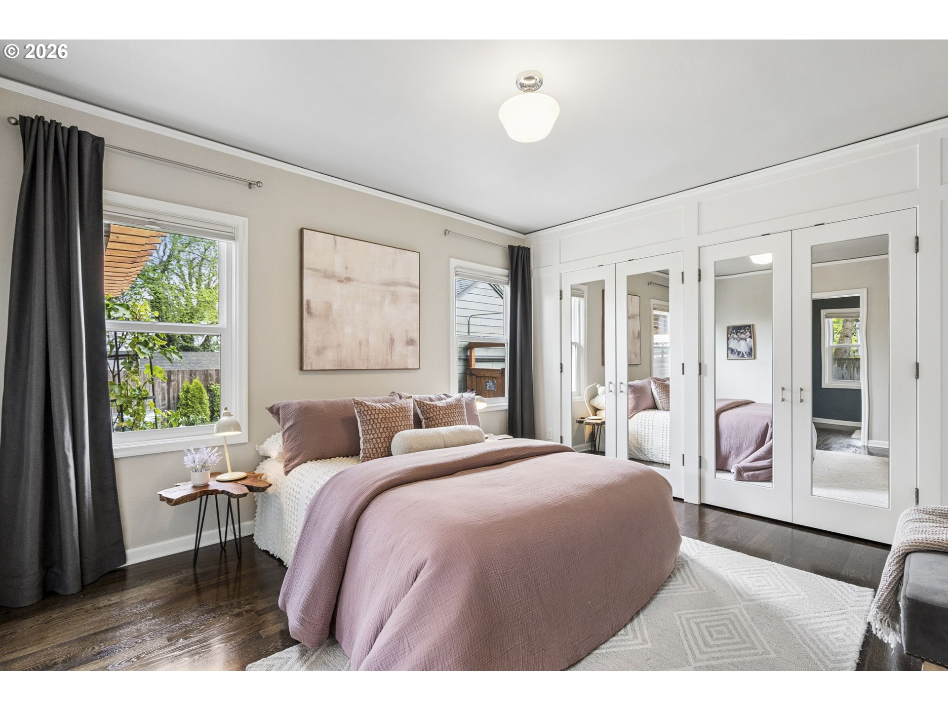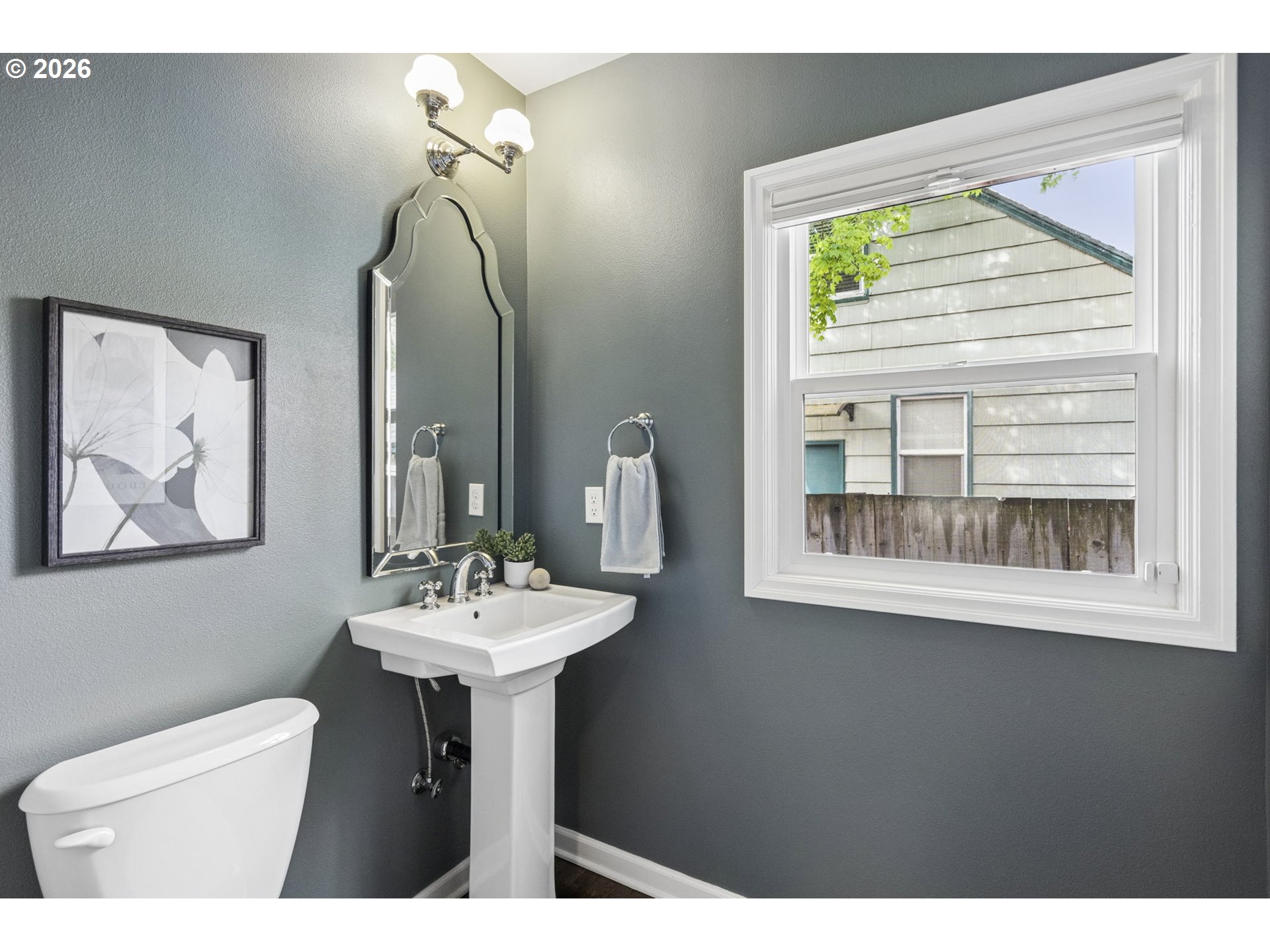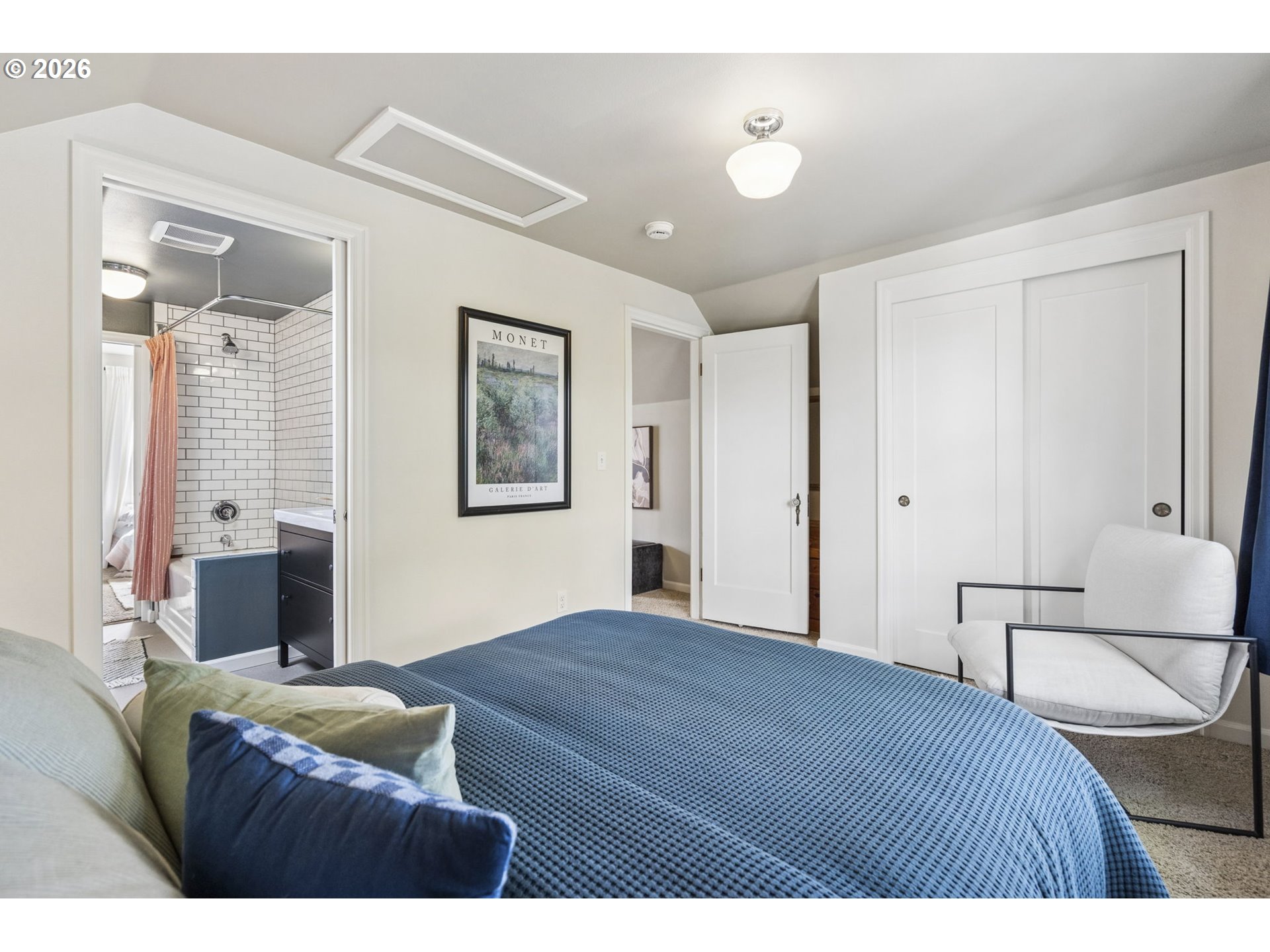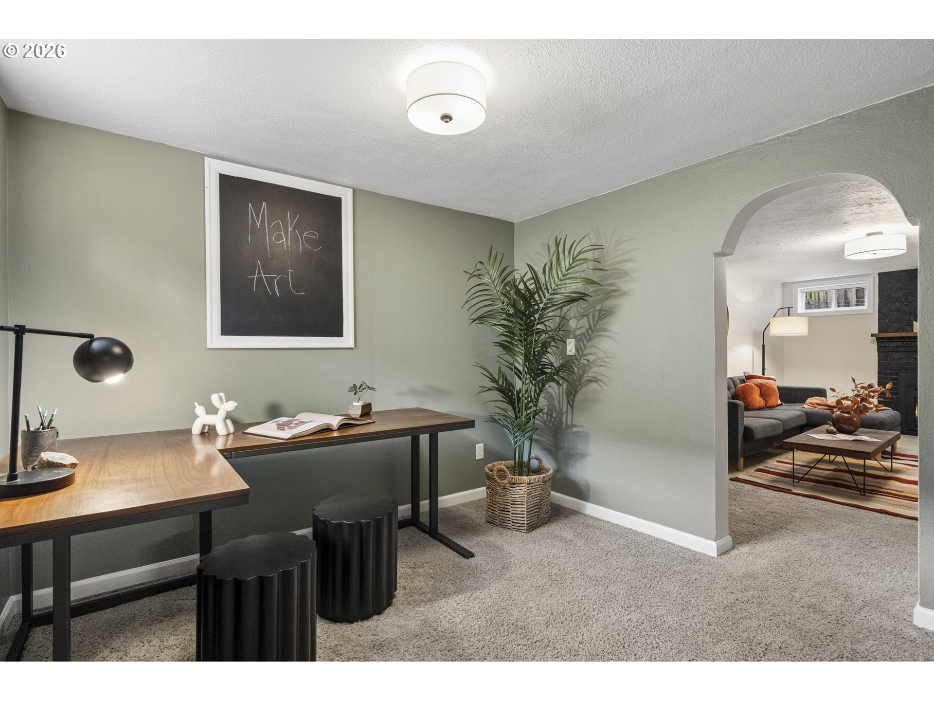 Storybook Tudor where charm meets modern livability. Fantastic layout with accessible, luxurious main floor primary suite. Three bedrooms plus den makes this closer to a four bedroom home. The entryway with closet welcomes you to the spacious, south-facing main living area with a wood burning fireplace, through to the sweet dining room, updated kitchen, mudroom, and powder room. Upstairs are two bedrooms with a full bath. The high-ceilinged basement has a family room with a gas fireplace, den/office, and a large utility room big enough for a home gym or workshop. The private backyard was lovingly maintained by a master gardener and has space to play, grow food, or relax and enjoy your garden’s bounty on the covered patio. The blueberry bushes delivered a pint of berries a day for three weeks last June. This home was fastidiously maintained by the previous two owners: the included house book has every invoice since 2020 - marvel at it in person when you tour. Features include: Schoolhouse lighting, two car garage, new siding, new exterior and interior paint, earthquake retrofit, 200 amp panel, rebuilt fireplaces, french drain, and central air conditioning. Your private oasis just steps from Alberta St, Concordia and downtown Woodlawn.