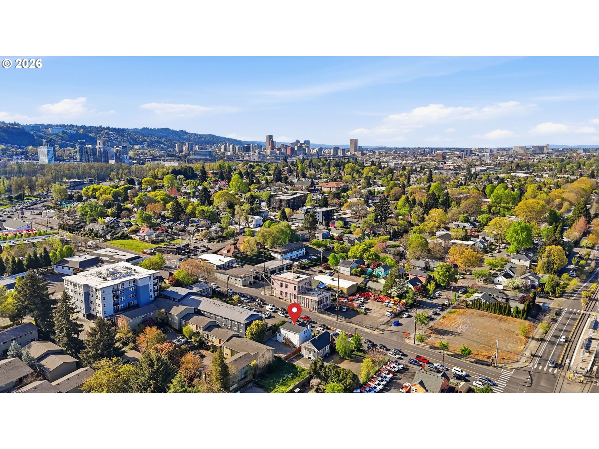 Exceptional mixed-use opportunity offering flexibility for commercial use, live/work, or rental income in one of Portland’s most vibrant neighborhoods. The main level features a covered front porch, a bright open layout, new flooring throughout, a welcoming fireplace, a room/office and custom built-ins creating a functional and inviting space. The fully remodeled kitchen is appointed with white cabinetry, quartz countertops, stainless steel appliances, and a convenient half bath down the hall .The lower level includes a partially finished basement, ideal for storage, workspace, or utility. Upstairs, is a thoughtfully renovated two-bedroom, one-bath that provides excellent versatility—perfect as a rental, private office suites, or extended living space while your business is downstairs. With both interior and separate exterior access, the layout supports a variety of configurations to suit your needs. Finishes include quartz countertops, stainless steel appliances, white cabinetry, a beautifully updated bathroom, and new paint and flooring throughout. Additional highlights include dedicated parking spaces behind the house, newer vinyl windows, roof, furnace and air conditioning for the basement and main level, and recent exterior paint. Ideally located in Portland’s sought-after Brooklyn neighborhood, this property is just moments from popular cafes, bars, and restaurants, and only one block from the MAX Orange Line, with convenient access to bus lines—making it highly accessible for both residential and commercial use. Message realtor for the video walk through.