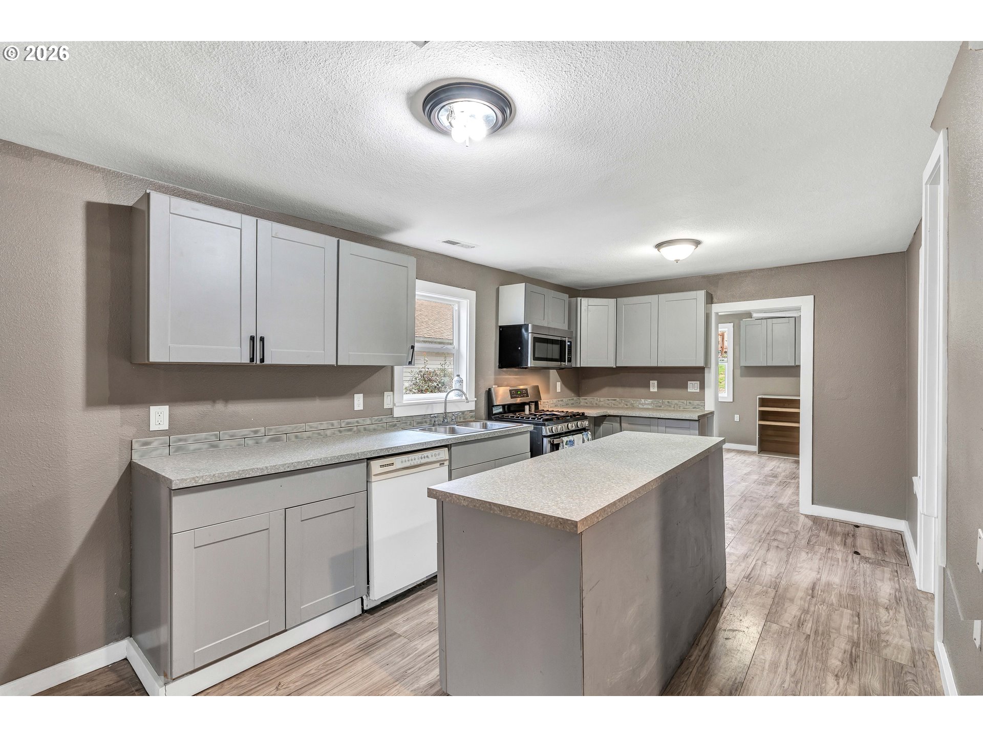 Charming and newly remodeled single-level home just blocks from Glendoveer Golf & Tennis! This cozy 2-bedroom, 1-bath home sits on an oversized .28-acre lot that has been fully cleared and is ready for your vision—garden, shop, or outdoor entertaining.Inside, enjoy all-new laminate flooring and a bright open-concept living and dining area that feels surprisingly spacious. The updated kitchen shines with generous cabinetry, a large island, double sinks, and gas appliances—perfect for everyday cooking and hosting. A convenient utility room on the main level adds functionality.Outside, the fully fenced yard offers a huge backyard with endless possibilities and plenty of room to expand your outdoor lifestyle. With its fresh remodel, large lot, and prime location near parks, golf, and trails, this move-in ready home is a rare find with room to grow.