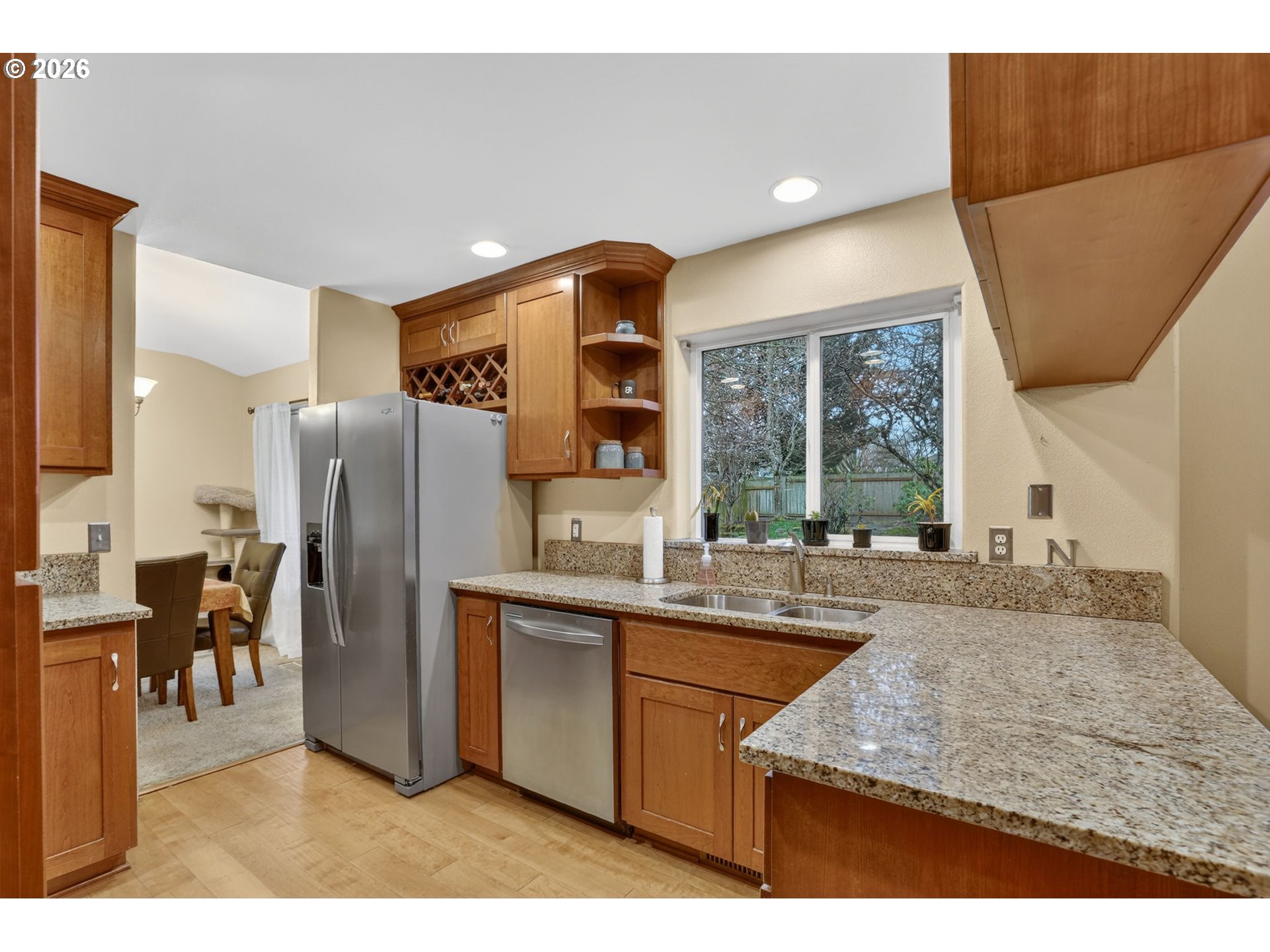 Enjoy breathtaking views of the Columbia River, stunning sunsets, and Washington State from this beautifully updated 1686 sq ft Troutdale home! Thoughtfully refreshed and move-in ready, this property offers the perfect blend of comfort, style, and scenery. The spacious primary suite features an updated ensuite with new toilet, two new faucets, new sinks and new flooring adding modern finishes. Two additional bedrooms and a well-appointed family hall bath provide flexibility for guests, home office space or family. The main level welcomes you with warm wood flooring that flows through the entry into the formal living and dining rooms. The refreshed kitchen offering updated stainless steel appliances and opens seamlessly to a cozy and inviting family room complete with a fireplace and surround sound system. Step outside to the covered back deck where you can relax, entertain and listen to your favorite music outside compliments of Bose speaker while enjoying professionally landscaped grounds with mature trees offering beauty and privacy. The three car garage is extra spacious and handy for all your hobbies, cars or storage. Four zone sprinkler system, New roof 2023, Primary bathroom updated 2026, Downstairs bathroom updated in 2023, Family hall bath updated 2023.