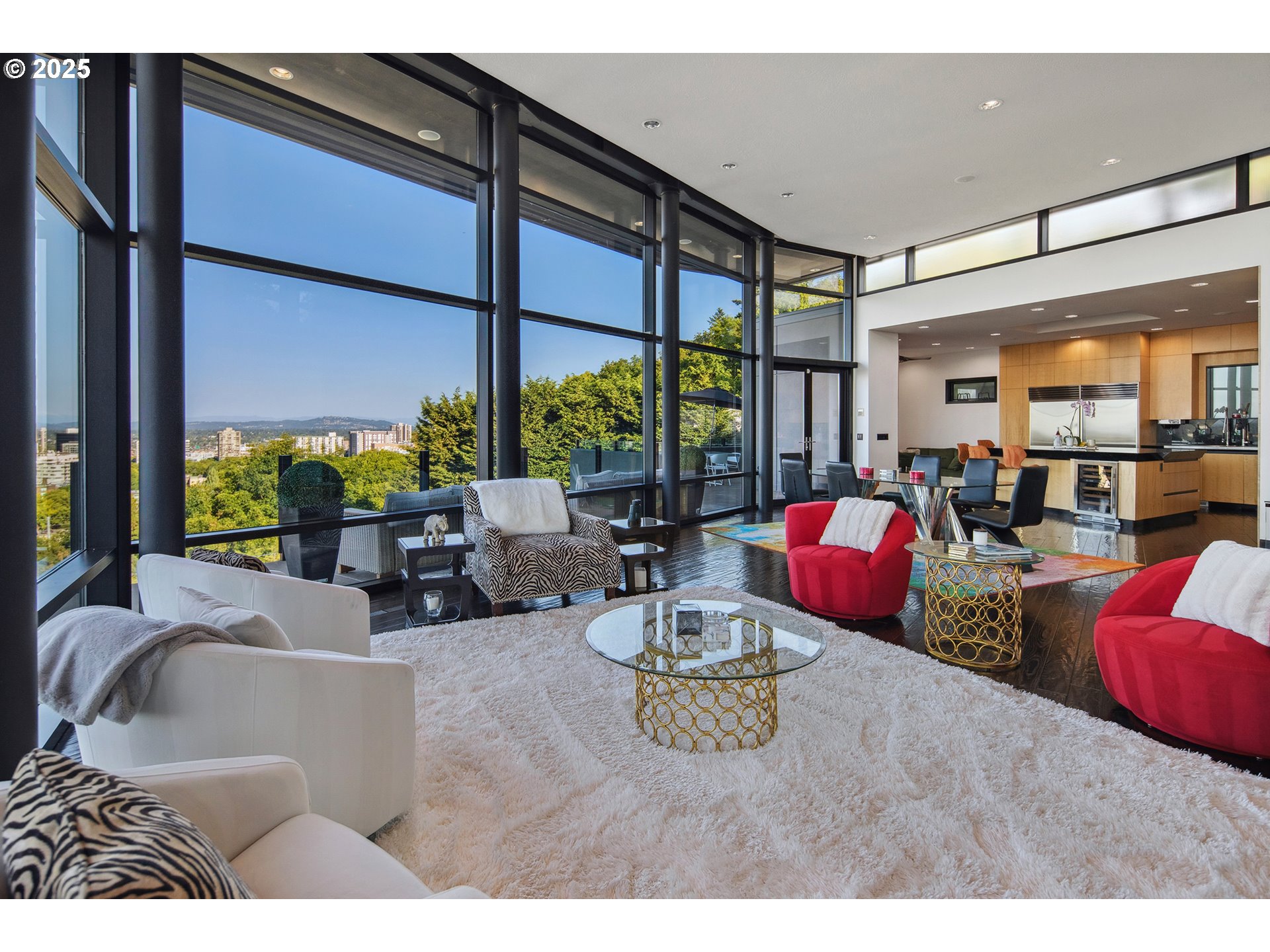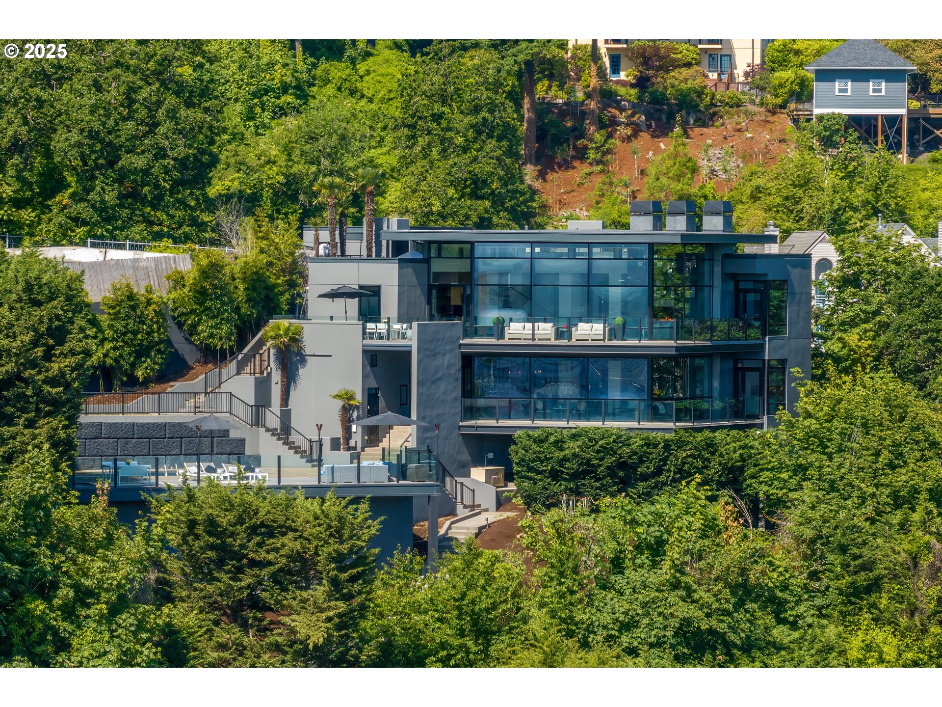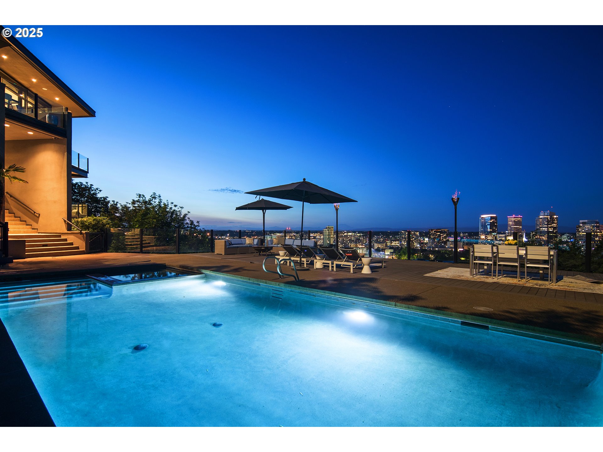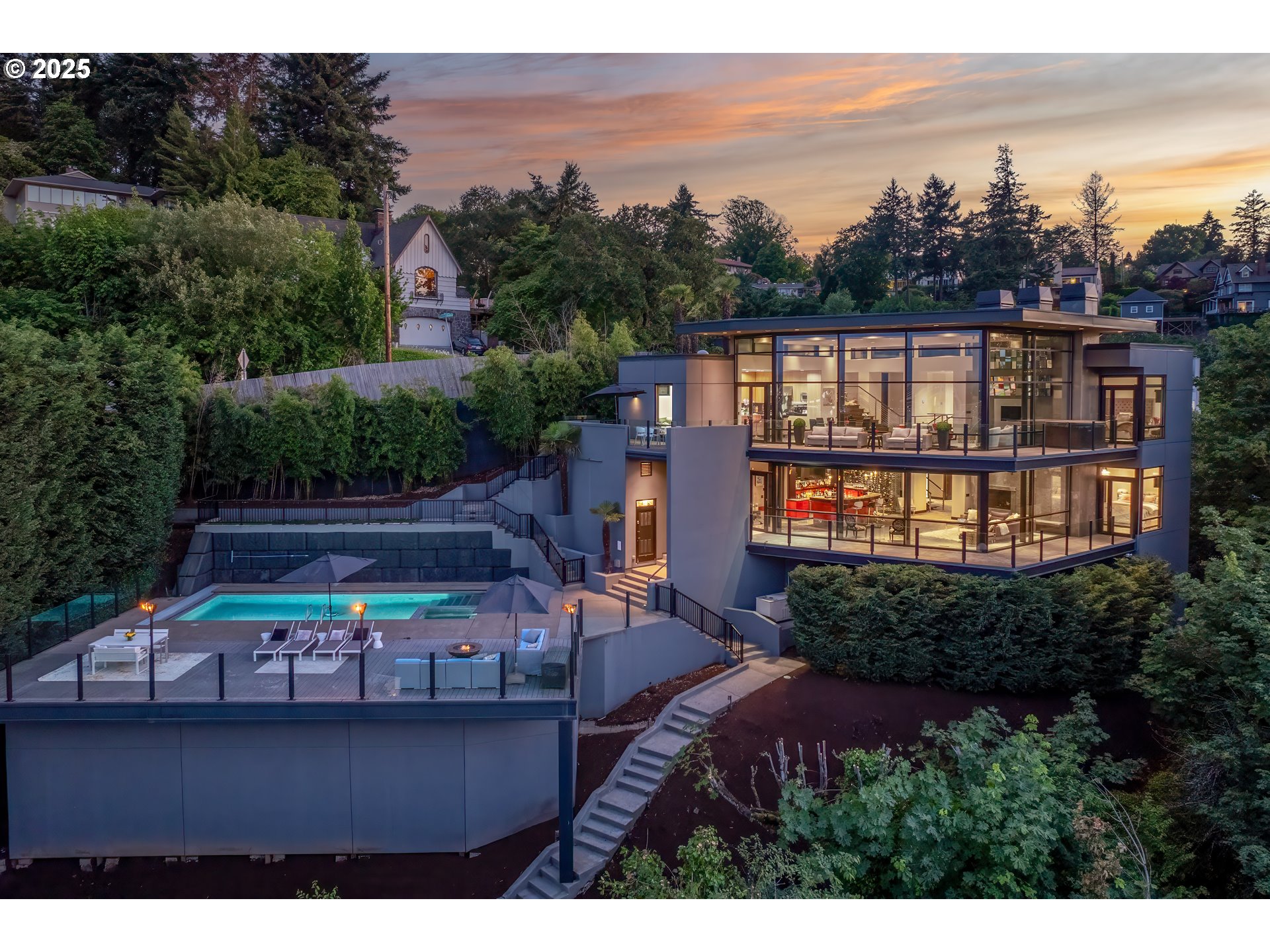 (503) 893-8874Perched high above the city in Portland’s prestigious West Hills, this striking modern masterpiece captures breathtaking 180-degree views that stretch from the snow-capped peak of Mt. Hood to the shimmering towers of downtown. A private gated drive leads to this architecturally bold glass-and-steel residence, where sleek lines and organic materials create an appealing blend of drama and warmth. Inside, soaring ceilings and walls of floor-to-ceiling windows flood the open-concept great room with natural light, framing the city and 4 mountain vistas like ever-changing artwork. Designed for both grand entertaining and quiet retreat, the home features multiple view-facing balconies, a resort-style pool with built-in spa, and an expansive lower level with full bar, glass-enclosed wine cellar, and stadium-style media room. The chef’s kitchen is a showpiece, outfitted with Viking and Sub-Zero appliances, a built-in coffee system, and double islands for effortless hosting. The main-level primary suite offers a luxurious escape with a private fireplace, soaking tub, and spa-like bath, all with unobstructed views. Additional highlights include a richly paneled home office, mirrored home gym, steam room, and a fully lit sport court tucked into the tree-lined grounds. Minutes from downtown and just steps to Portland’s iconic parks and gardens, this is a rare opportunity to own one of the city’s most spectacular view properties—an inspired retreat that elevates every moment.