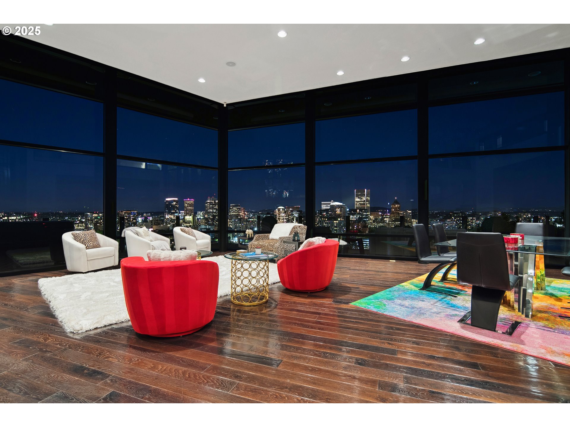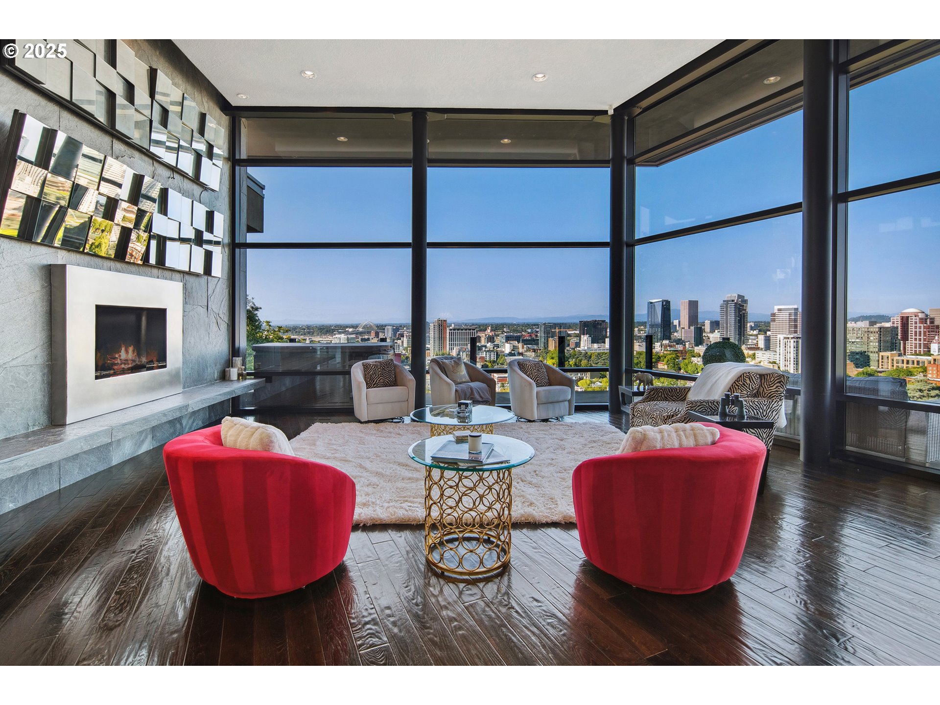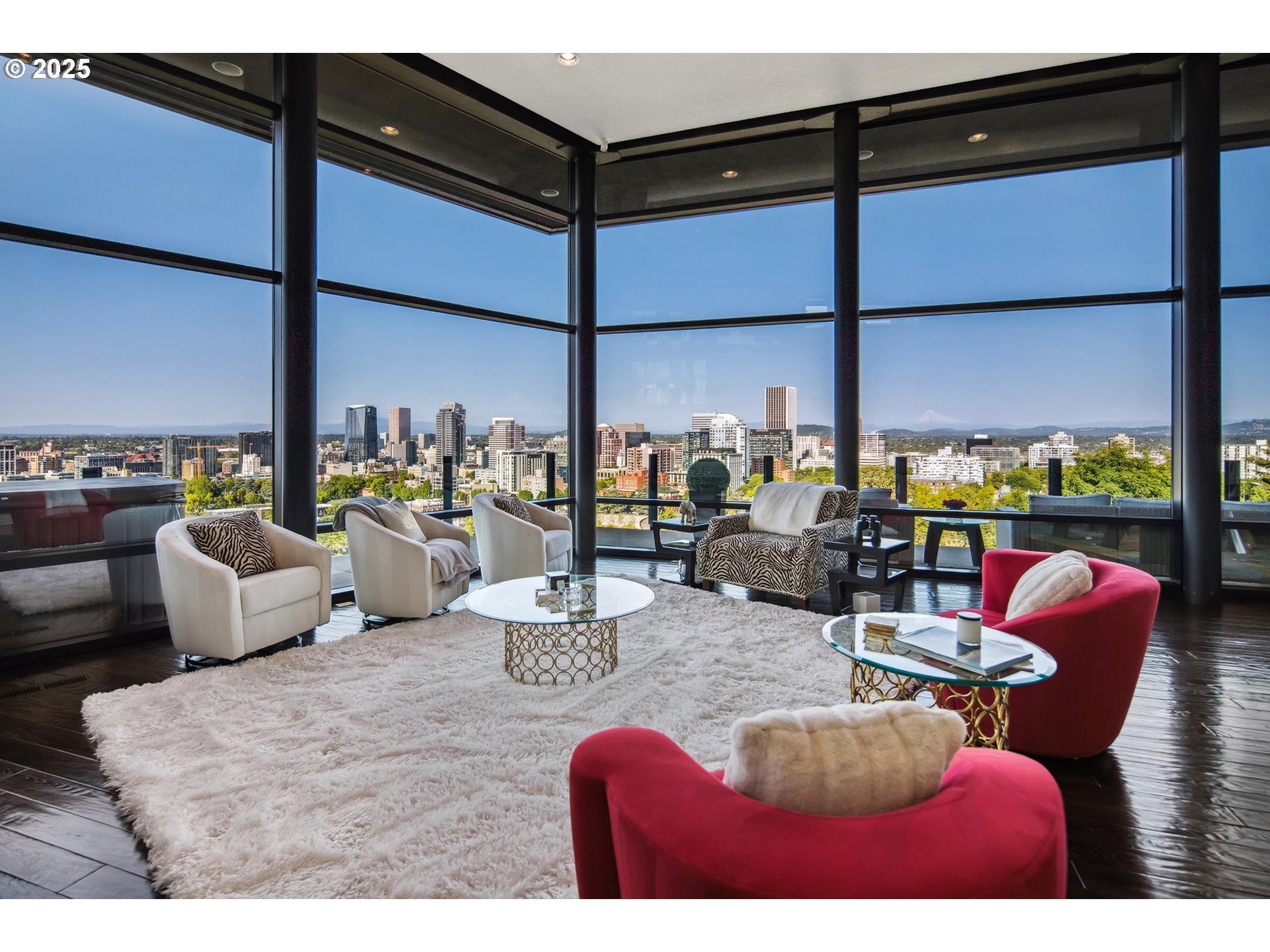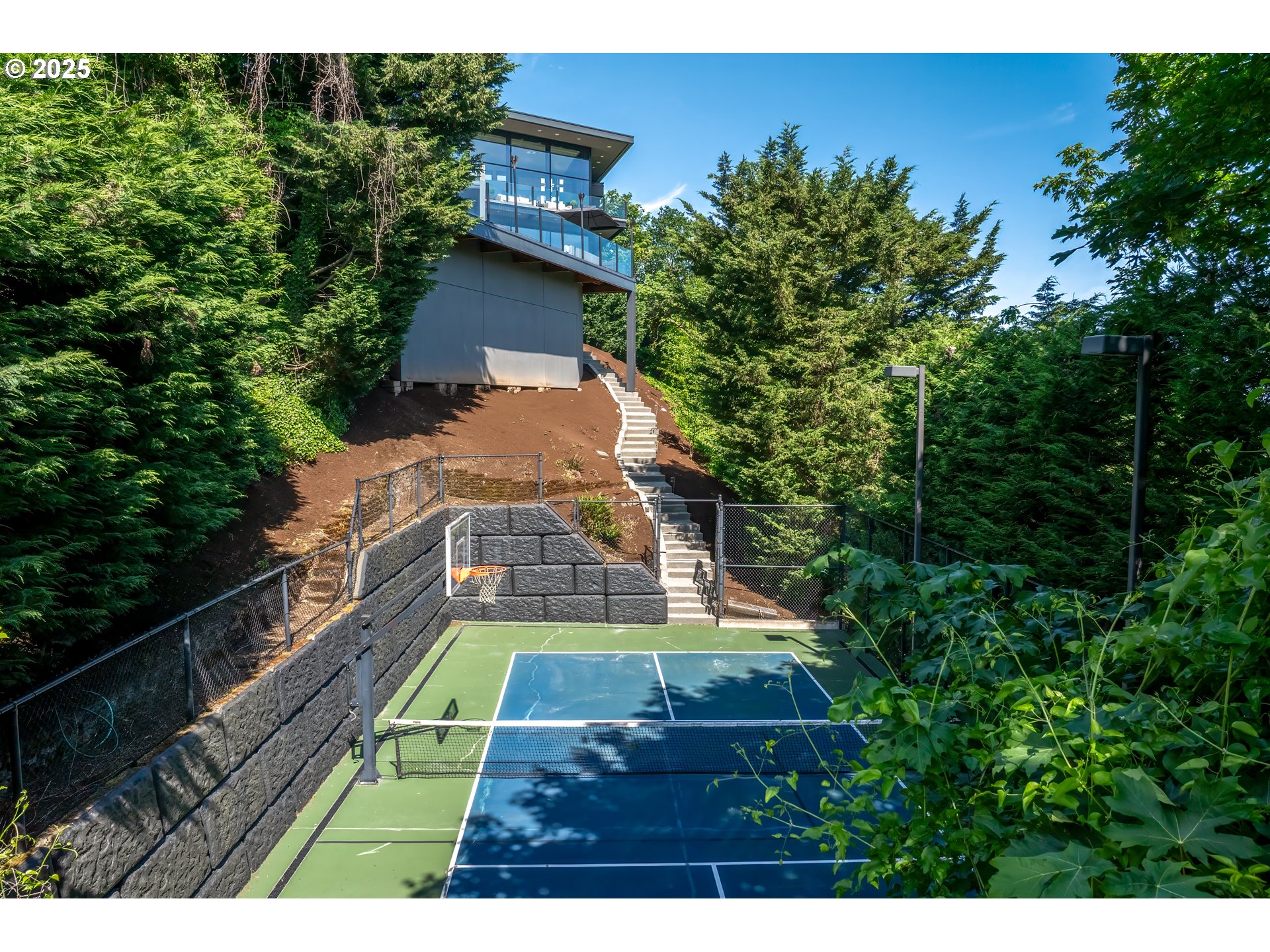 (503) 893-8874Perched high above the city in Portland’s prestigious West Hills, this striking modern masterpiece captures breathtaking 180-degree views that stretch from the snow-capped peak of Mt. Hood to the shimmering towers of downtown. A private gated drive leads to this architecturally bold glass-and-steel residence, where sleek lines and organic materials create an appealing blend of drama and warmth. Inside, soaring ceilings and walls of floor-to-ceiling windows flood the open-concept great room with natural light, framing the city and 4 mountain vistas like ever-changing artwork. Designed for both grand entertaining and quiet retreat, the home features multiple view-facing balconies, a resort-style pool with built-in spa, and an expansive lower level with full bar, glass-enclosed wine cellar, and stadium-style media room. The chef’s kitchen is a showpiece, outfitted with Viking and Sub-Zero appliances, a built-in coffee system, and double islands for effortless hosting. The main-level primary suite offers a luxurious escape with a private fireplace, soaking tub, and spa-like bath, all with unobstructed views. Additional highlights include a richly paneled home office, mirrored home gym, steam room, and a fully lit sport court tucked into the tree-lined grounds. Minutes from downtown and just steps to Portland’s iconic parks and gardens, this is a rare opportunity to own one of the city’s most spectacular view properties—an inspired retreat that elevates every moment.