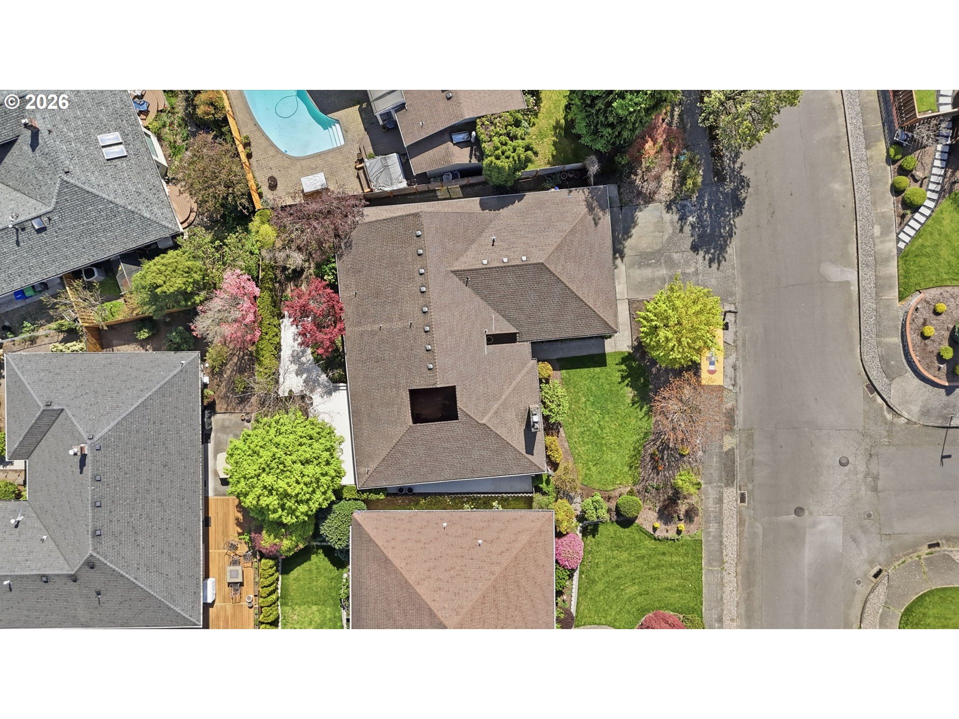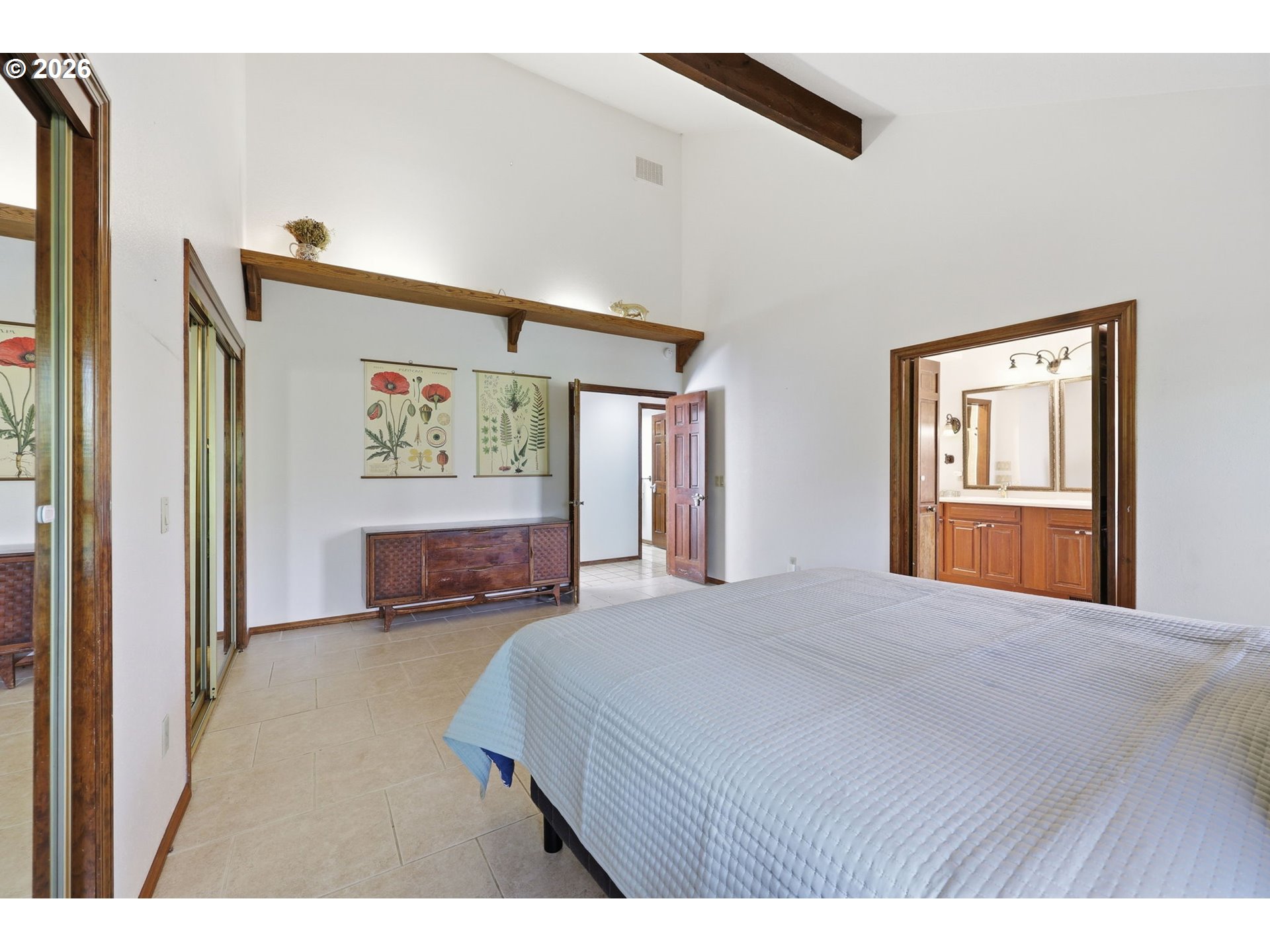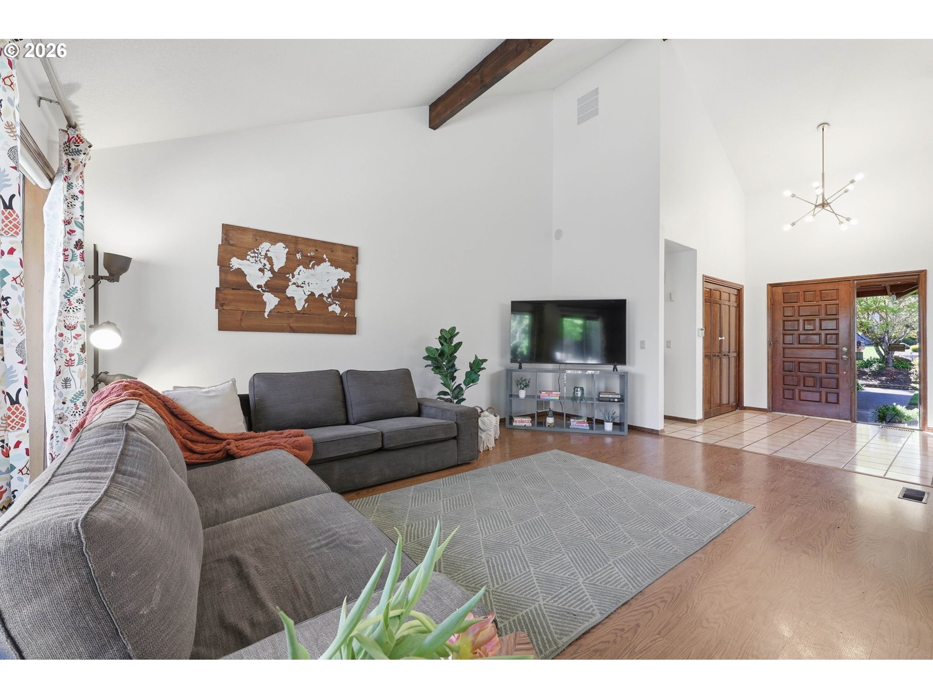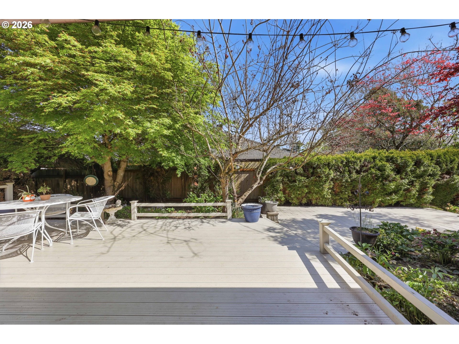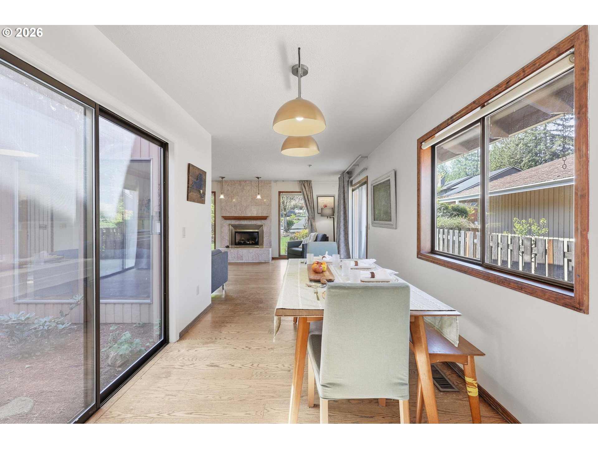 Situated in NE Portland, this beautifully designed one level home offers the perfect blend of comfort, character, and serene indoor/outdoor living. Spanning 1,922 square feet, this thoughtfully laid out residence features 2 bedrooms and 2 full bathrooms, including a spacious primary suite with a private ensuite bath. Step inside to be greeted by soaring ceilings that create an open, airy feel throughout. The home offers both a welcoming living room and a separate family room, providing flexible spaces for relaxing or entertaining. A cozy gas fireplace with custom tile adds warmth and a stylish focal point. At the center of the home, you’ll find a truly special feature, an atrium style courtyard that brings nature indoors. Complete with a stunning Japanese maple and lush plantings, this peaceful space offers a unique retreat visible from multiple rooms. Enjoy two sliding doors that open to a large backyard deck, perfect for unwinding among the mature trees and landscaping. Both the front and back yards are filled with established greenery, creating a private, tranquil setting. Come visit us this weekend for two separate Open Houses on Saturday April 11th and Sunday April 12th from 12pm-2pm! [Home Energy Score = 3. HES Report at https://rpt.greenbuildingregistry.com/hes/OR10246606]