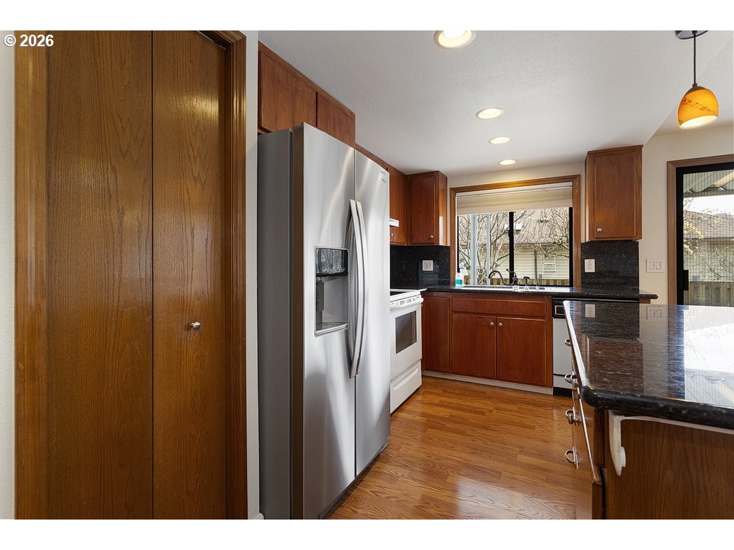 Welcome to Summerplace, Portland’s premier 55+ community! Located on a quiet cul-de-sac, this well-maintained single-level home offers 2 bedrooms, 2 bathrooms, and 1,513 SF of comfortable, flexible living space.The spacious great room features vaulted ceilings, new carpet, and a beautiful stained glass transom window, creating an open, light-filled setting with character. A classic brick fireplace adds warmth and a natural focal point.The kitchen includes a functional island, rich wood cabinetry, dark stone countertops, and abundant built-in storage, and flows seamlessly into the main living areas. A separate family room off the kitchen provides a second living space with direct access to the backyard, offering flexibility for a TV room, den, or hobby space.The primary suite includes an ensuite bathroom, while a second bedroom and full bath complete the layout.Additional features include hardwood flooring in main areas, a dedicated laundry room with storage cabinetry, and multiple hallway closets.Recent updates include fresh interior paint, new carpet, and refreshed landscaping, giving the home a clean, move-in-ready feel. Enjoy a nicely landscaped backyard with mature trees and a covered patio, along with the added privacy of a cul-de-sac location.A fantastic opportunity to own a move-in-ready home with two living area in one of Portland’s most desirable 55+ communities! [Home Energy Score = 4. HES Report at https://rpt.greenbuildingregistry.com/hes/OR10245677]