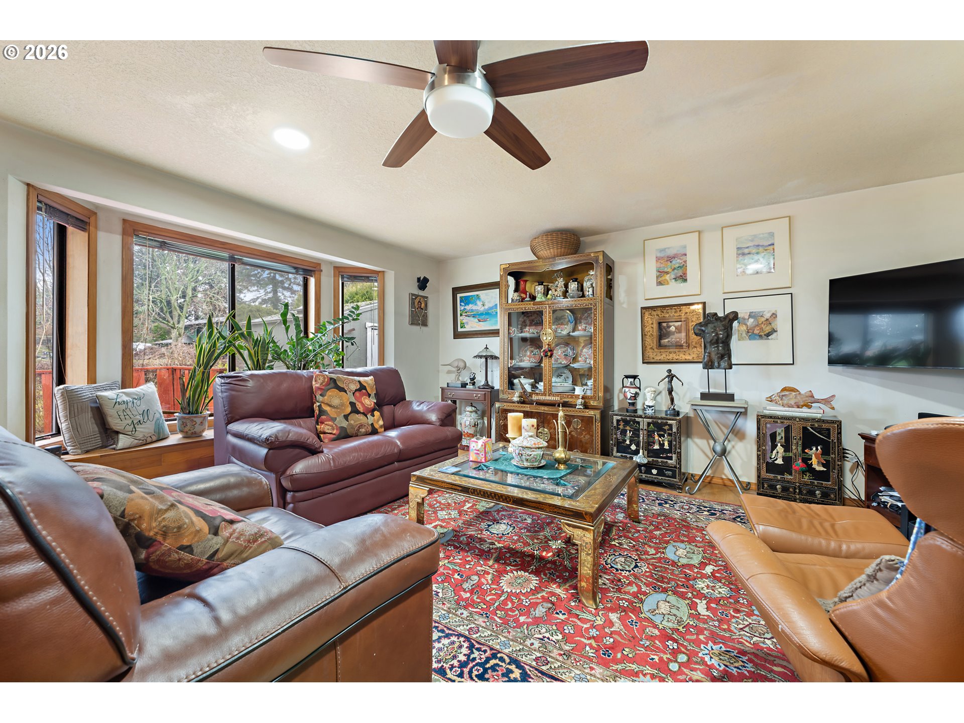 The convenience of one level living in the sought after Glendoveer/Wilkes neighborhood. The 1,630 square foot floor plan offers three bedrooms & two full baths, including a generous master suite with walk-in shower and sliding glass doors that open to a private covered patio. A beautiful period fireplace is the centerpieces for the formal living room. The kitchen offers marble countertops and large eating area. French doors open to the formal dining room with a large bay window and hardwood floors. The spacious family room, with hardwood floors, a cozy wood stove and second bay window provides access to the expansive fenced yard and deck, perfect for outdoor entertaining. Newer roof & gutters and upgraded HVAC system. Conveniently located, just a short walk to the Glendoveer Golf Course.