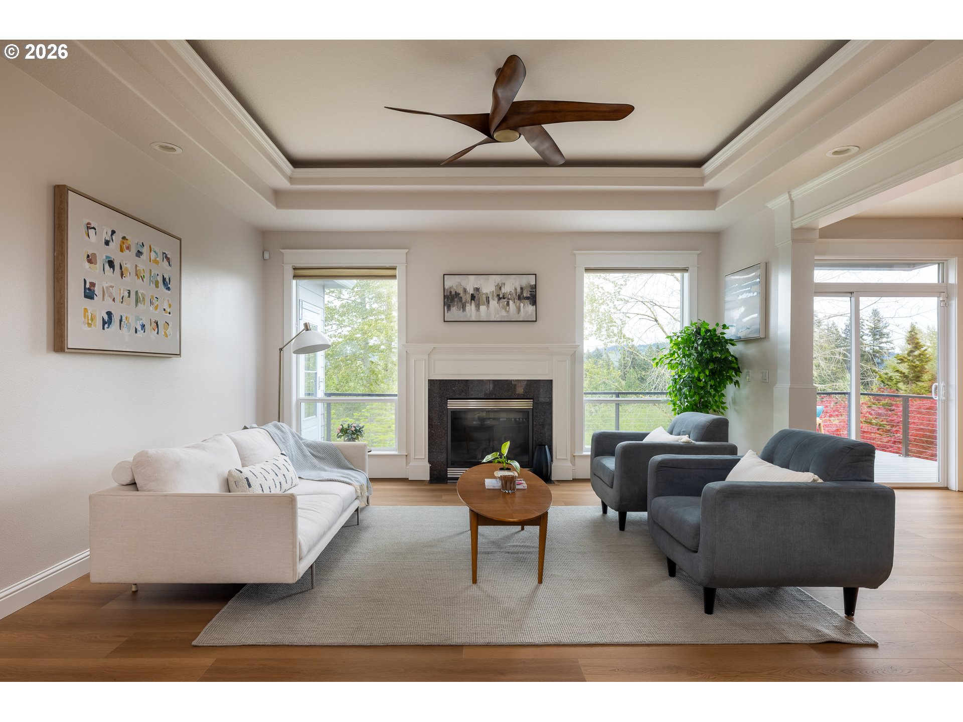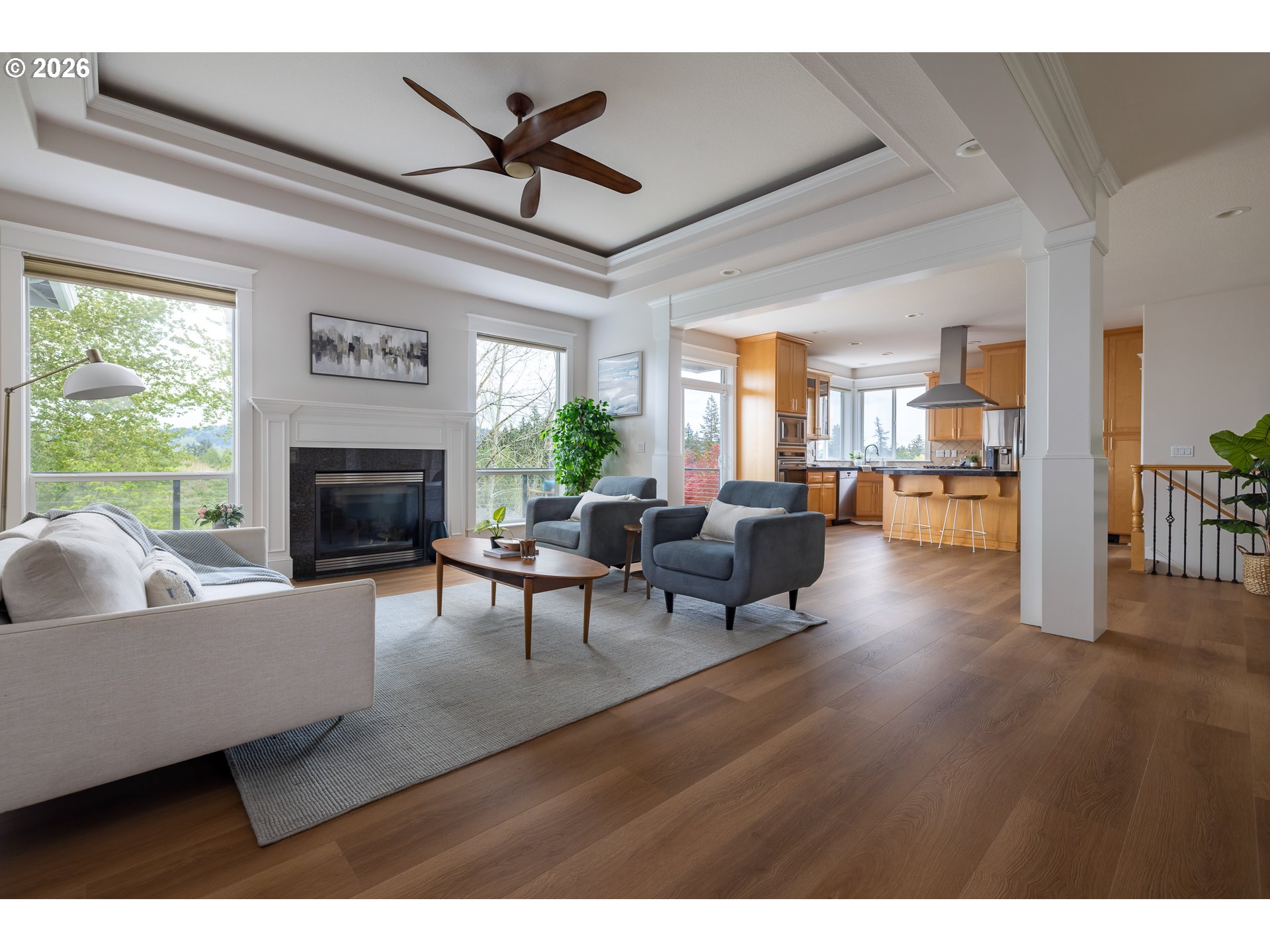 Tucked into a quiet part of Pleasant Valley that backs up to greenspace, this beautiful home offers privacy, natural views, and a functional, well-balanced layout.The main level features wide plank floors, tall ceilings, and large windows that bring in consistent natural light. The kitchen has granite tile counters, stainless steel appliances, a large pantry, and cooktop island that opens to the living/dining areas for easy flow. Enjoy convenient single-level living with the primary suite and front office also on the main level.Continue downstairs and imagine the potential for multi-generational living. Two additional bedrooms, a full bathroom, a second living space, and bonus room that would make for a nice workshop or hobby room. Both levels have large decks, where you can relax or entertain while taking in the surrounding greenery and valley views.A full staircase on the main level has been added to give comfortable access to the expansive, full-height attic for extra storage or potential build space later. Three-car garage adds even more flexibility for parking, storage, or projects.A well-designed home with an open, practical floorplan, generous storage capacity, and a peaceful, private setting. Just blocks from Powell Butte Nature Park.
