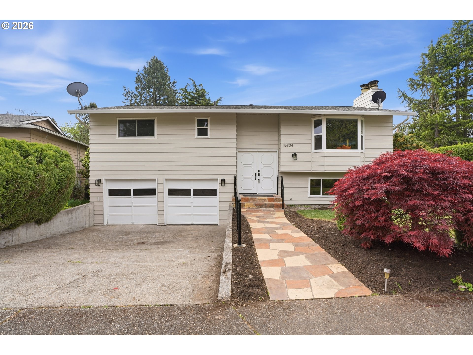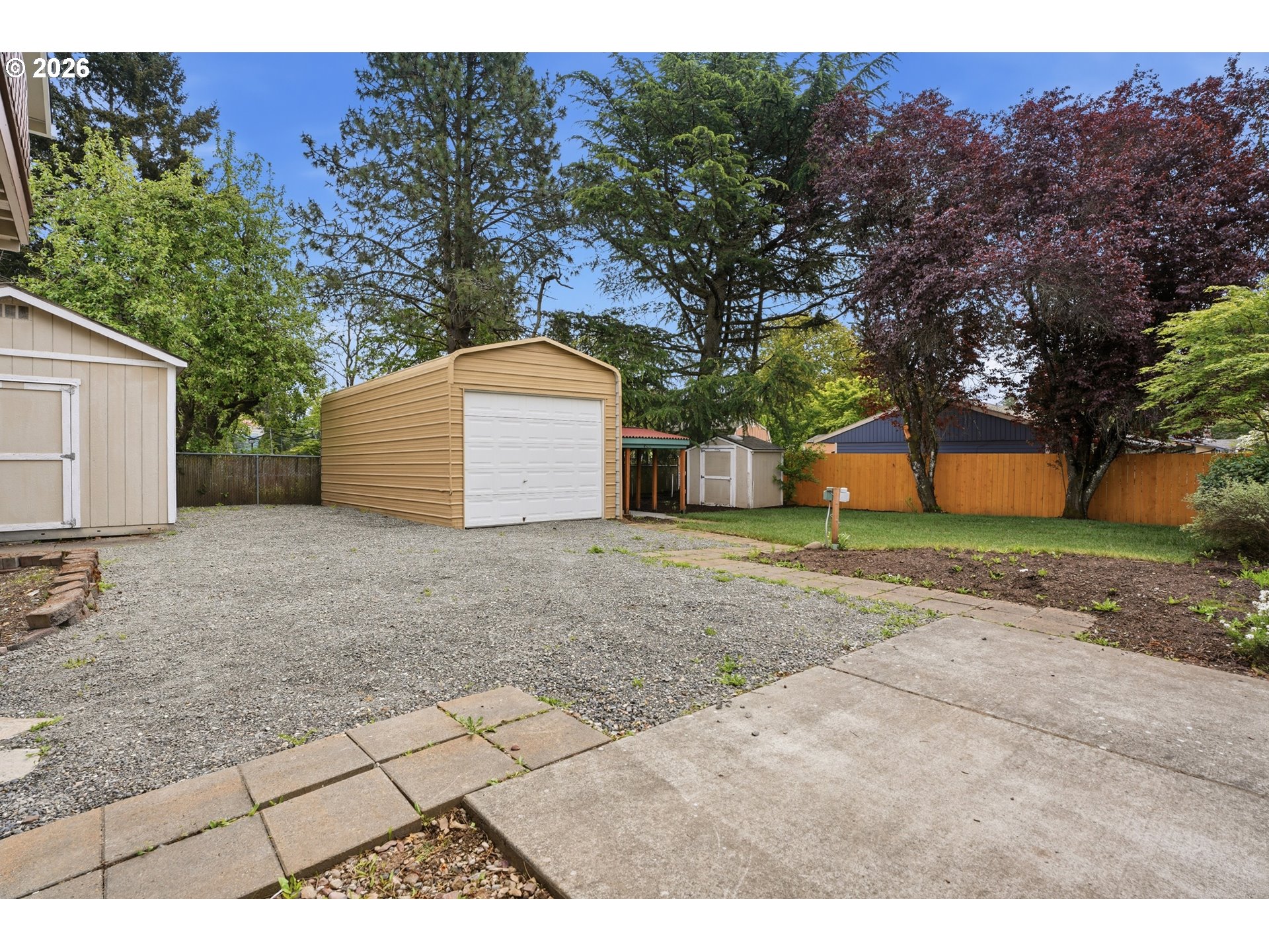 Fully reimagined corner-lot property with true separate living quarters and exceptional flexibility—ideal for multigenerational living, guest space, or potential income use. Updated throughout, this 4-bedroom, 3-bath home features new flooring, updated kitchens and bathrooms, and fresh interior and exterior paint. The main level offers formal living and dining along with a fireplace with raised stone hearth, creating a comfortable and functional everyday layout. The daylight lower level provides a fully independent living space with private entrance, living area with fireplace, upgraded kitchen with gas range, hood, and refrigerator, full bath, and bedroom—plus direct access to a private concrete patio beneath the upper deck & dedicated gated parking. Set on a spacious, fenced and landscaped corner lot, the property is designed for usability and flexibility. Outdoor features include a deck, covered lounge/fire pit area, and defined spaces for relaxing, gardening, or entertaining. The property is exceptionally well-equipped with RV parking including power and clean-out, a 2-car garage, and multiple outbuildings—featuring a large metal shop building, detached flex shed ideal for office or workspace, and additional storage shed. The corner lot configuration allows for improved access, privacy, and expanded use options. With its multi-level living design, separate entrances, and ADU potential (buyer to verify), this property offers a rare combination of functionality and versatility not typically found in the area. [Home Energy Score = 4. HES Report at https://rpt.greenbuildingregistry.com/hes/OR10247767]