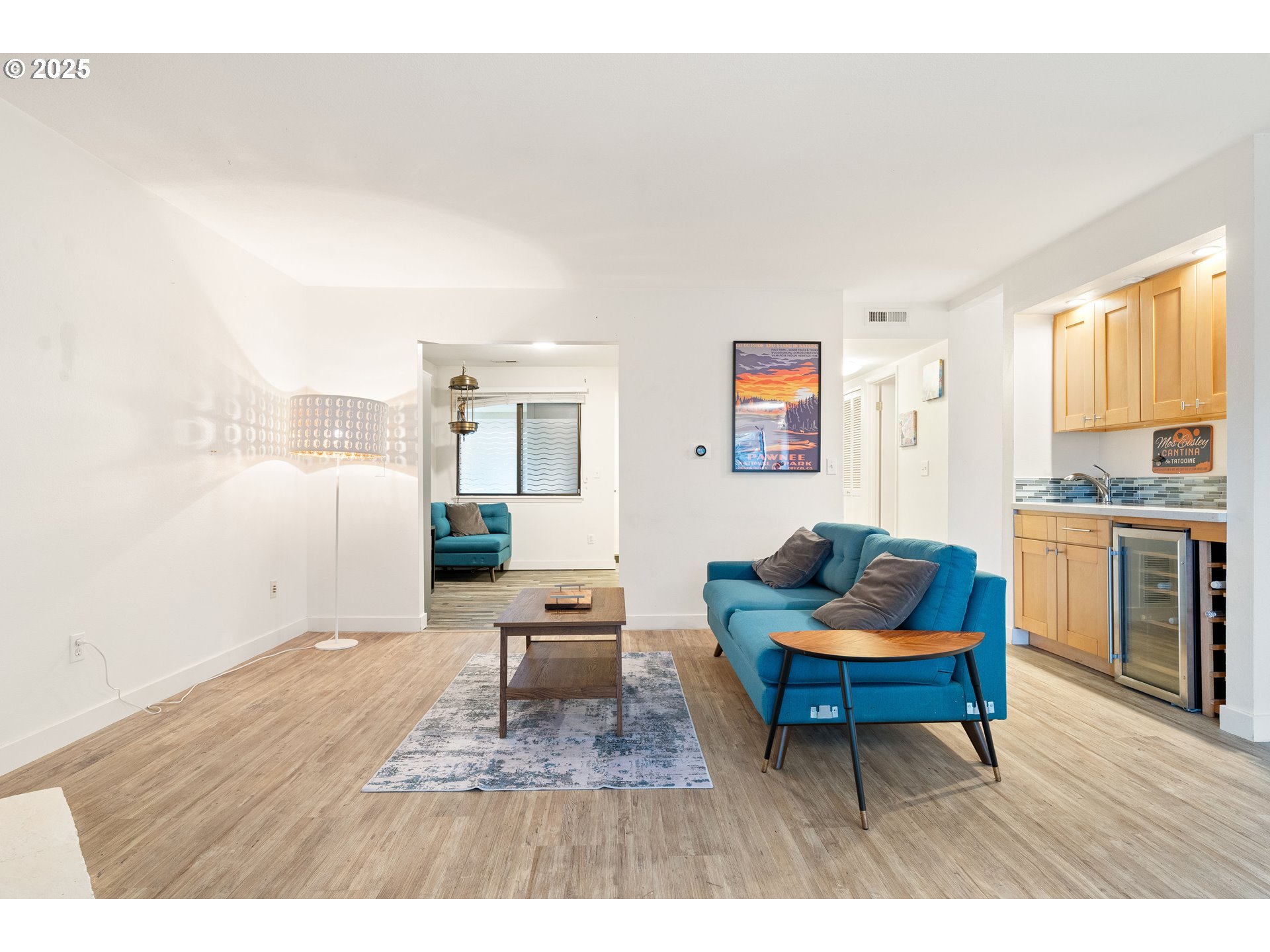 Welcome home to bright, open living, where sunlit rooms and thoughtful updates create a sense of place that simply works! Picture mornings in your kitchen with the updated stainless appliances and quartz counters, the kind of space that makes coffee and conversation feel effortless, then move seamlessly into the living room where high ceilings amplify the light and views of grassy grounds and trees offer a private touch of nature right outside your windows. The fireplace sets the mood with a single switch, while the entertainer's wet bar with wine fridge stands ready for impromptu gatherings or quiet evenings with a perfectly chilled glass. Your primary suite offers a true getaway with double closets and an ensuite bath that lets you start your day in your own private sanctuary. The flexible bonus room becomes whatever you need: currently a music and reading room, it can easily be an additional home office, creative studio, or add two small walls for an instant third bedroom. With a dedicated office nook (perfect plant and cat perch!), second bedroom, detached garage, and plenty of privacy, you'll find yourself right at home. Beyond your door, the Wilkes neighborhood delivers conveniences galore: Costco runs take five minutes, PDX is a quick fifteen, and Glendoveer's scenic walking trails and Wilkes Park are practically at your doorstep, with local favorites like Honey Jar Cafe and Giusto Farms rounding out your new everyday favorites. This is living made easy, comfortable, and utterly your own.
