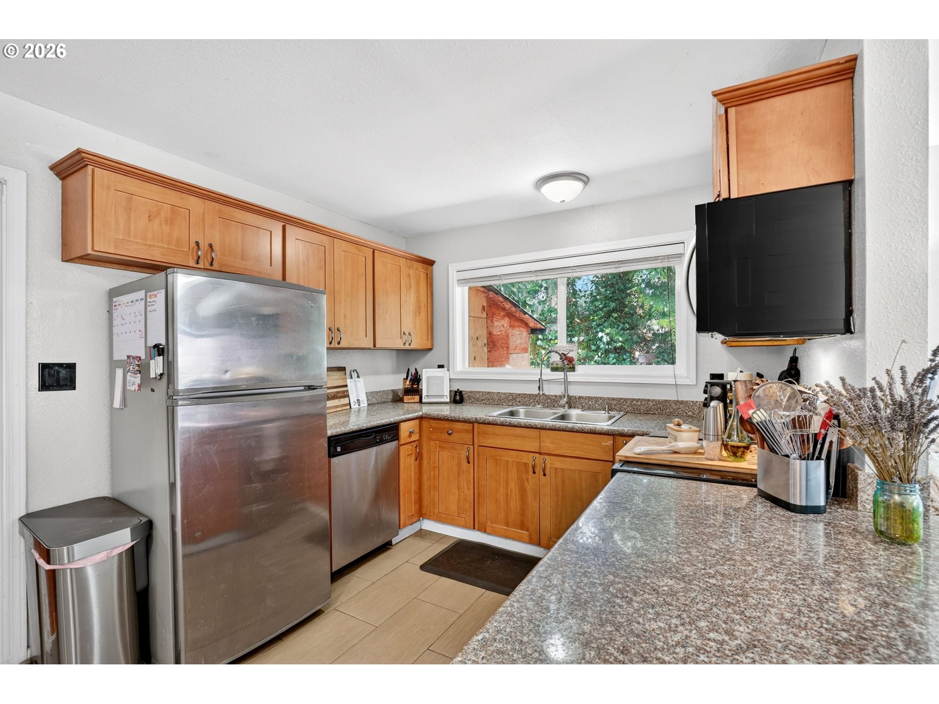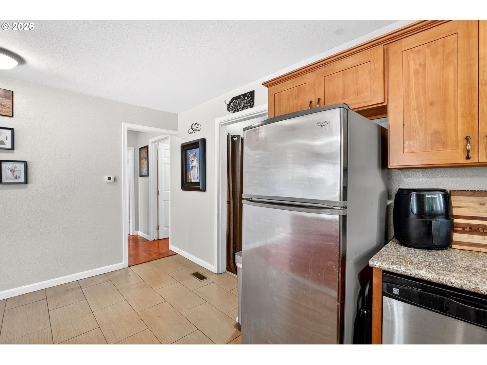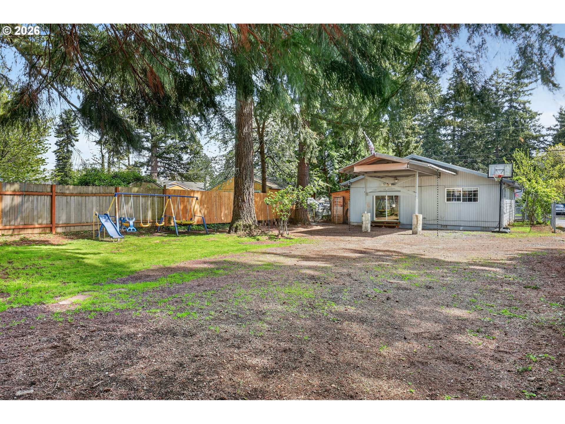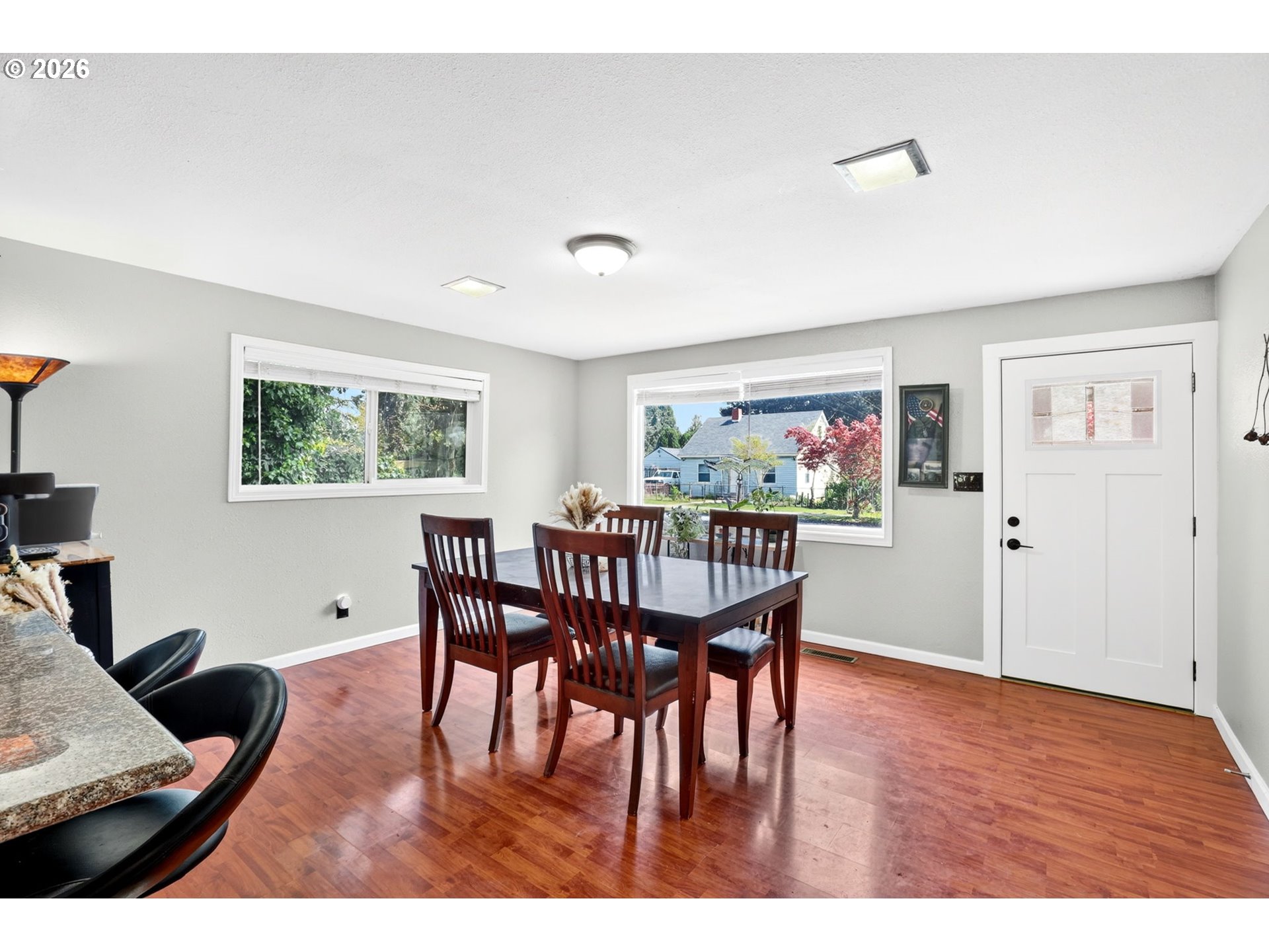 Welcome to this nicely updated 1,380 sq ft home offering comfort, functionality, and space to enjoy both inside and out! Featuring all new laminate flooring throughout, this home is move-in ready with a fresh, modern homey feel, close to shopping and restaurants. The oversized primary suite includes its own private ensuite and a walk-in closet, creating a wonderful feel and retreat to relax into. Home has laminate flooring, and all new vinyl windows. Two additional bedrooms are well-sized and share a conveniently located hall bath updated with new tile floor and vanity. The kitchen is the center of the home opening to both the family room and dining area—ideal for everyday living and entertaining. A separate, oversized living room with vaulted ceilings provides a large space for gatherings, filled with natural light and an open, airy feel. You’ll also appreciate the added pantry, extra storage, and a dedicated utility room for ease of living. Step outside to a large backyard with plenty of room for all your needs—including space for boat or RV parking. The covered back deck is perfect for year-round BBQs, entertaining, or simply relaxing. [Home Energy Score = 2. HES Report at https://rpt.greenbuildingregistry.com/hes/OR10226518]