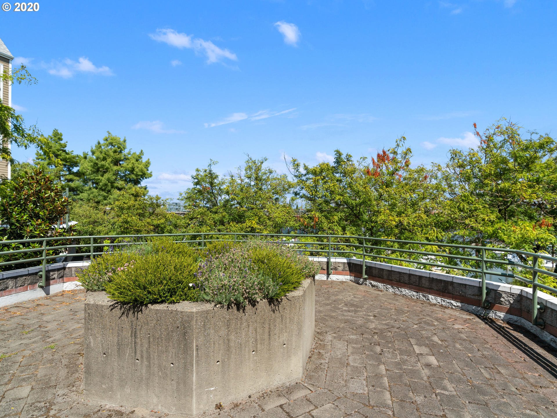 Conveniently located stately and tasteful pied-a-terre in the heart of south waterfront. Charming built-in book shelves surround the wood burning fireplace in the spacious and light filled living room. Primary bedroom and the living room open to the covered deck with sliding doors from the bedroom. The gated courtyard has easy access to waterfront cafes, walking paths and boat docks. New windows, siding and interior hallway upgrades. 1 secured parking and storage space. Great access to excellent public schools (Ainsworth, West Sylvan, Lincoln) and private schools (International School, NW Academy, St. Mary's), not far from downtown and the street car, south waterfront OHSU tram, Farmers market and so much more. A wonderful spot for grandparents to use for extended visits or as an in town second residence to appreciate the city.