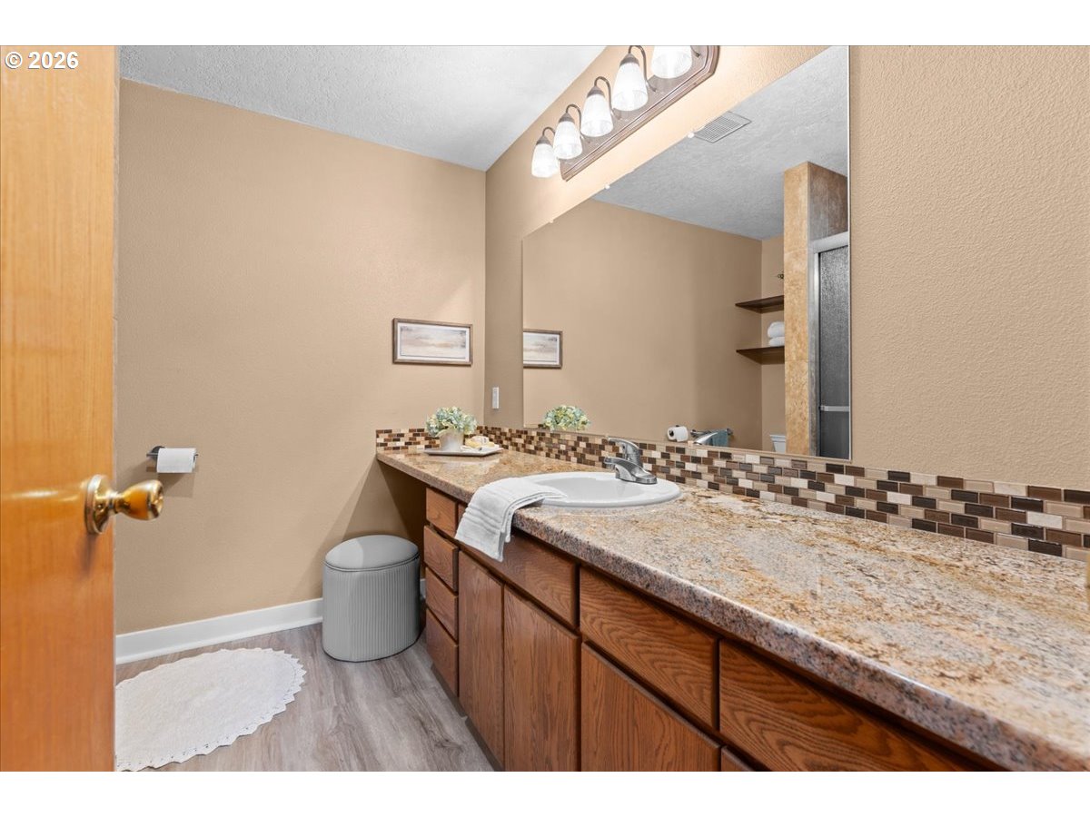 (503) 893-8874This extraordinary home features beautiful laminate flooring throughout. Spacious one level floorplan. Huge Primary suite with large walk-in closet & bathroom w/shower. Family room with cozy corner fireplace. Kitchen with gas appliances. Fully fenced yard w/mature arborvitae offering added privacy. Detached garage w/extra drive-thru bay leading to a 21x21 shop/garage & 16x12 tool shed. There is a gazebo for covered seating area and a covered area w/another 7x15 tool shed/covered storage area. RV parking as well, so much space! This home is impeccably maintained and move in ready.