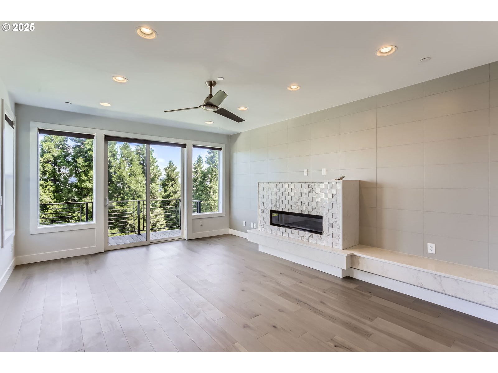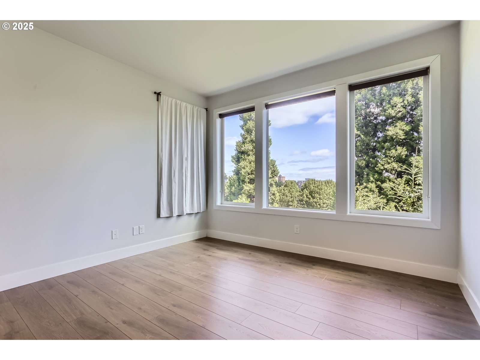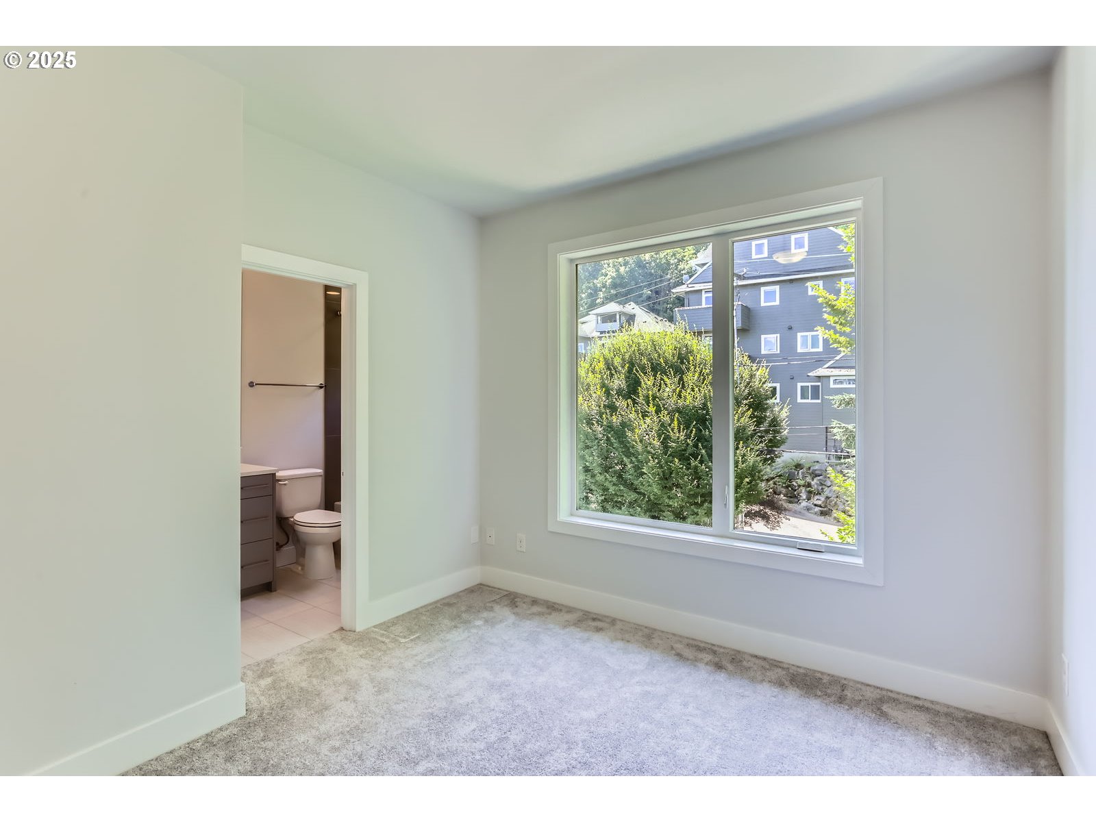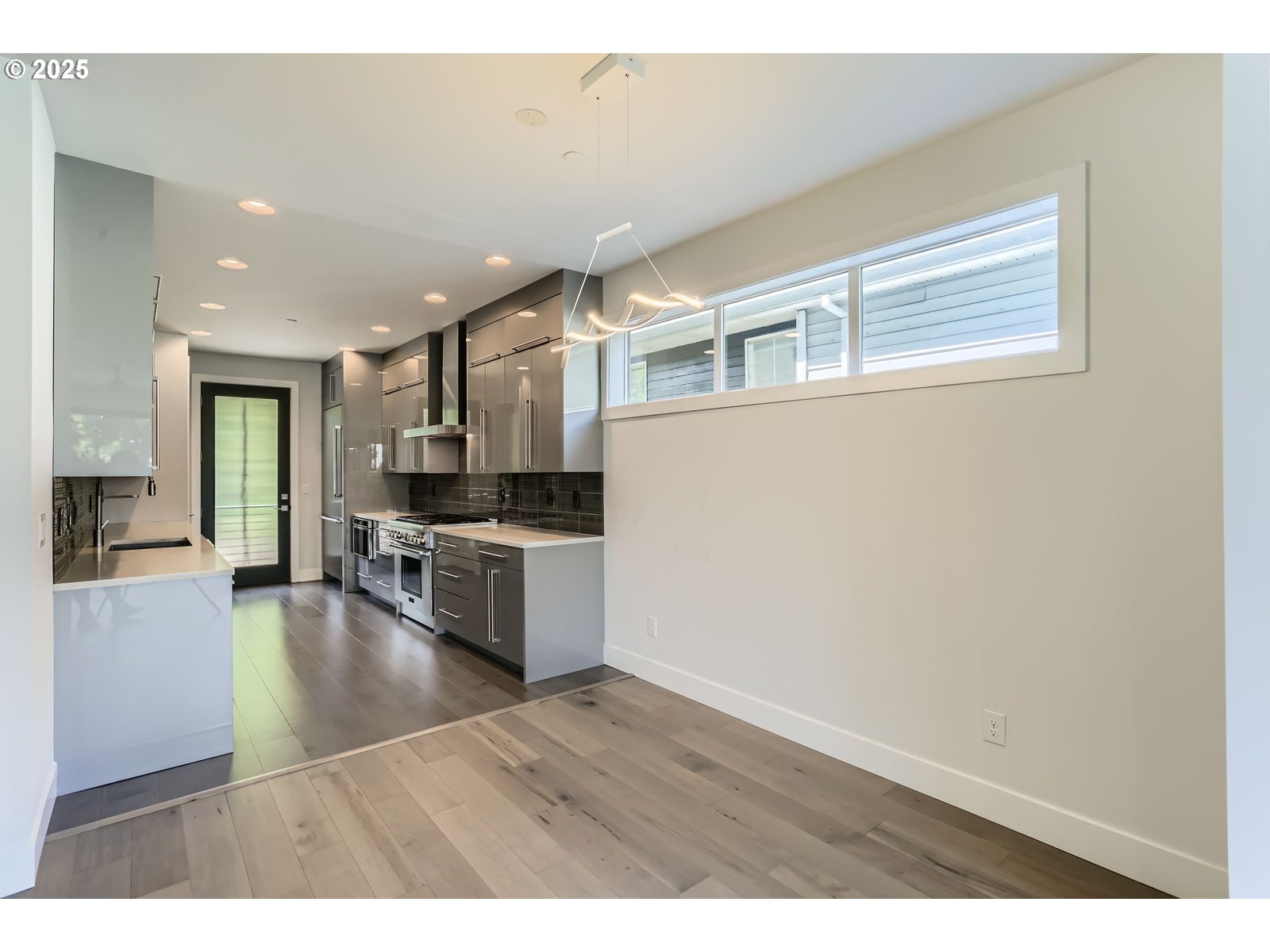 Modern design meets elevated city living in this architecturally distinct end-unit townhome, thoughtfully crafted to take full advantage of panoramic views of the Portland skyline and nearby mountains. Abundant natural light pours through oversized windows, highlighting the home’s refined finishes and attention to detail.The open-concept main level features warm hardwood flooring and a designer kitchen outfitted with premium stainless steel appliances, custom cabinetry, and extensive built-in storage—perfect for both hosting and daily life. Statement staircases connect each level, leading to two generous primary suites upstairs, each complete with its own spa-like bathroom and curated, high-end finishes.Outdoor living spaces include a serene rear deck for quiet evenings and a front balcony ideal for enjoying sunrises or city lights. The lower level adds even more flexibility with a private guest suite offering a third bedroom, full bathroom, kitchenette, and its own entrance—making it ideal for multigenerational living, guests, or use as a potential ADU or short-term rental.Other highlights include an attached garage, and plentiful storage throughout. Located just minutes from downtown, OHSU, major freeways, and Portland’s vibrant cultural districts, this home places you in the heart of it all—where lifestyle, convenience, and design come together.